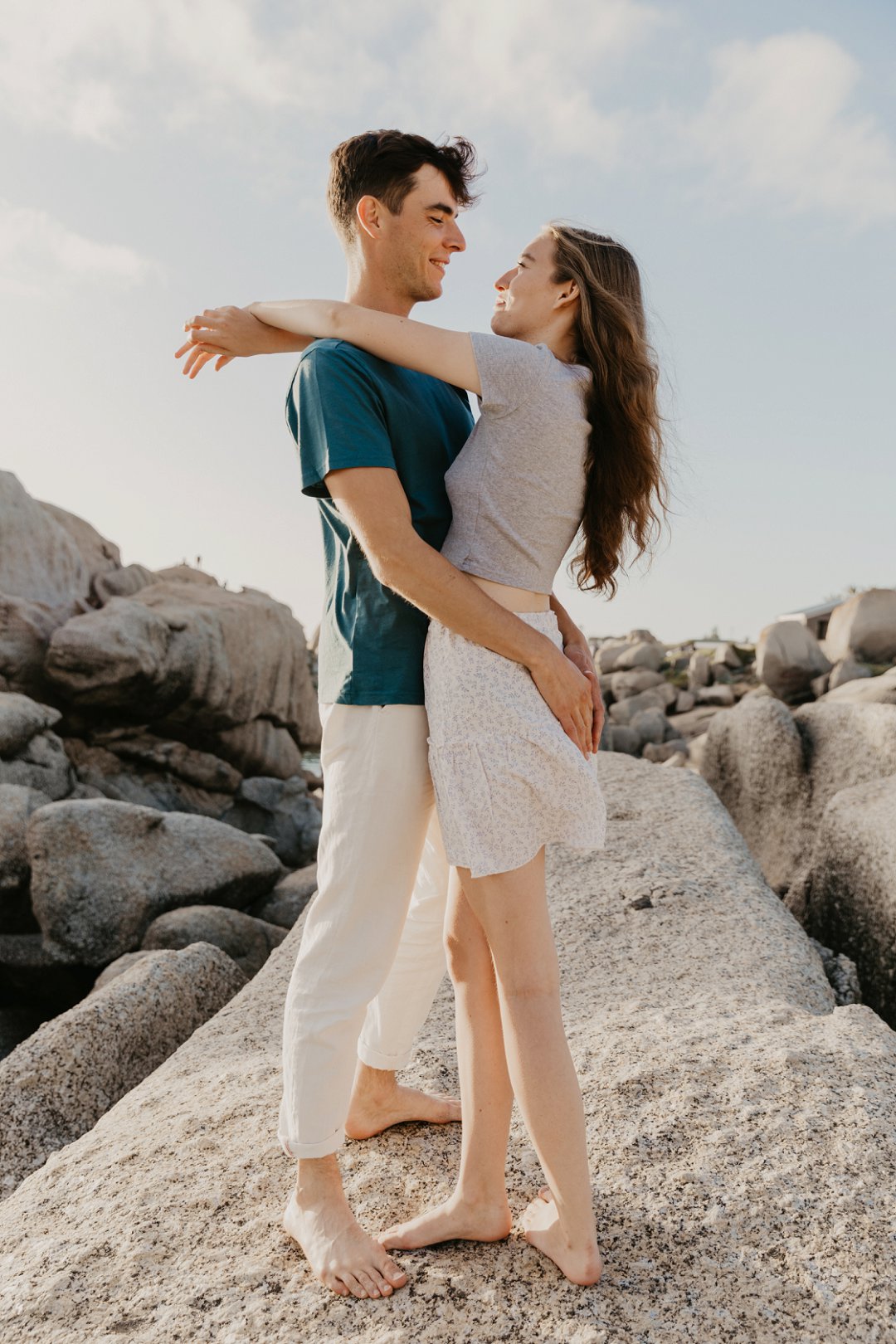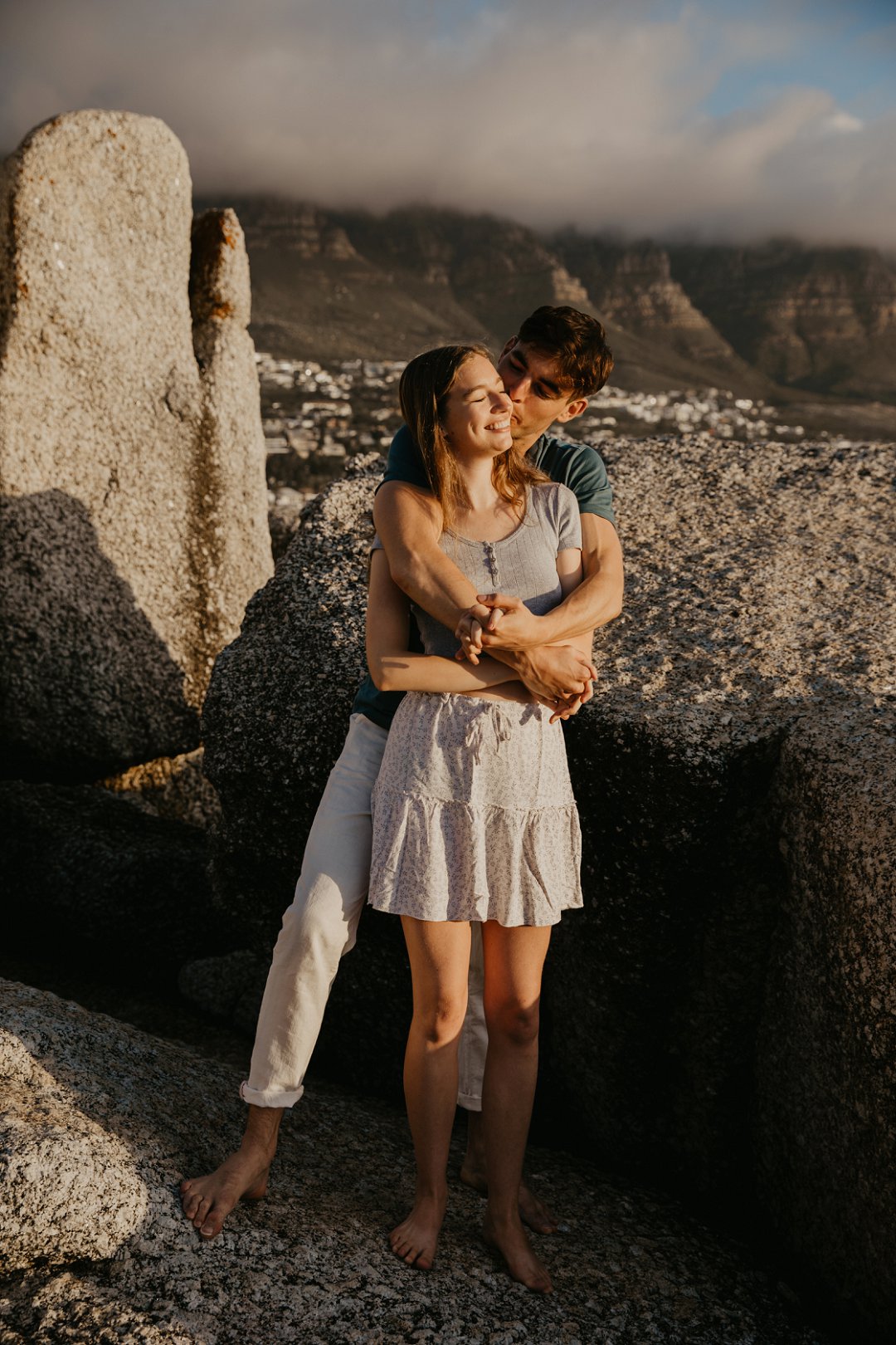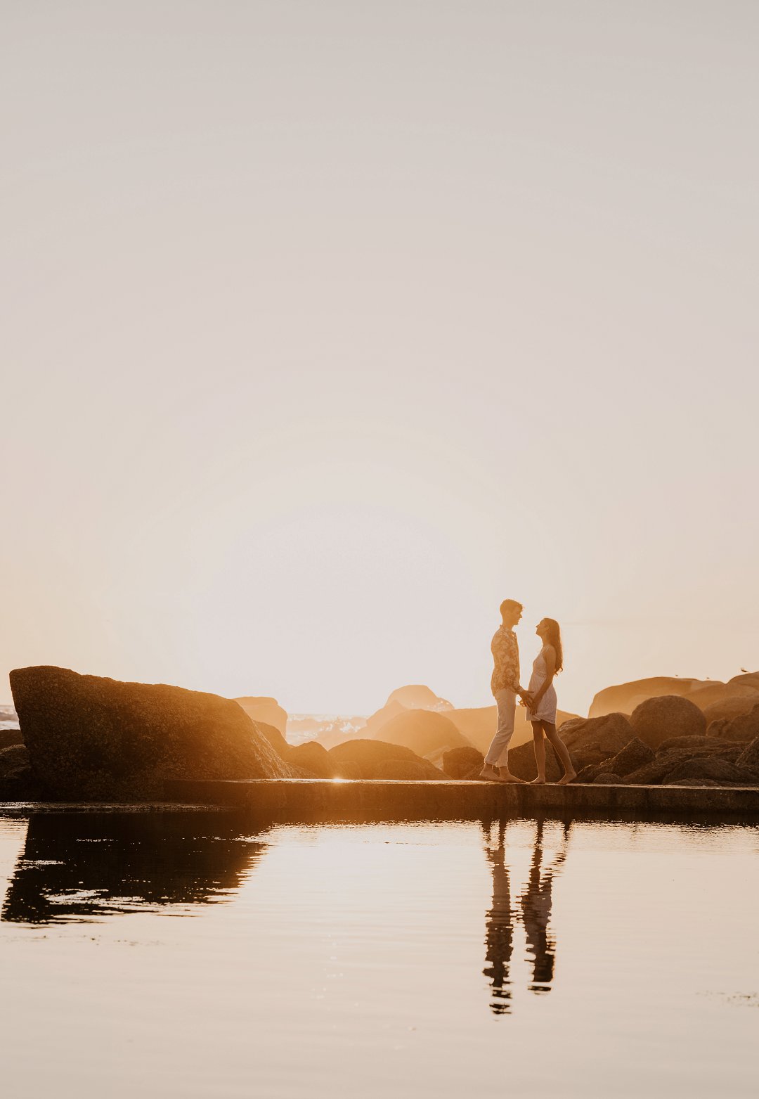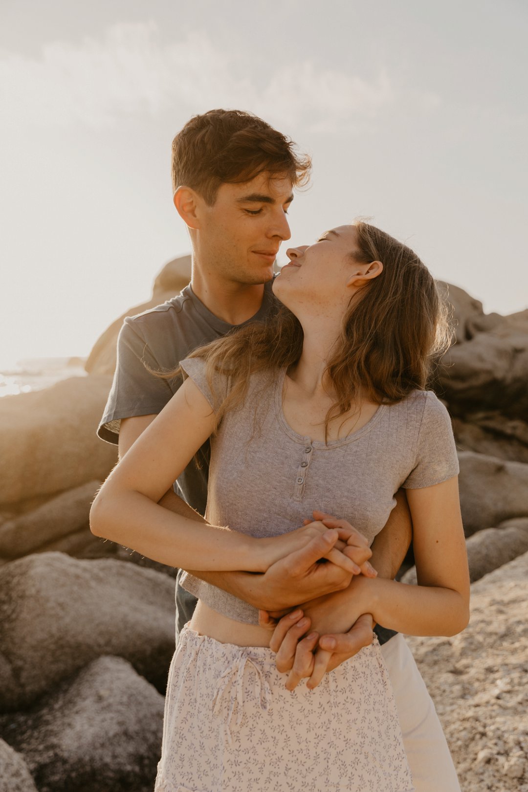 Ons wou ʼn fotosessie in een van die vele wonderlike liggings rondom Kaapstad doen. Ons het uiteindelik in Maiden’s Cove tydens die goue uur die fotosessie gedoen. Alles was in lyn om dit perfek te maak. Ons, die fotograaf, die ligging, die liefde …