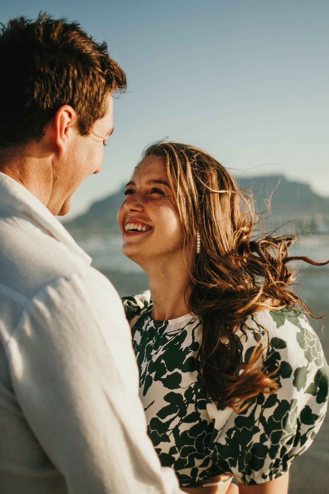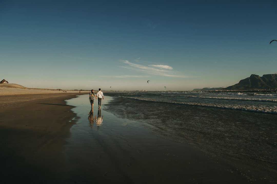 Rol af om meer te lees oor Pieter en Lize se Bloubergstrand verlowing fotosessie en hul liefdesreis as paartjie.