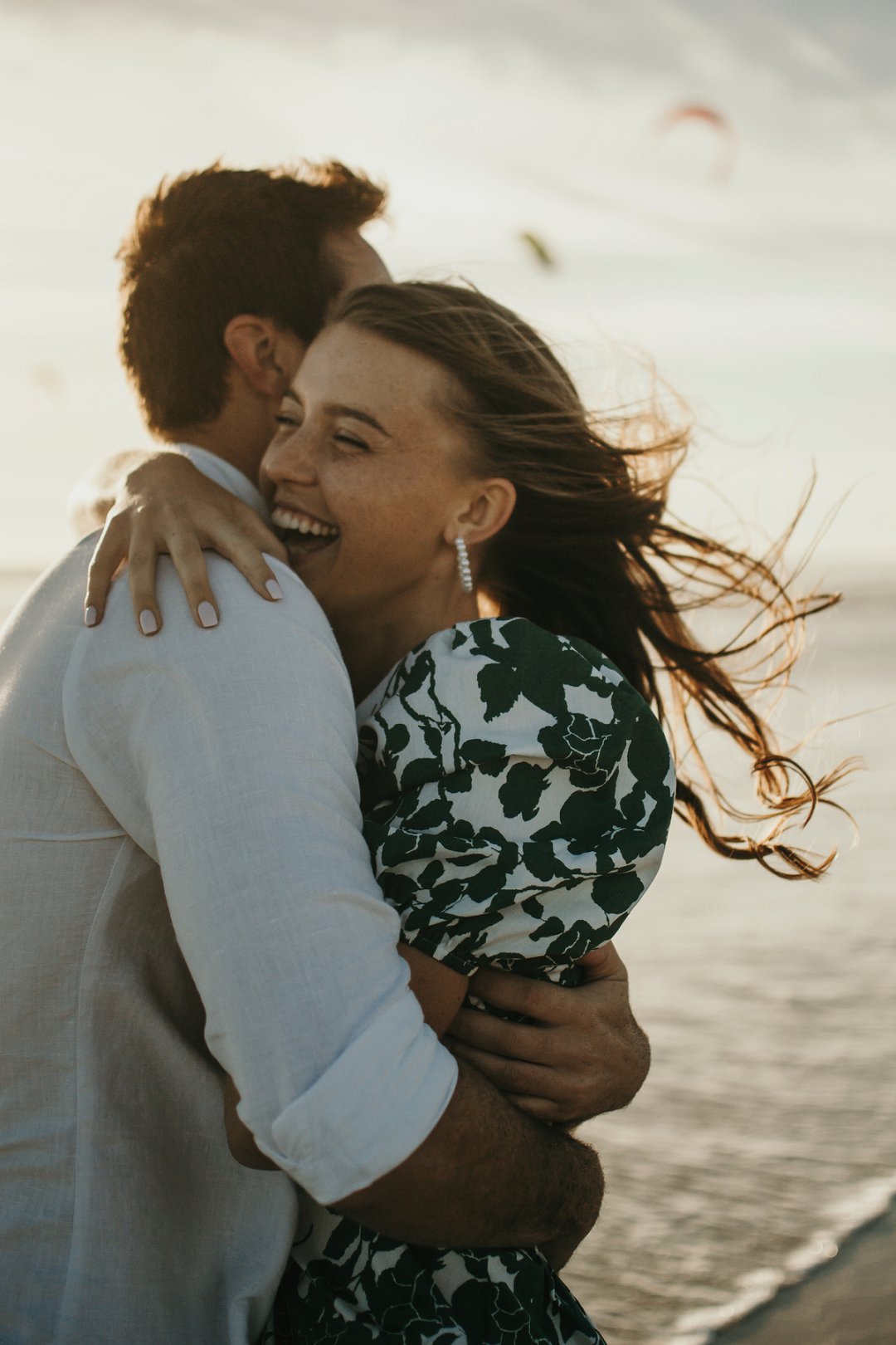 ŠPaartjie se verlowing tydperk vlieg só vinnig verby, dat mens soms vergeet om die spesiale oomblikke vas te vang. Pieter en Lize se Bloubergstrand verlowing fotosessie was soveel pret gewees met kleurvolle vlieërbranderryers in die agtergrond en die prentjie mooi uitsig van Tafelberg is die agtergrond perfek vir enige paartjie se verlowing fotosessie.  Hulle glimlagte is aansteeklik en ons kan sien hulle het die fotosessie sommer baie geniet.