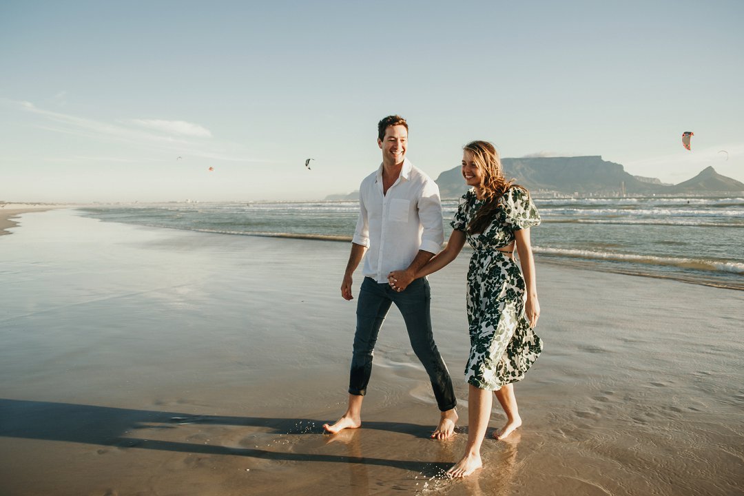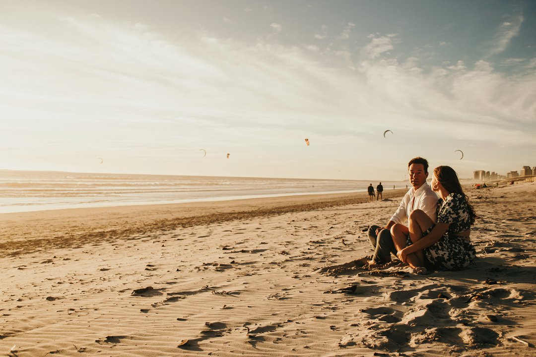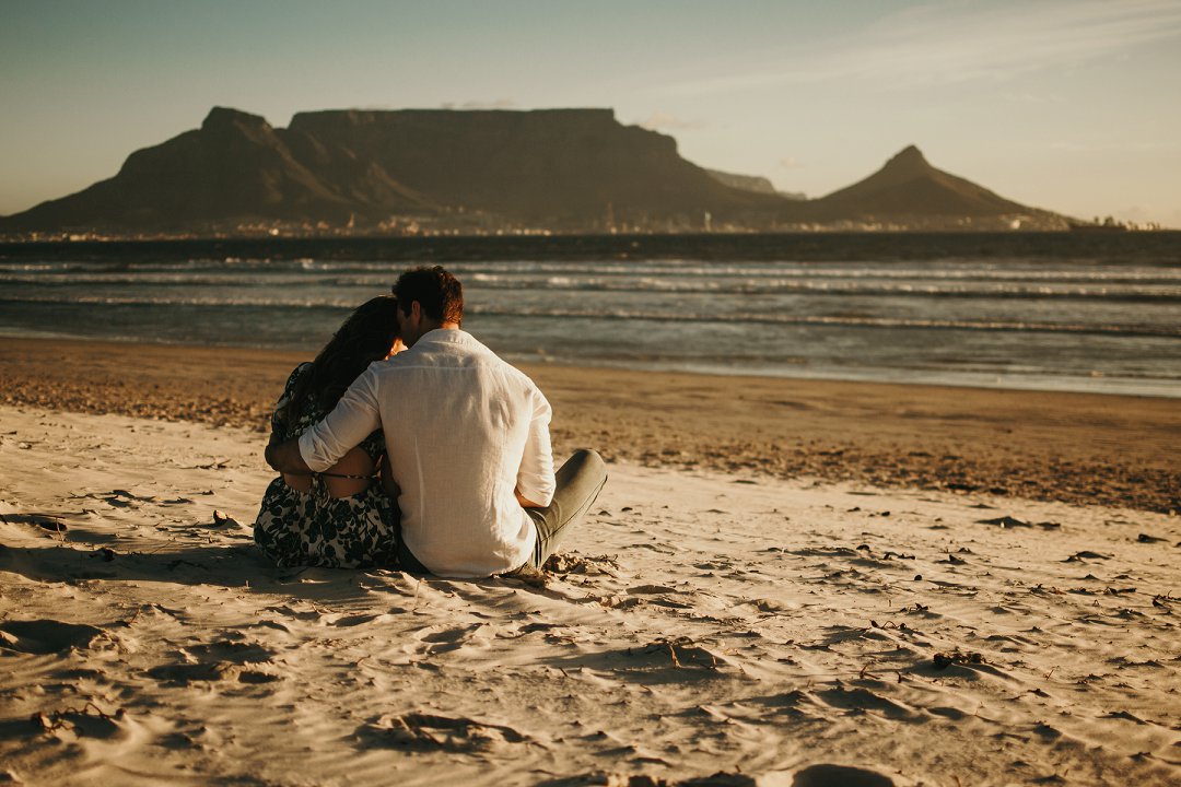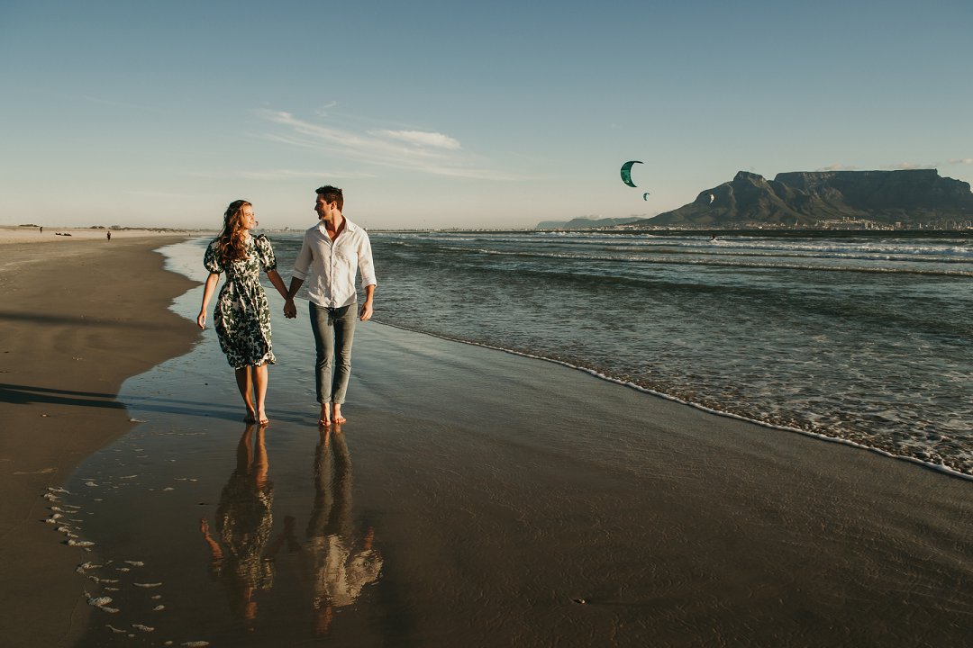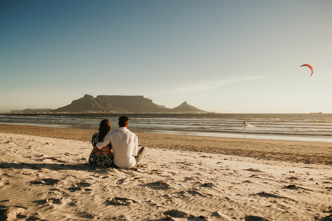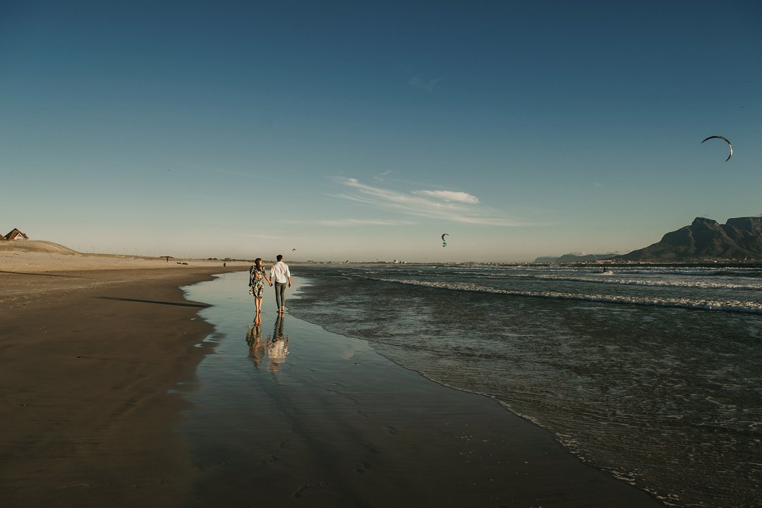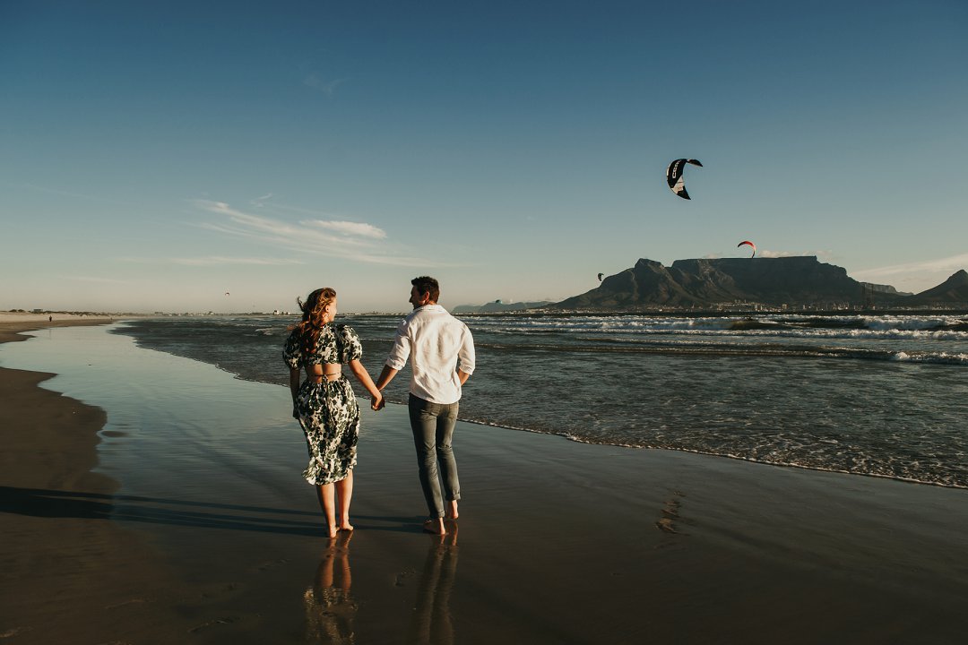 Rol af om meer te lees oor Pieter en Lize se Bloubergstrand verlowing fotosessie en hul liefdesreis as paartjie.