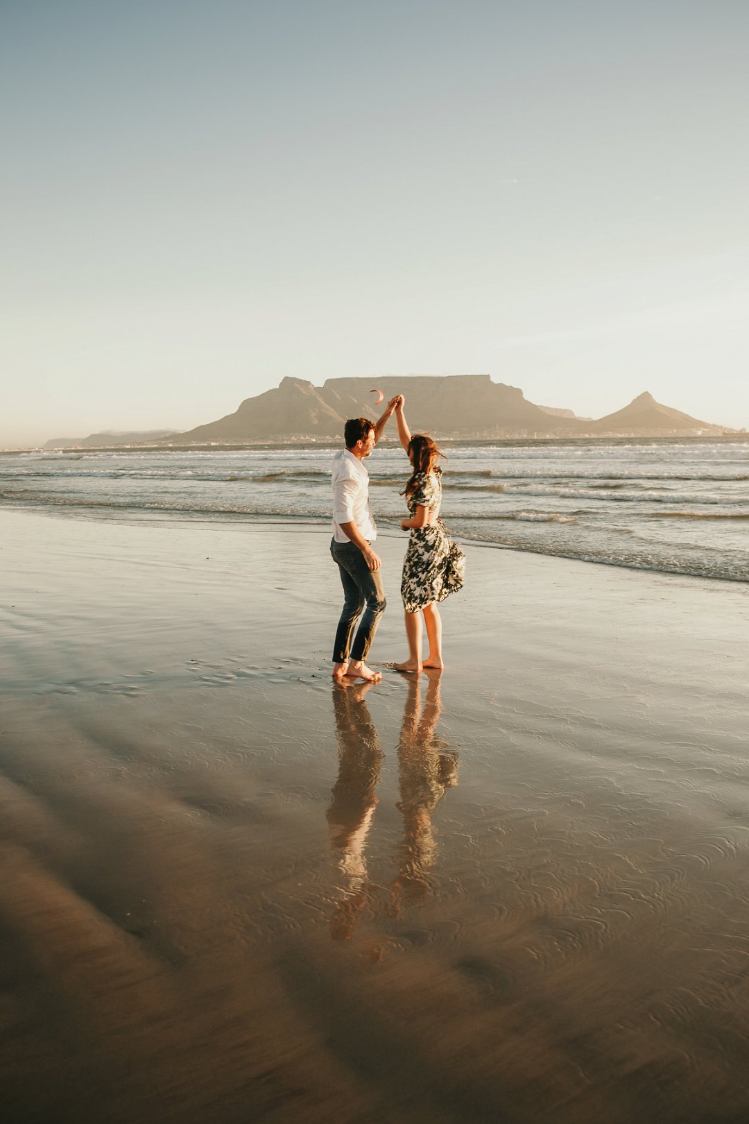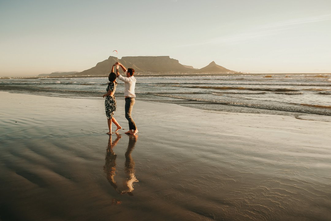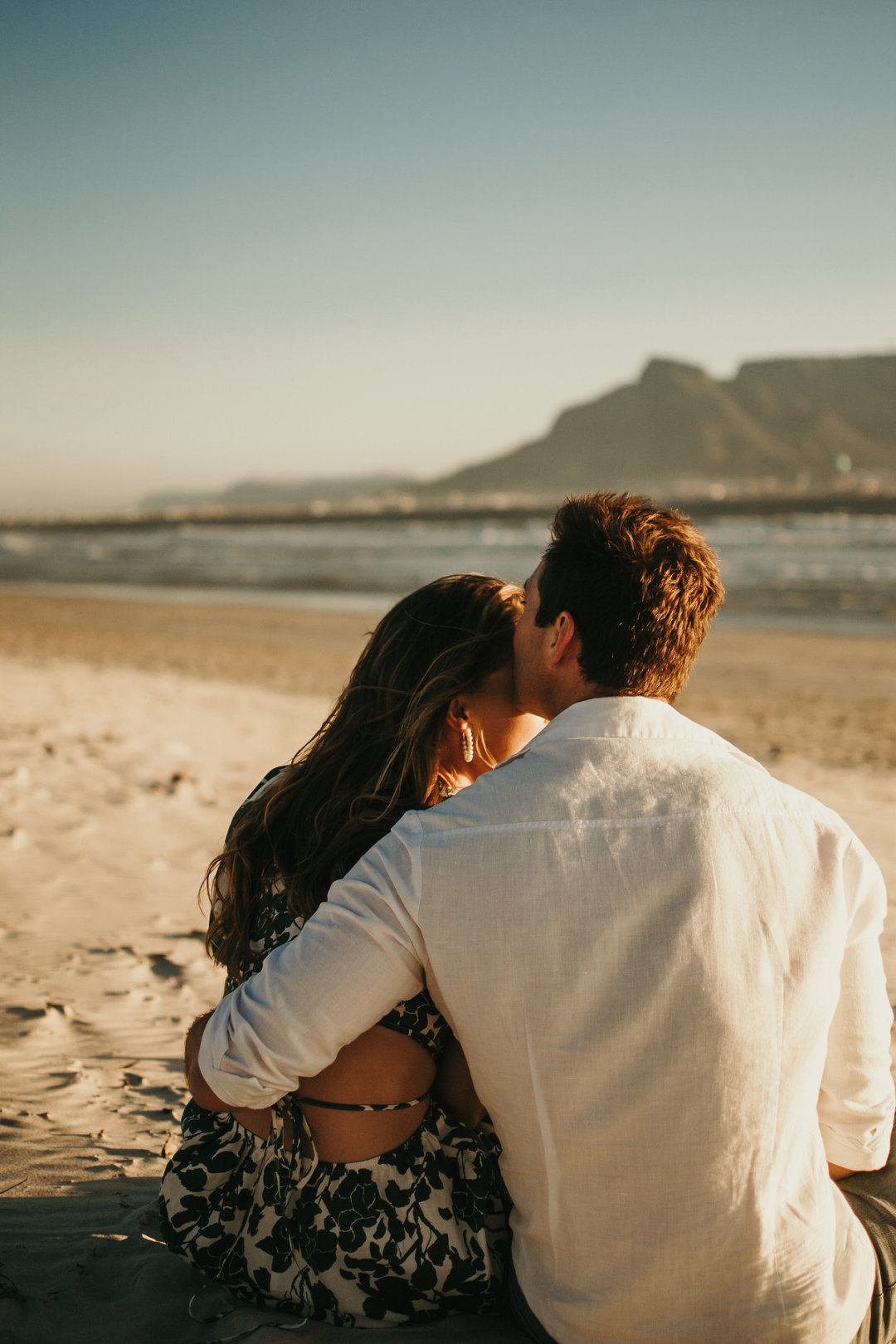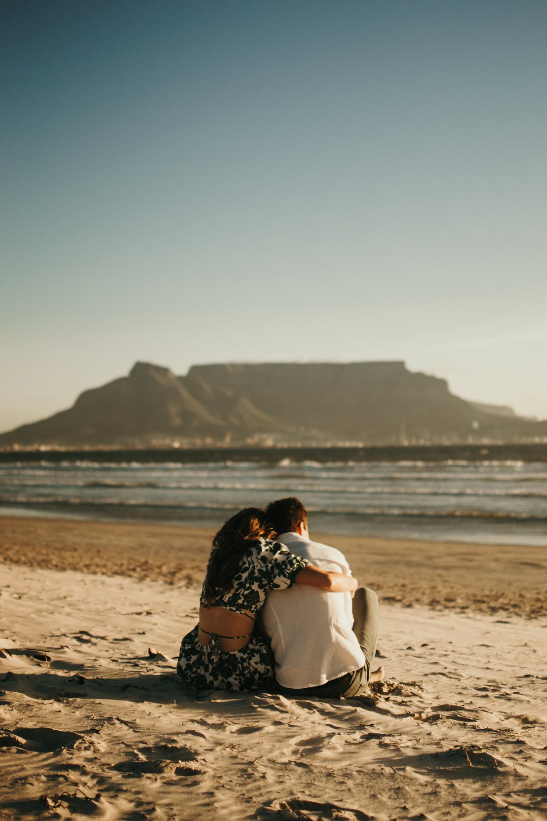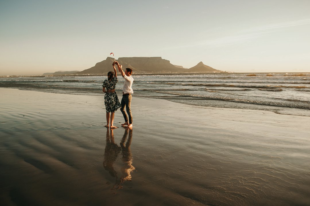 Rol af om meer te lees oor Pieter en Lize se Bloubergstrand verlowing fotosessie en hul liefdesreis as paartjie.