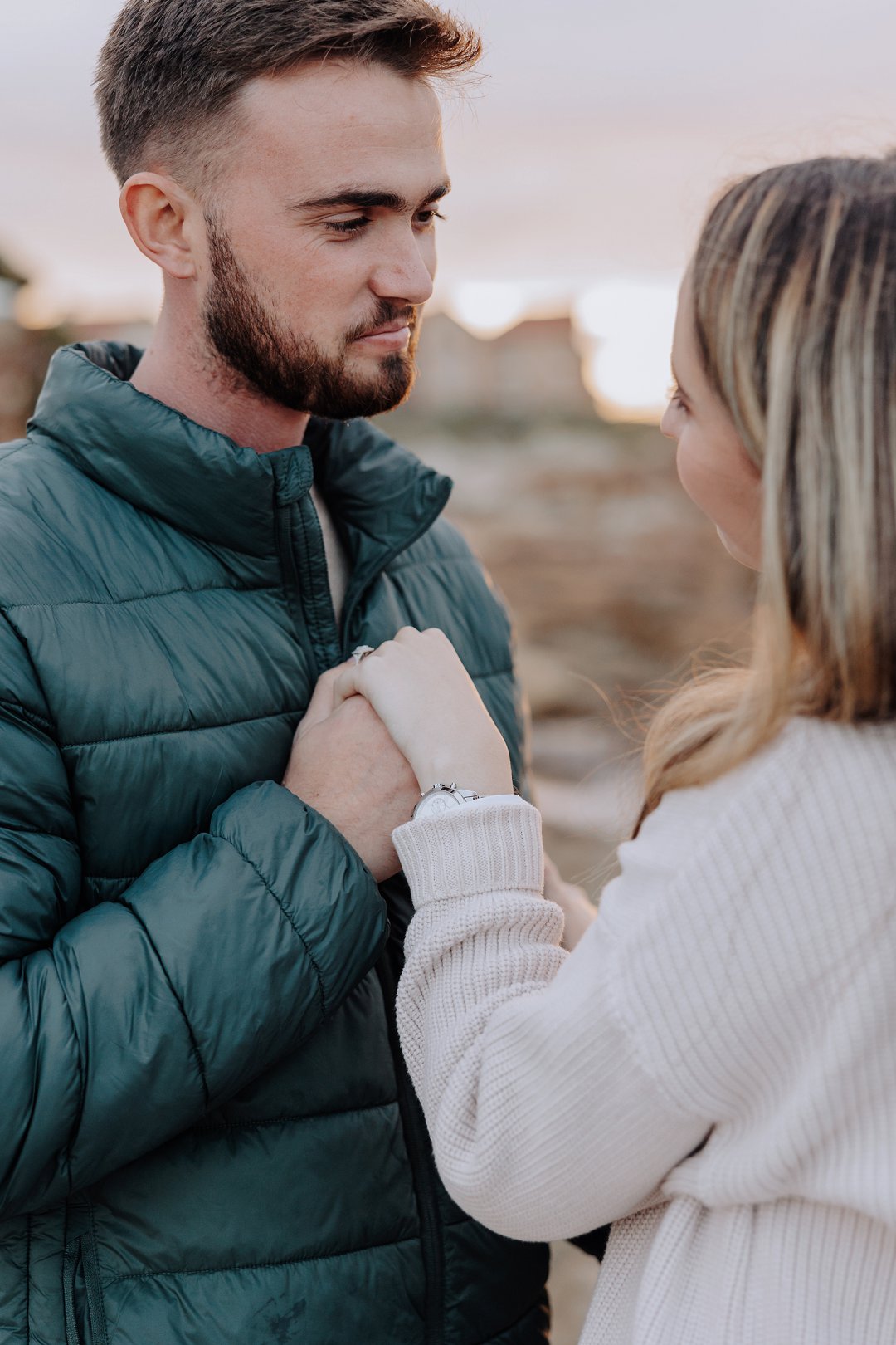 Ander dinge wat ʼn verlowing fotosessie ekstra mooi maak is die kleredrag van die paartjie. Kyk net hoe netjies lyk Twané en Cameron. Hulle uitrustings pas bymekaar en dit is neutraal so vertoon so mooi op die foto’s.