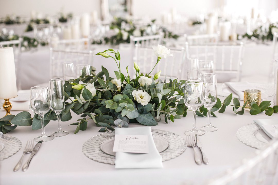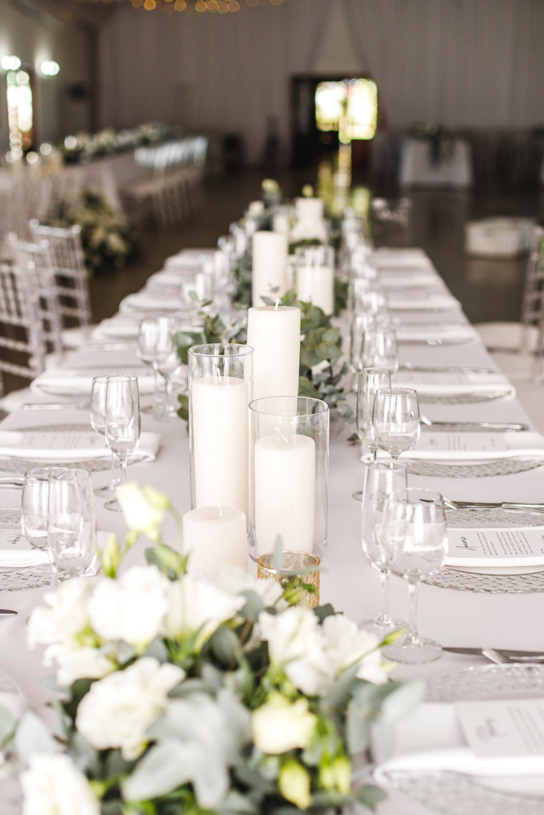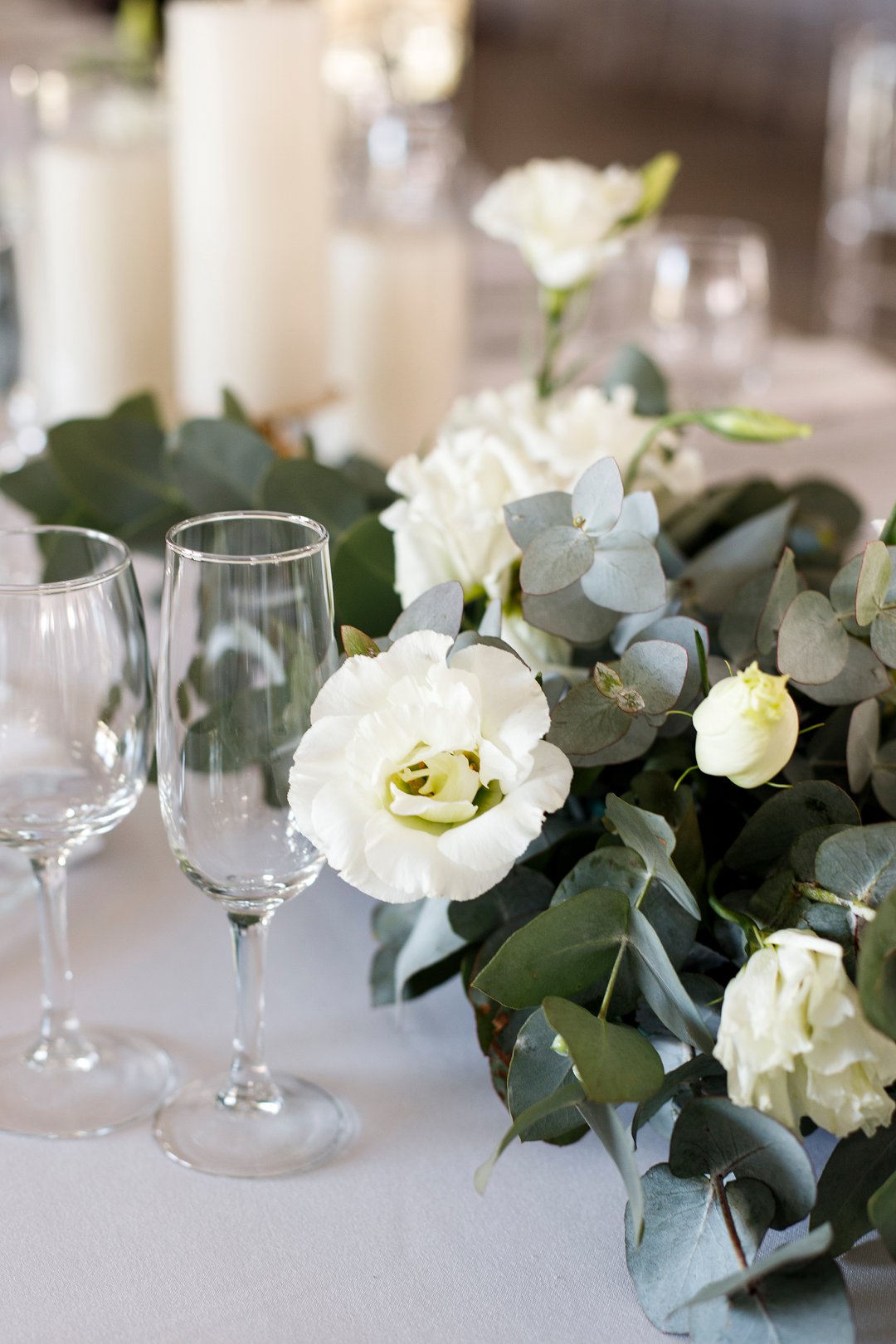 Die wit rose het ʼn aanvulling op die minimalistiese tafel dekor gebied. Hulle eenvoudige skoonheid en ligte aroma het nie net die tafels verfraai nie, maar ook ʼn romantiese en elegante element aan die onthaal gegee. Dit het gevoel asof die blomme die liefde tussen die paartjie verteenwoordig het, en dit het die ruimte omhels met ʼn sagte, romantiese gloed.