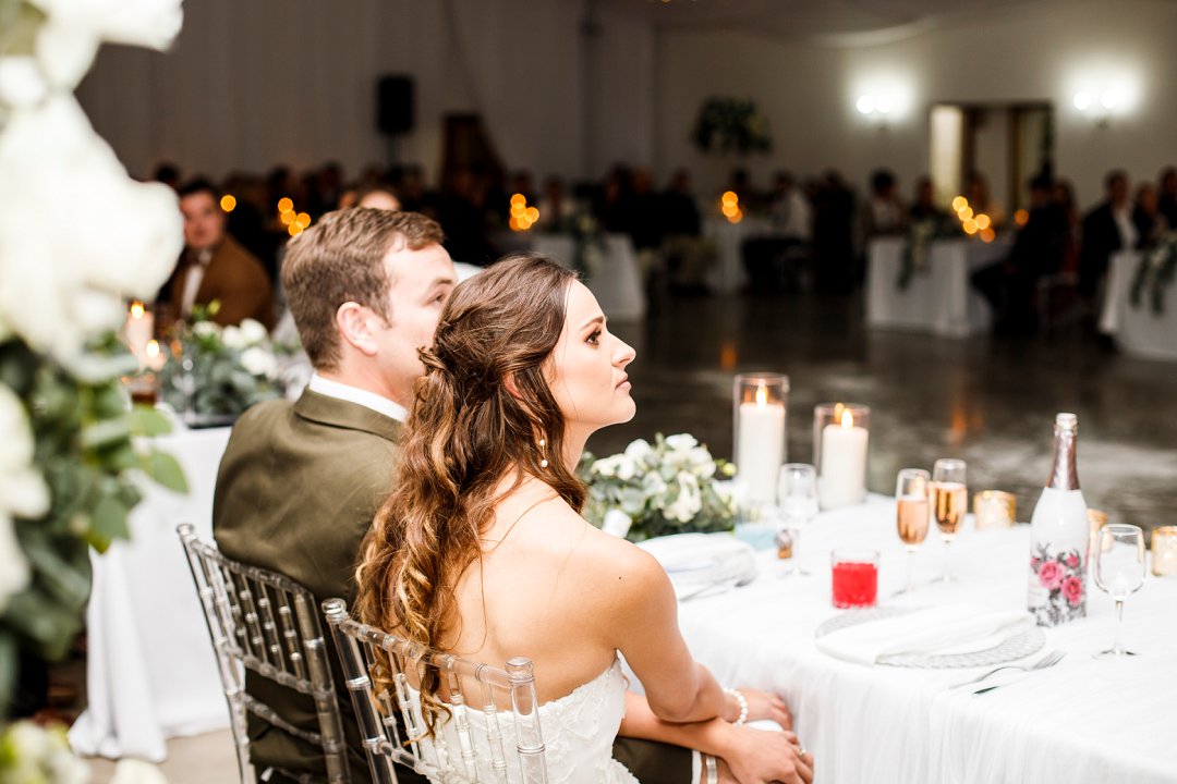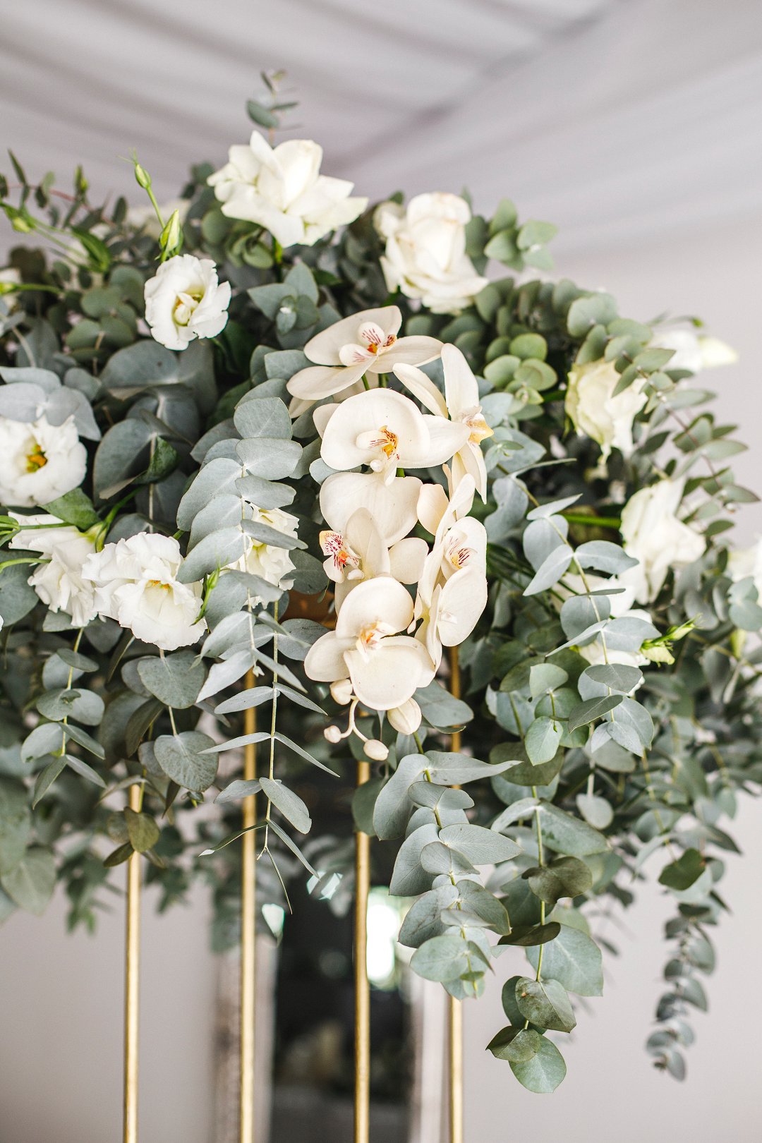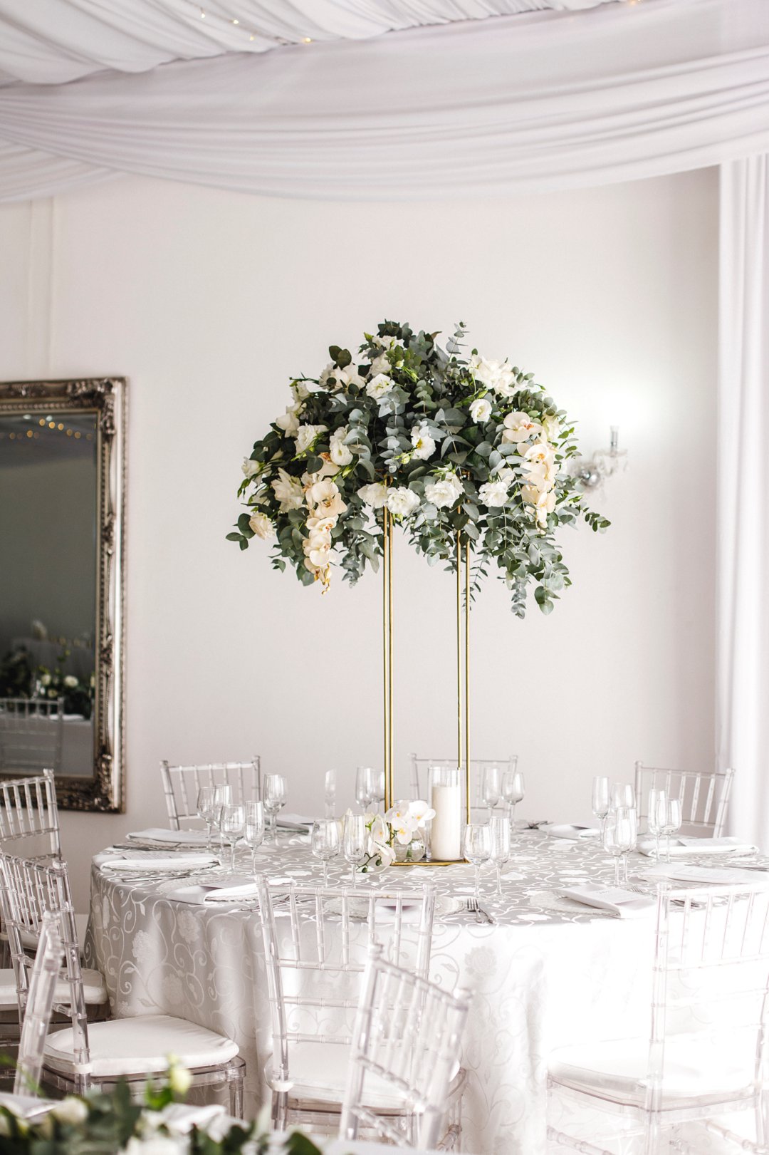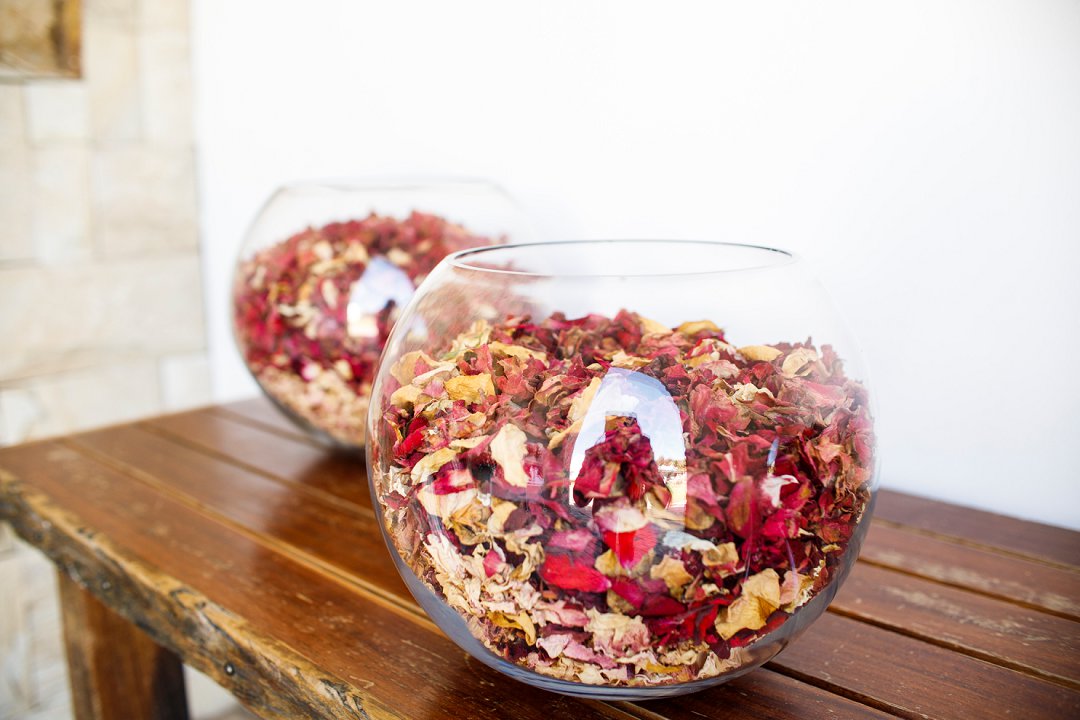 Die wit rose het ʼn aanvulling op die minimalistiese tafel dekor gebied. Hulle eenvoudige skoonheid en ligte aroma het nie net die tafels verfraai nie, maar ook ʼn romantiese en elegante element aan die onthaal gegee. Dit het gevoel asof die blomme die liefde tussen die paartjie verteenwoordig het, en dit het die ruimte omhels met ʼn sagte, romantiese gloed.