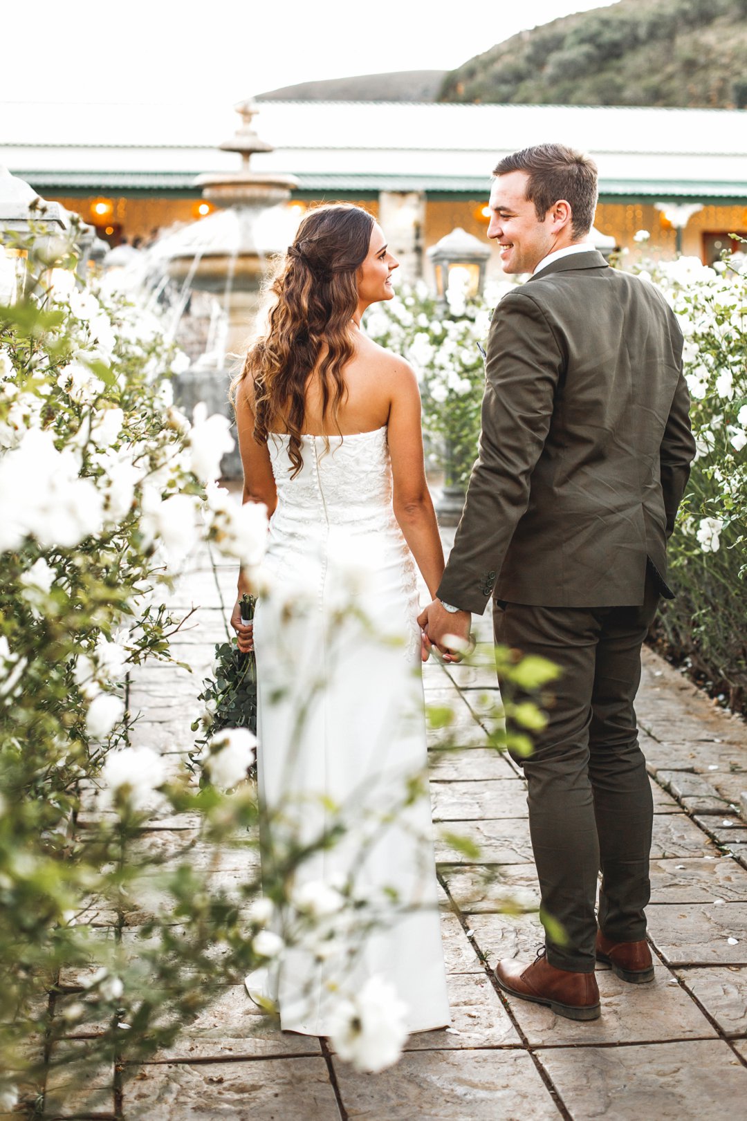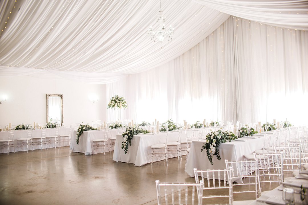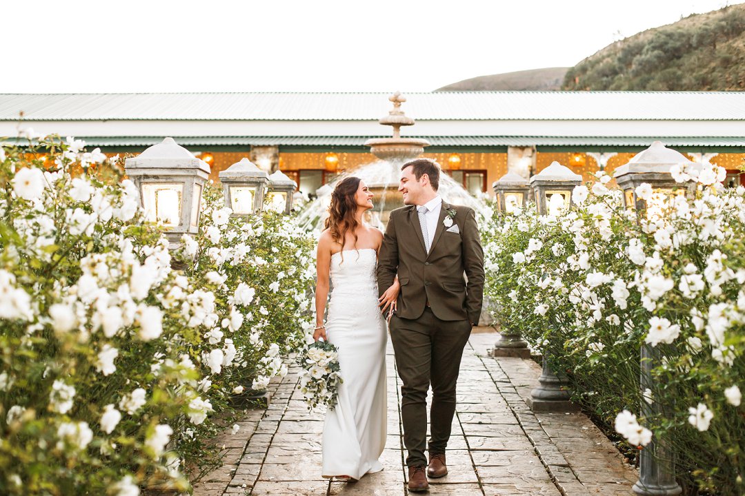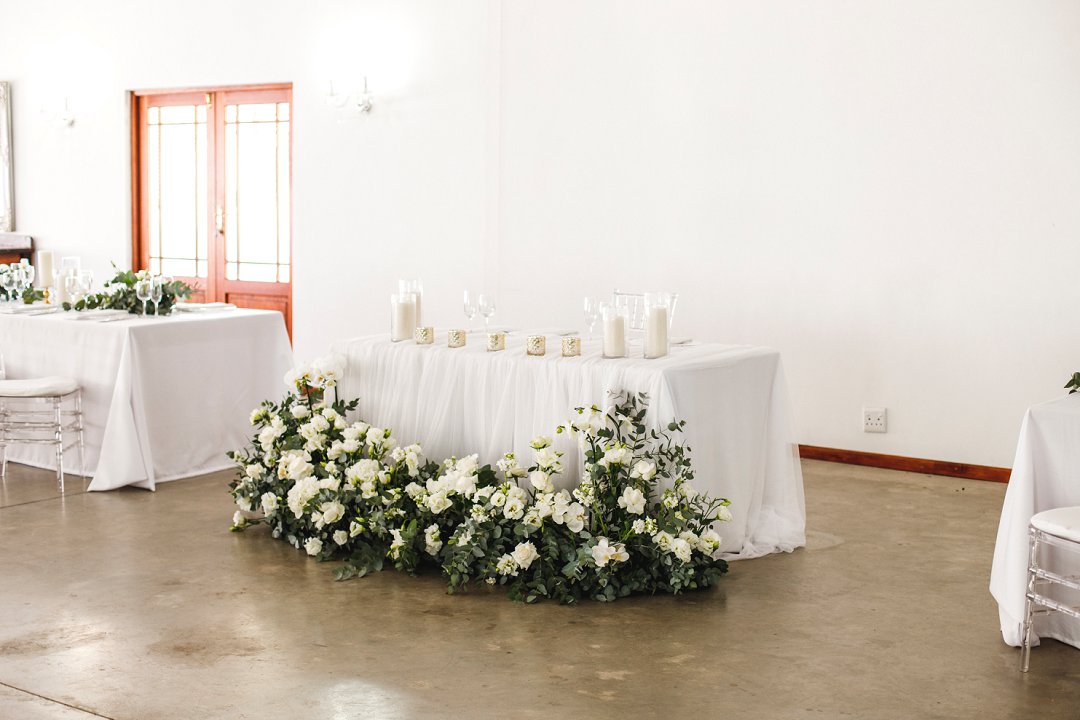 Die tuin se wit rose en die wit rose op die tafels het op ʼn besondere wyse die troue komplimenteer. Die wit rose in die tuin het ʼn betowerende welkome gebied toe gaste aangekom het, waar die frisheid en puurheid van die blomme die atmosfeer van liefde en harmonie geskets het. Dit het die ideale welkome voorgelê vir die paartjie se spesiale dag.