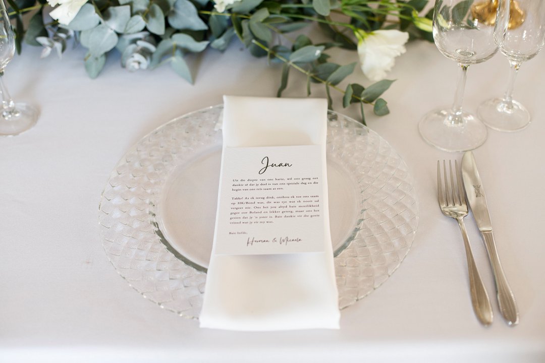 Ons is altwee baie plein mense en het so óók ʼn baie simplistiese troue gesoek wat soos ons voel. Toe ek vir Tannie Kobie Joubert van Karoo Weddings, Flowers and Decor vra om die dekor te doen, toe weet ek sy gaan alles mooi kan uitbeeld!