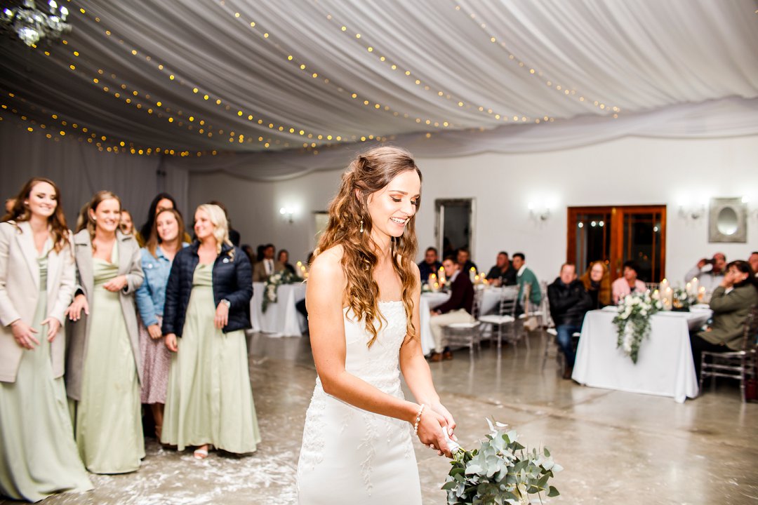 Nadat ons getrou het en klaar foto’s geneem het, toe ons in die saal instap en jou hele leeftyd se gunsteling mense is almal voor jou en jou toekoms stap langs jou en hou jou hand vas. Dit was net só spesiaal om te weet almal was daar om ons huwelik te vier.