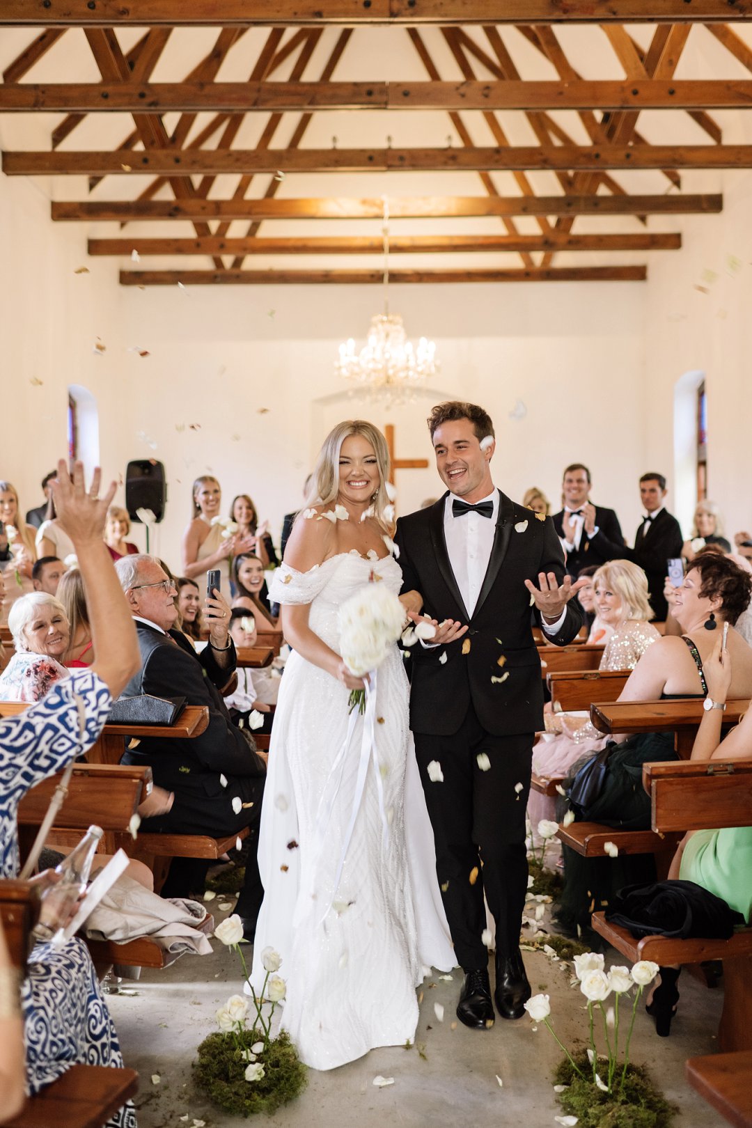 Ons is totaal-en-al dolverlief op die Michelle se trourok! Die lang sluier en oop skouers, te same met die fyn kralewerk detail op die trourok is dit ʼn besonderse trourok wat haar voorkoms baie goed gekomplimenteer het. Die bruidegom se swart troupak met die strikdas is so deftig en werk perfek saam met die troue se styl.