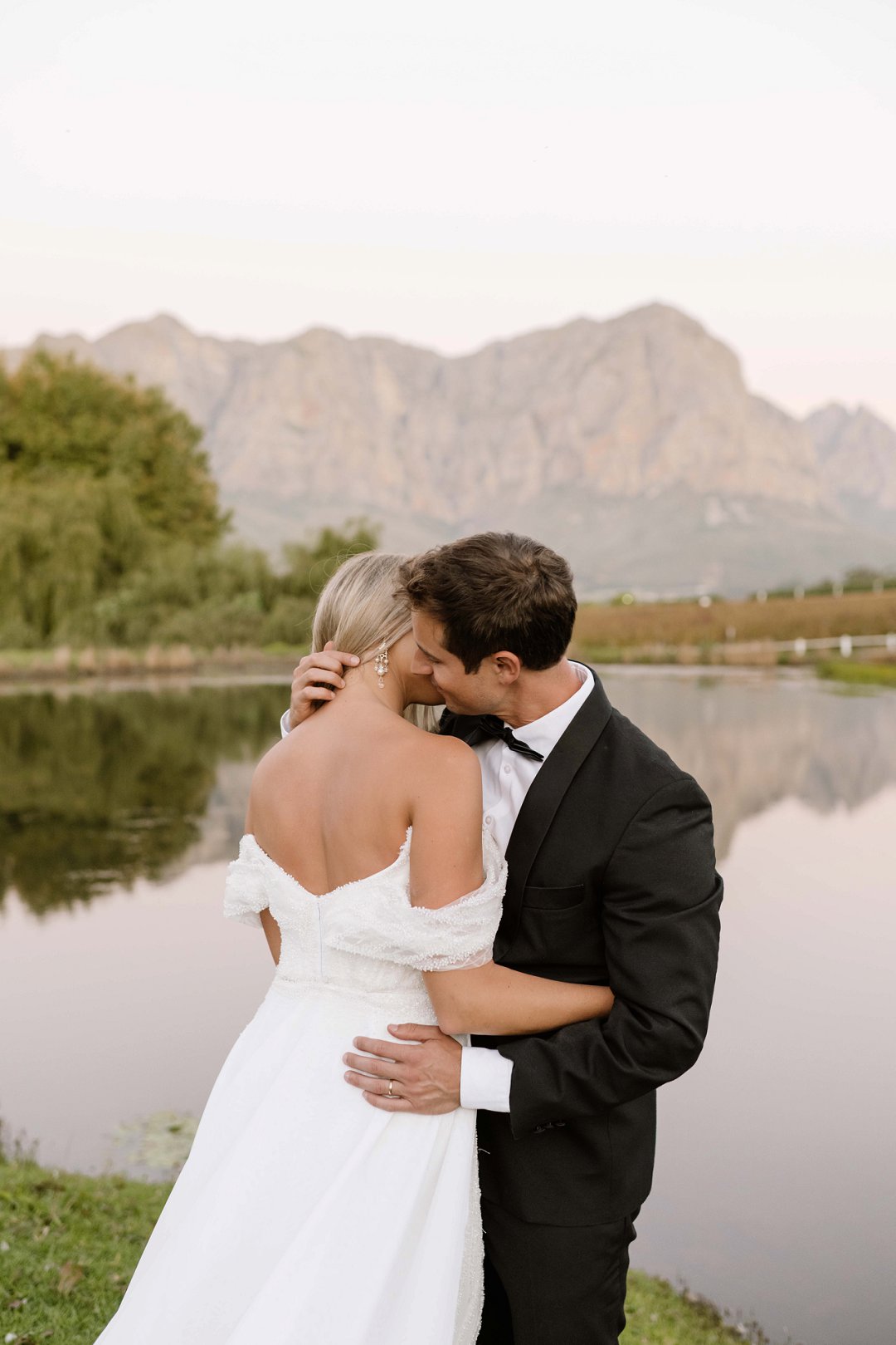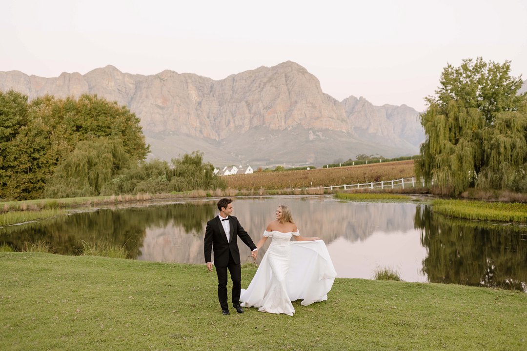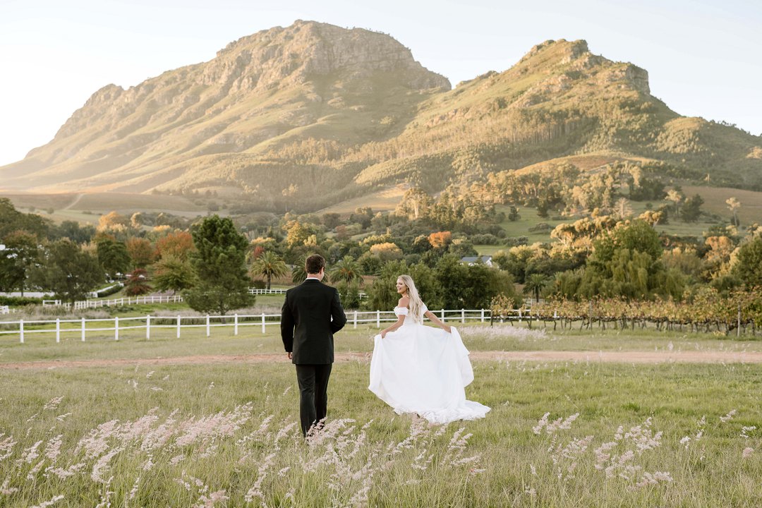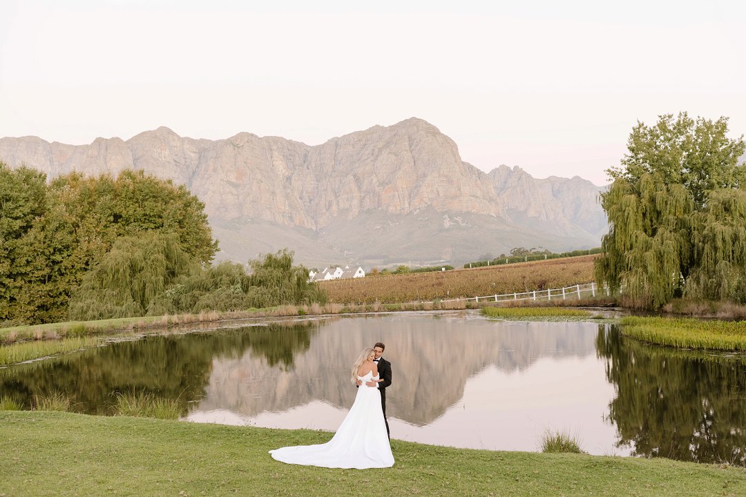 Die majestueuse berge van die Kaapse wynlande skep die perfekte agtergrond vir die prentjiemooi troufoto’s wat Danelle Stofberg so mooi vasgevang het. Rol af om meer te sien van hul troue en te lees oor die paartjie se prentjie mooi wynlandgoed troue.