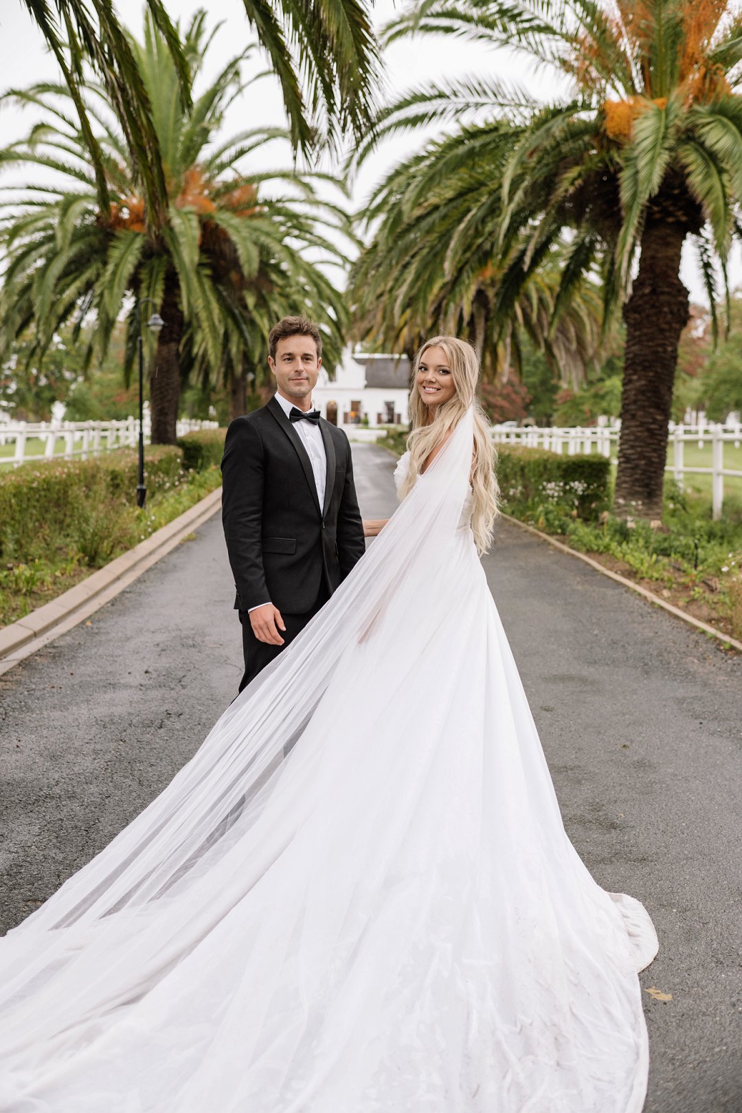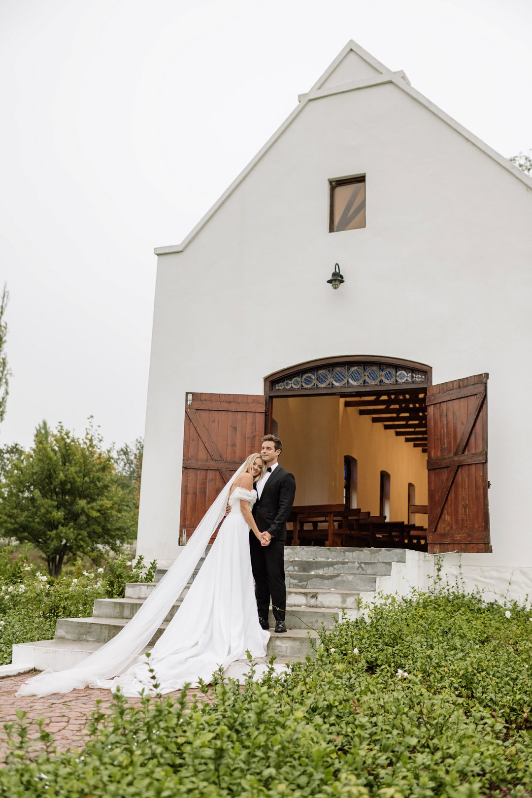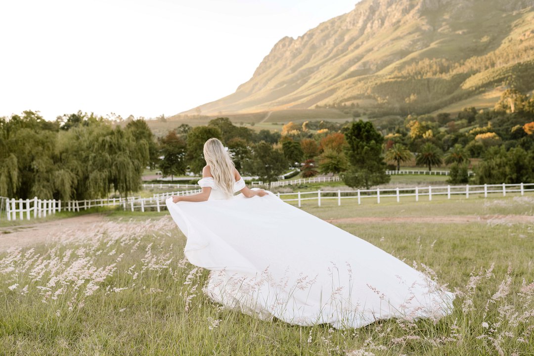 Die majestueuse berge van die Kaapse wynlande skep die perfekte agtergrond vir die prentjiemooi troufoto’s wat Danelle Stofberg so mooi vasgevang het. Rol af om meer te sien van hul troue en te lees oor die paartjie se prentjie mooi wynlandgoed troue.