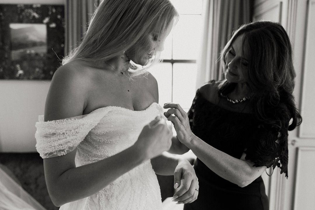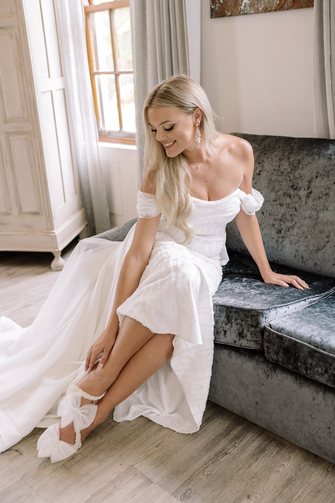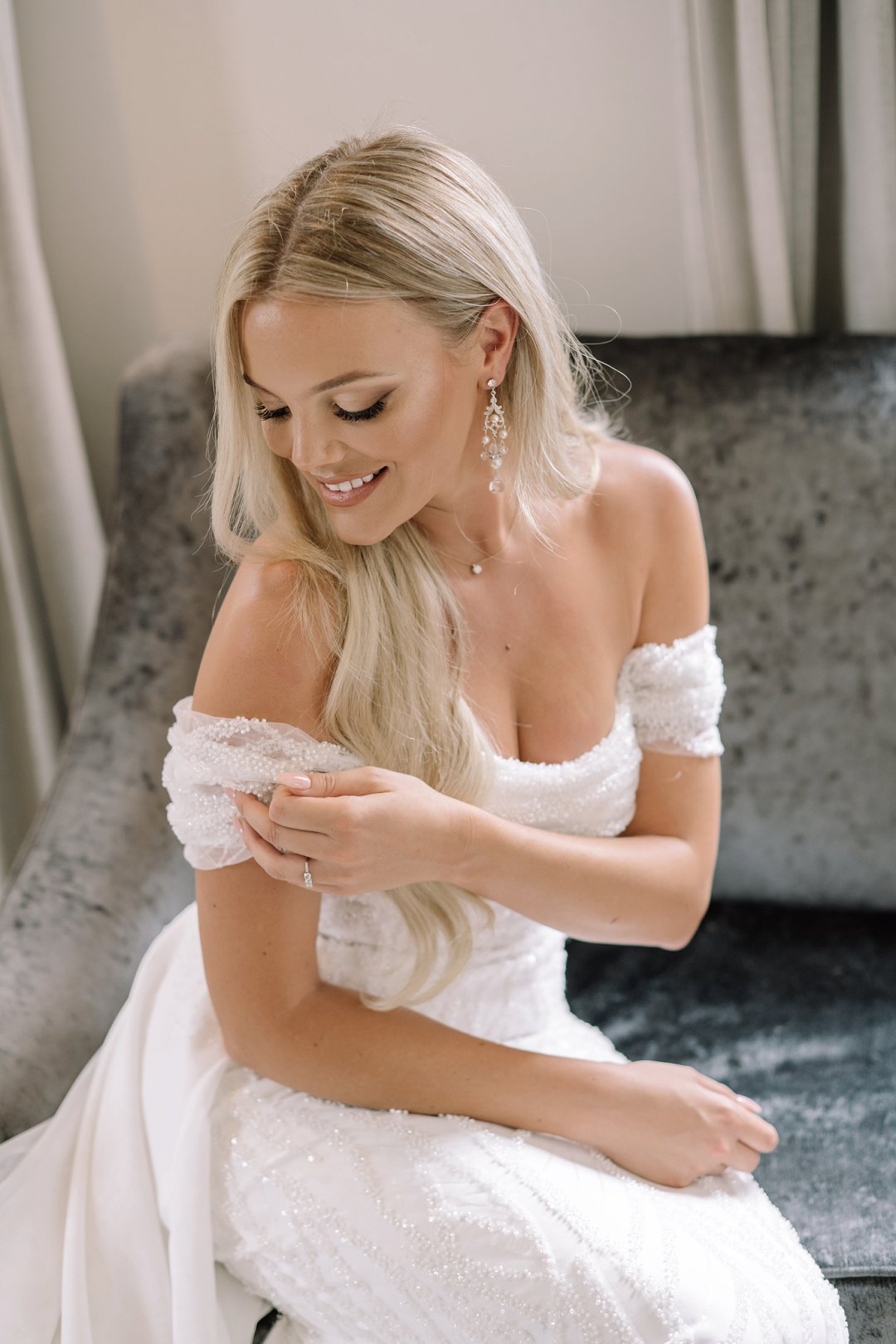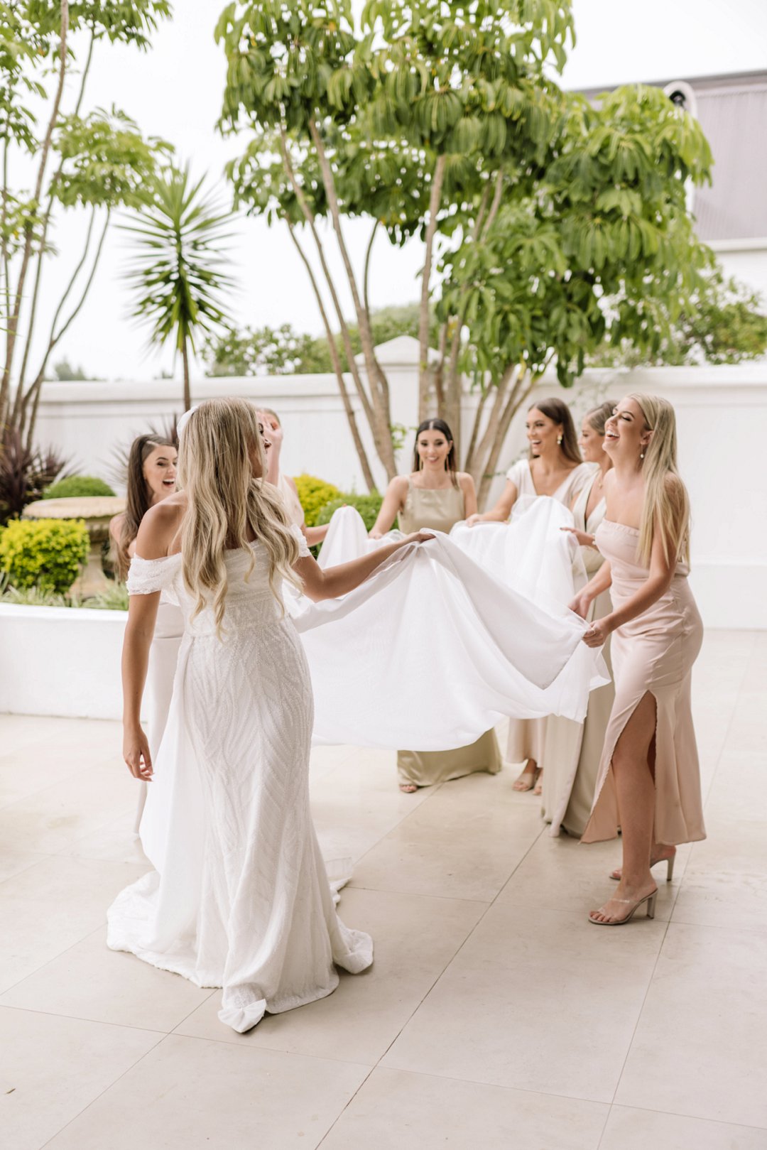 Voordat ek selfs verloof was, het ek geweet dat ek wil hê Nicolle van House of Santos my trourok moet ontwerp. Ek is absoluut mal oor alles wat sy maak! Ek was in Australië en sy is natuurlik in Suid-Afrika. So ons het ʼn hele klomp video-oproepe gehad om die rok te ontwerp. Ek het nie baie van kant gehou nie, en ek was ook nie mal oor ʼn eenvoudige rok nie – dit is mos die een dag waarop jou rok bietjie EKSTRA kan wees! En so het Nicolle die pragtigste beaded rok vir my ontwerp.