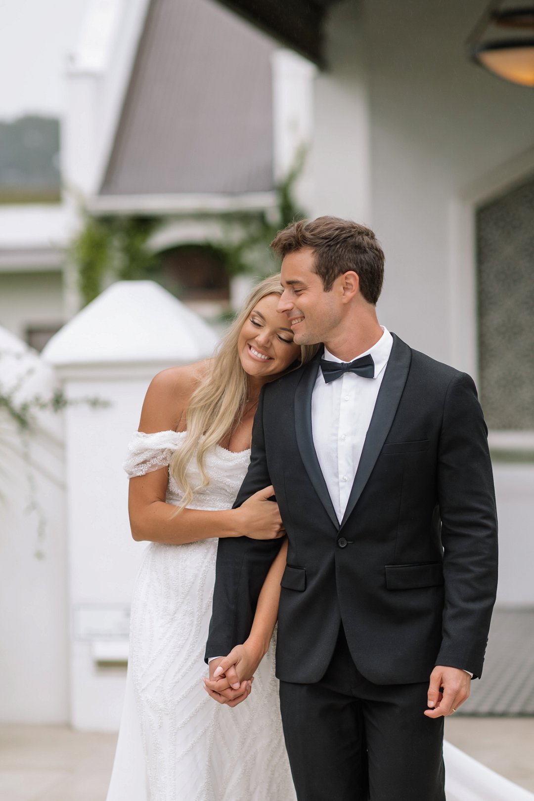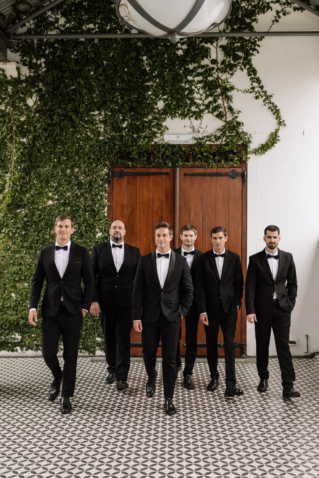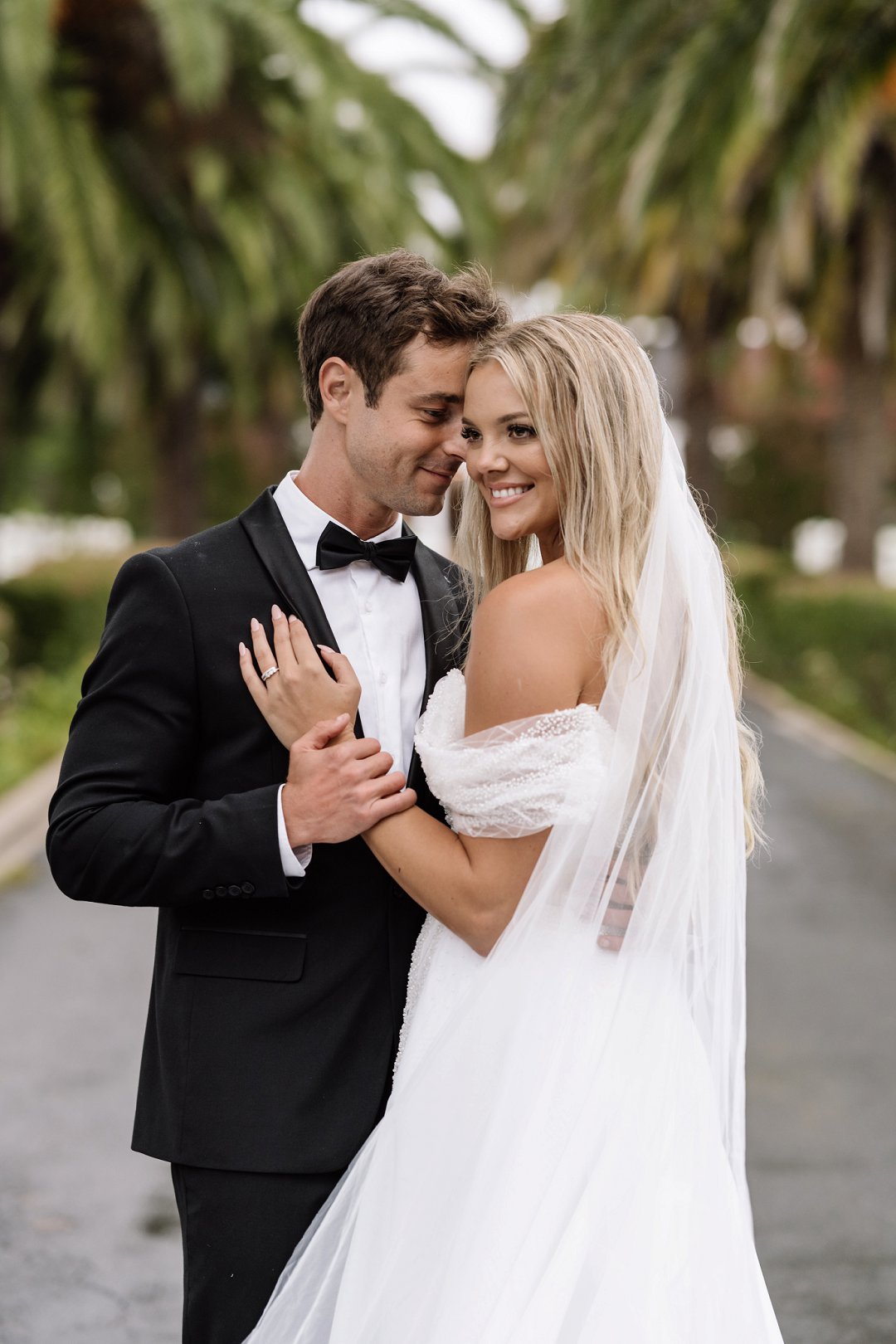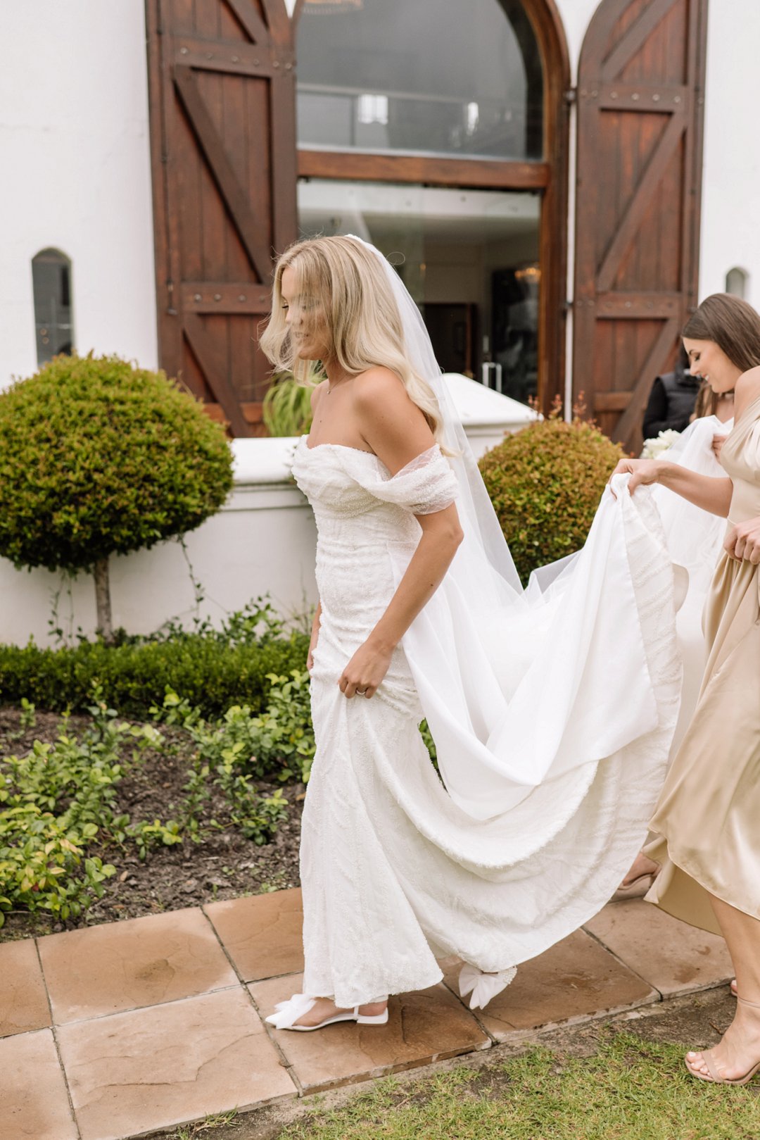 Ons is totaal-en-al dolverlief op die Michelle se trourok! Die lang sluier en oop skouers, te same met die fyn kralewerk detail op die trourok is dit ʼn besonderse trourok wat haar voorkoms baie goed gekomplimenteer het. Die bruidegom se swart troupak met die strikdas is so deftig en werk perfek saam met die troue se styl.