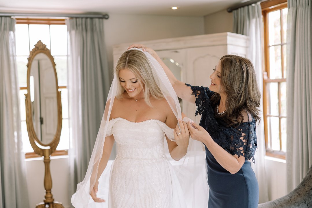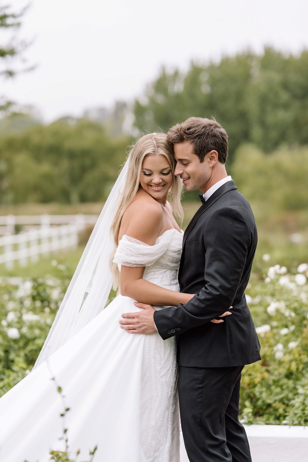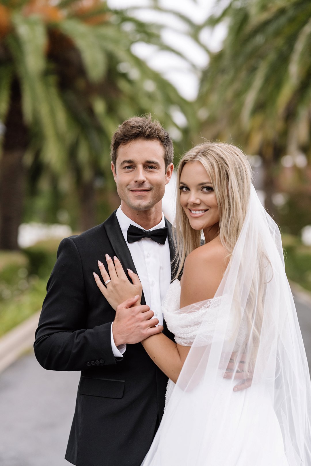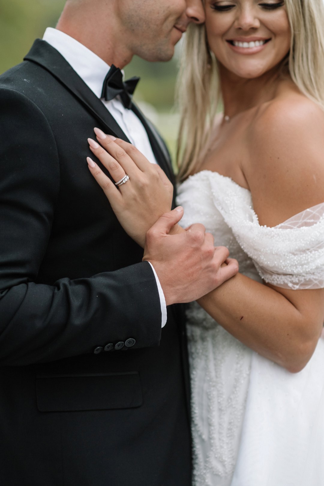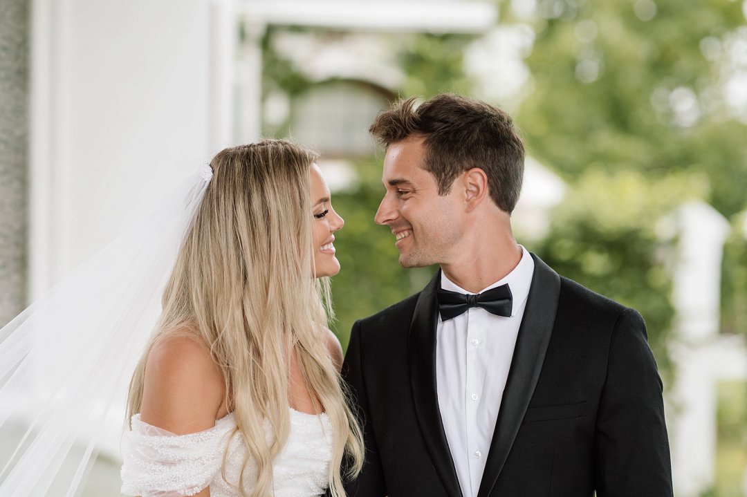Ons is totaal-en-al dolverlief op die Michelle se trourok! Die lang sluier en oop skouers, te same met die fyn kralewerk detail op die trourok is dit ʼn besonderse trourok wat haar voorkoms baie goed gekomplimenteer het. Die bruidegom se swart troupak met die strikdas is so deftig en werk perfek saam met die troue se styl.