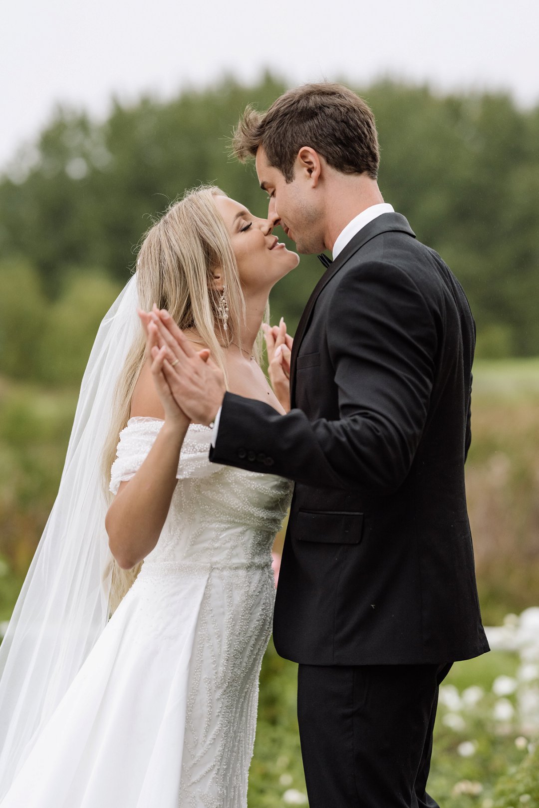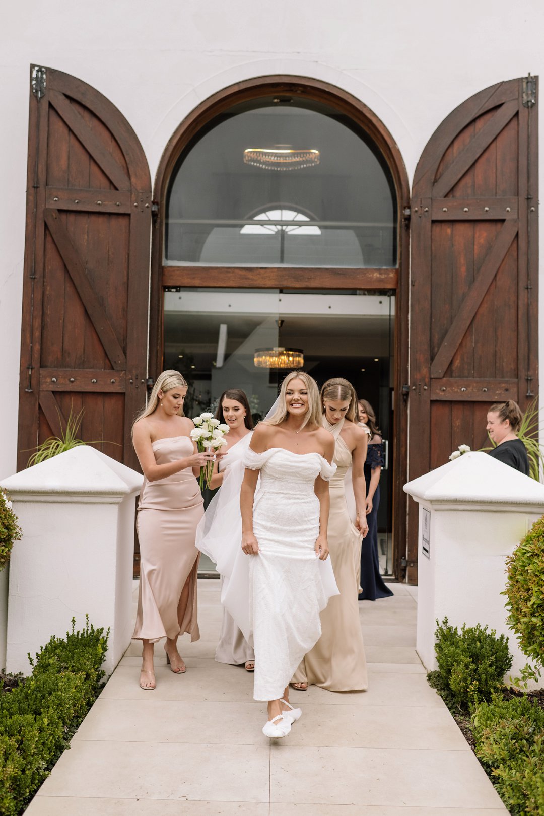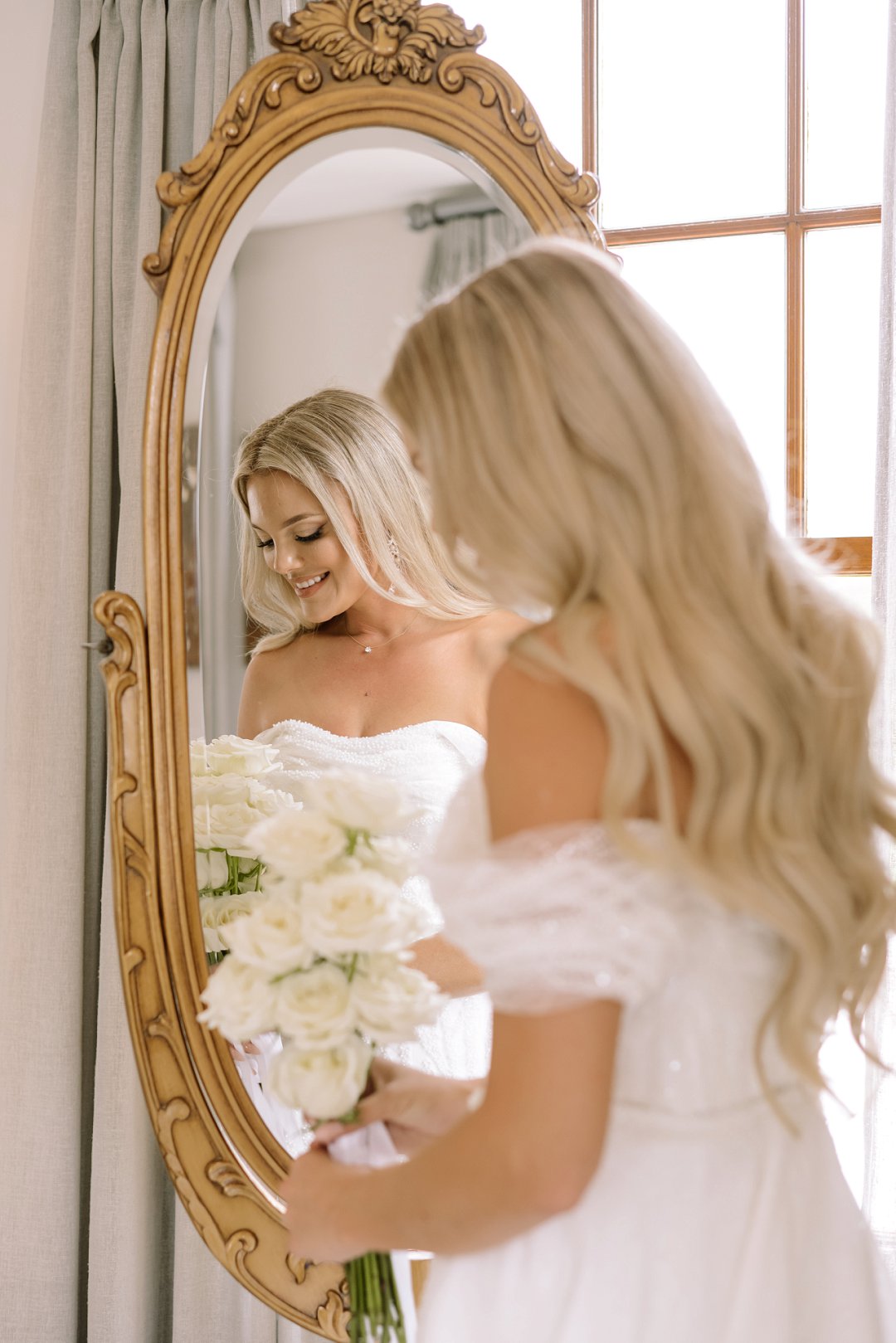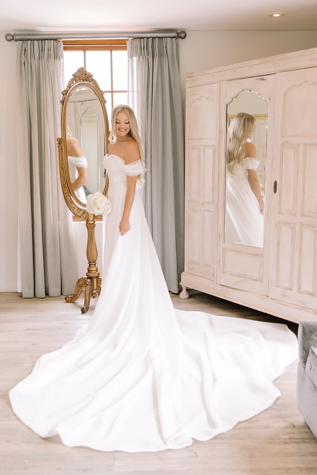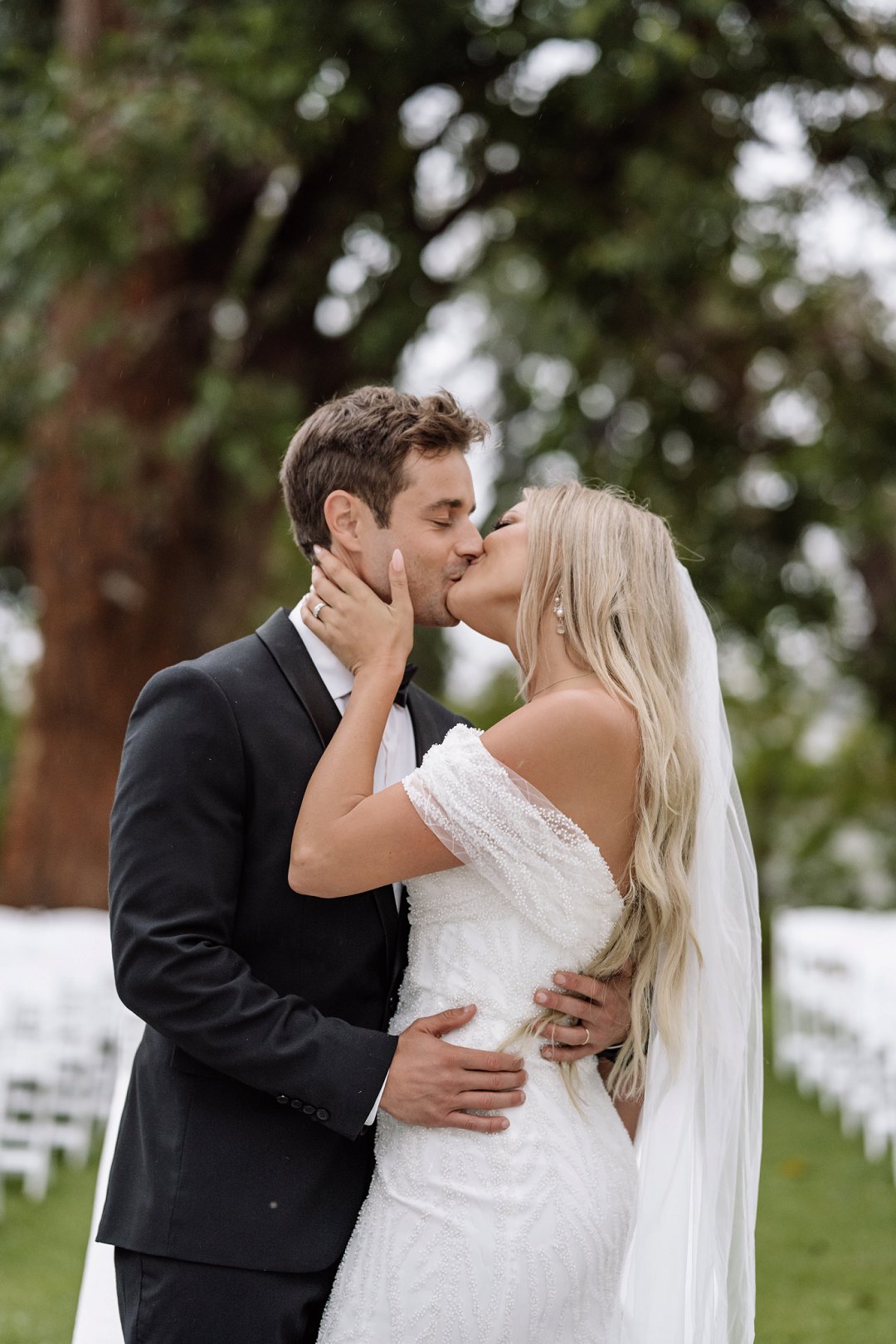 Ons is totaal-en-al dolverlief op die Michelle se trourok! Die lang sluier en oop skouers, te same met die fyn kralewerk detail op die trourok is dit ʼn besonderse trourok wat haar voorkoms baie goed gekomplimenteer het. Die bruidegom se swart troupak met die strikdas is so deftig en werk perfek saam met die troue se styl.