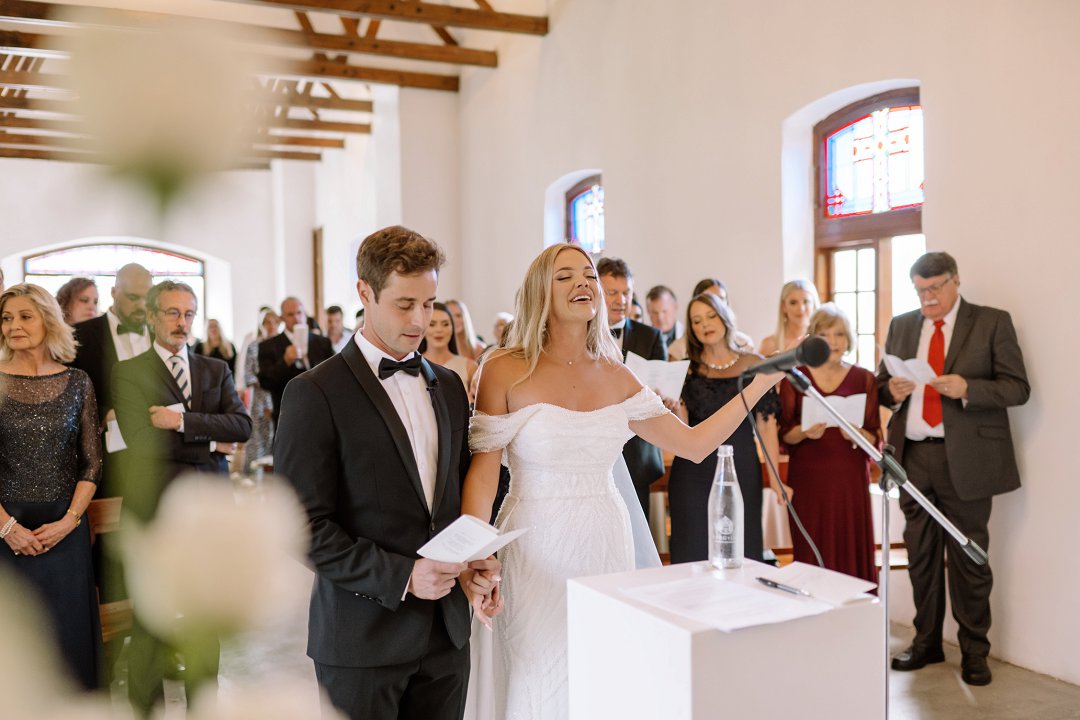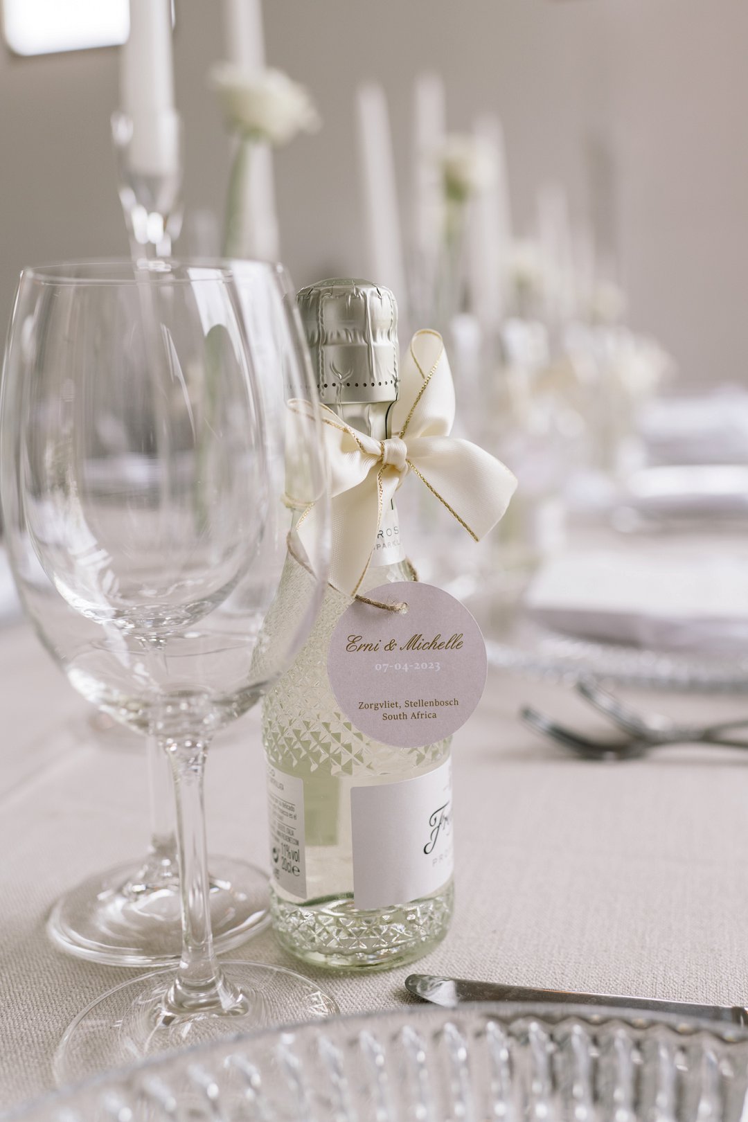 Die paartjie wou oorspronklik ʼn buitelig seremonie hê, maar as gevolg van die reën weer, het hulle in Zorgvliet Wines se oulike intieme kapel getrou. Christine van Zorgvliet Wines was Michelle en Erni trou koördineerder en het seker gemaak die paartjie se troudag verloop seepglad en dat die bruidspaar ʼn stresvrye troudag kon geniet.