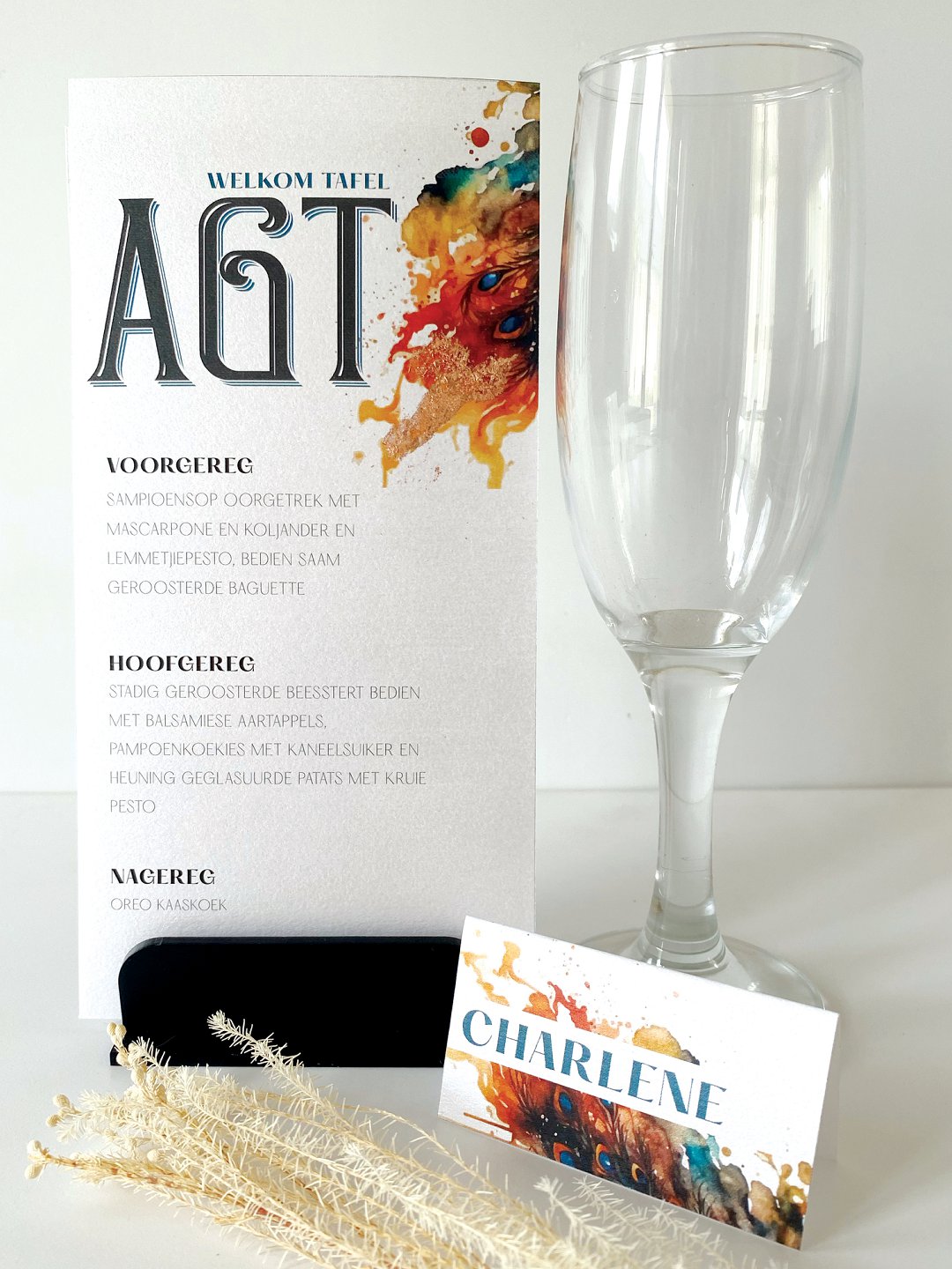 Die trou uitnodiging is een van die eerste indrukke wat jou gaste van jou troue sal kry. Wanneer gaste die venue binnekom, is die eerste dinge waarna hulle soek die sitplek kaartjie, asook die naamkaartjies op die tafels. Wanneer jou gaste by hul sitplek sit, is almal gewoonlik nuuskierig om te weet wat hulle gaan eet. Dus sal die spyskaart op die tafel ook deel wees van jou gaste se eerste indruk van die onthaal.