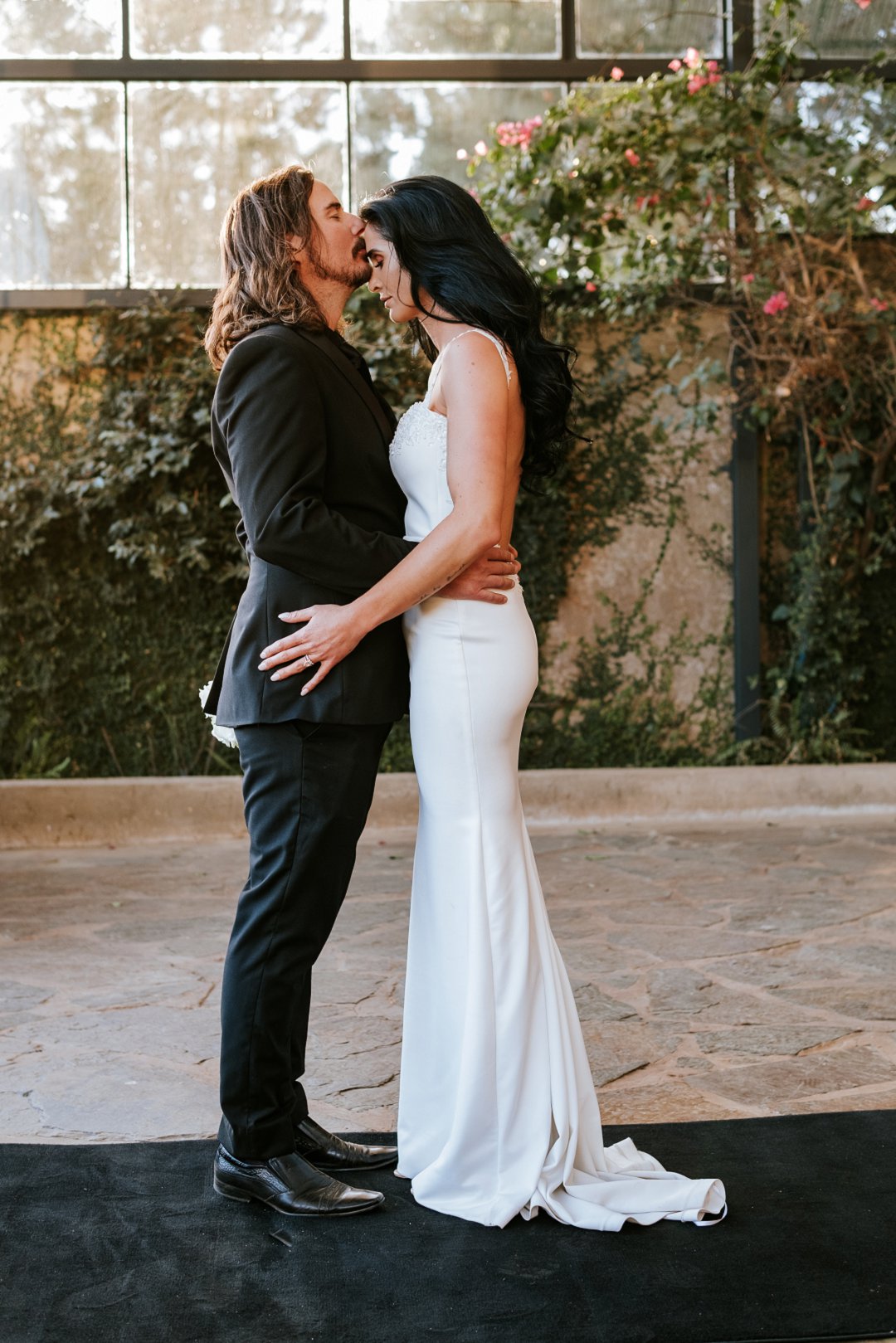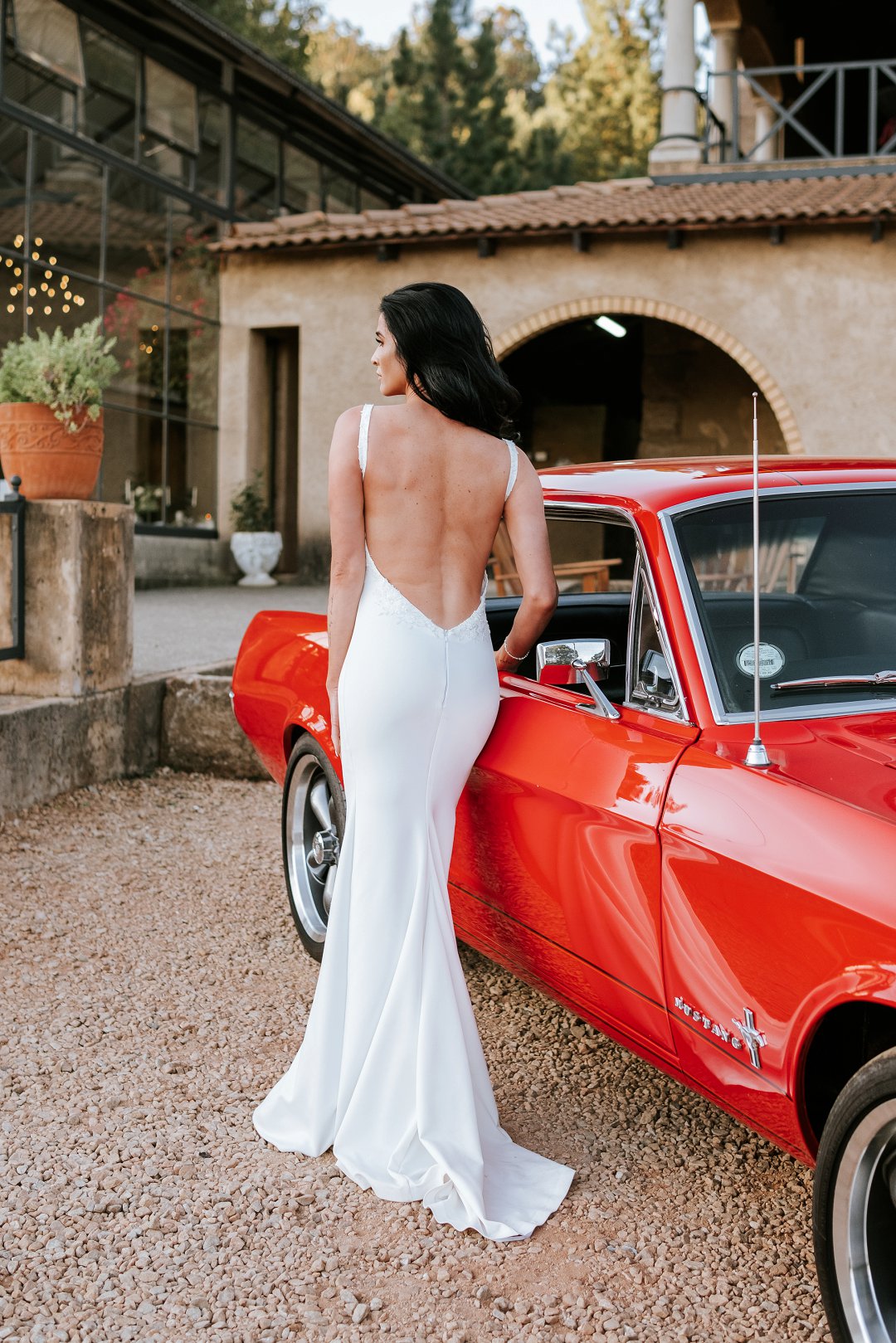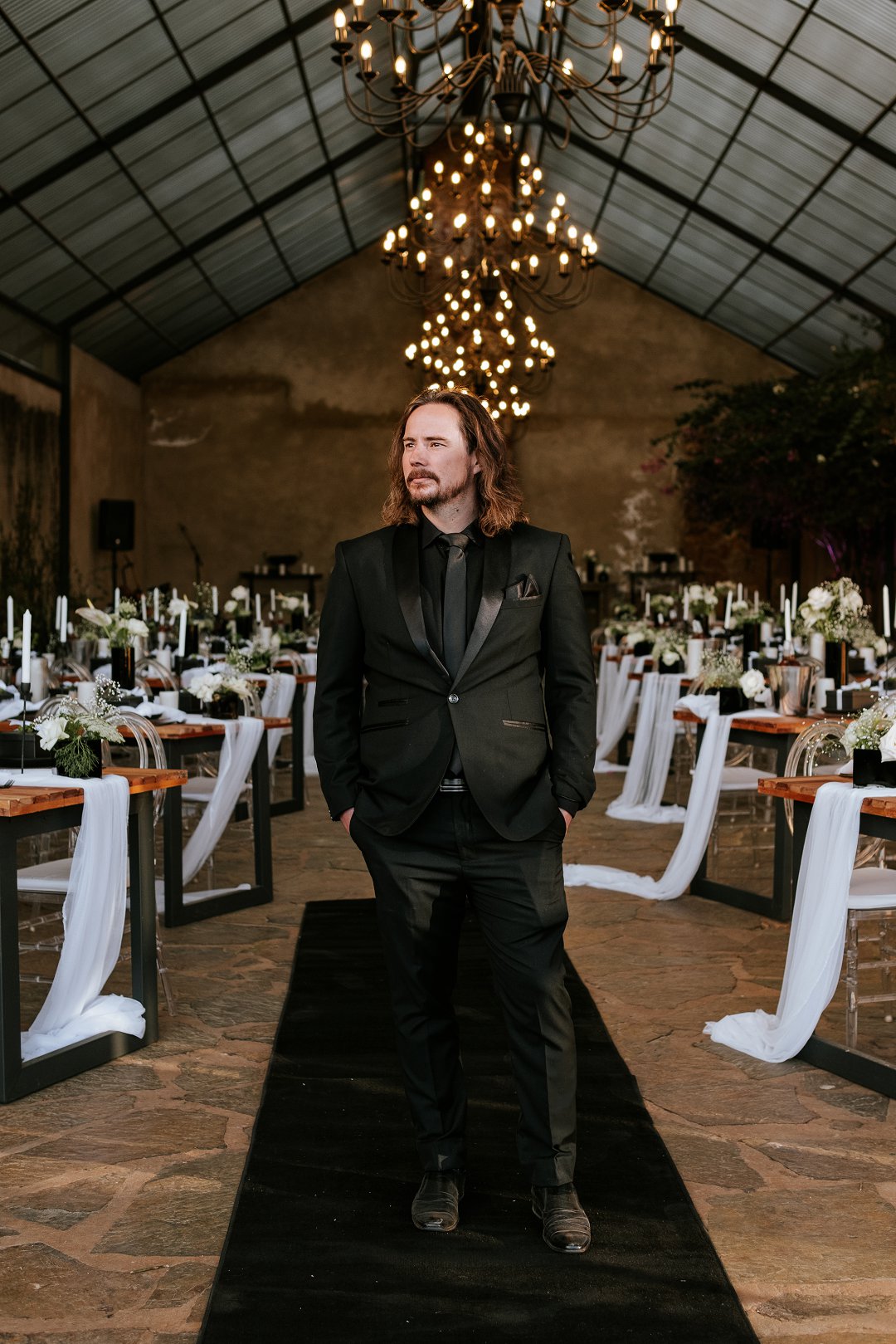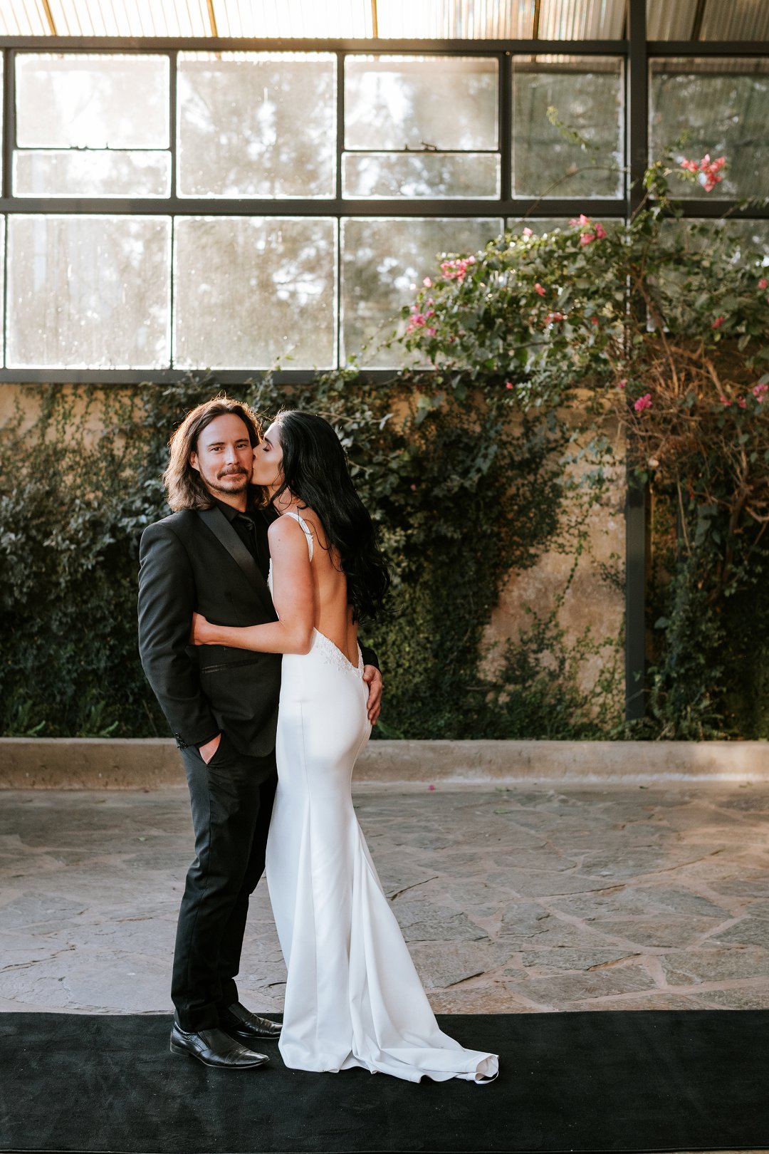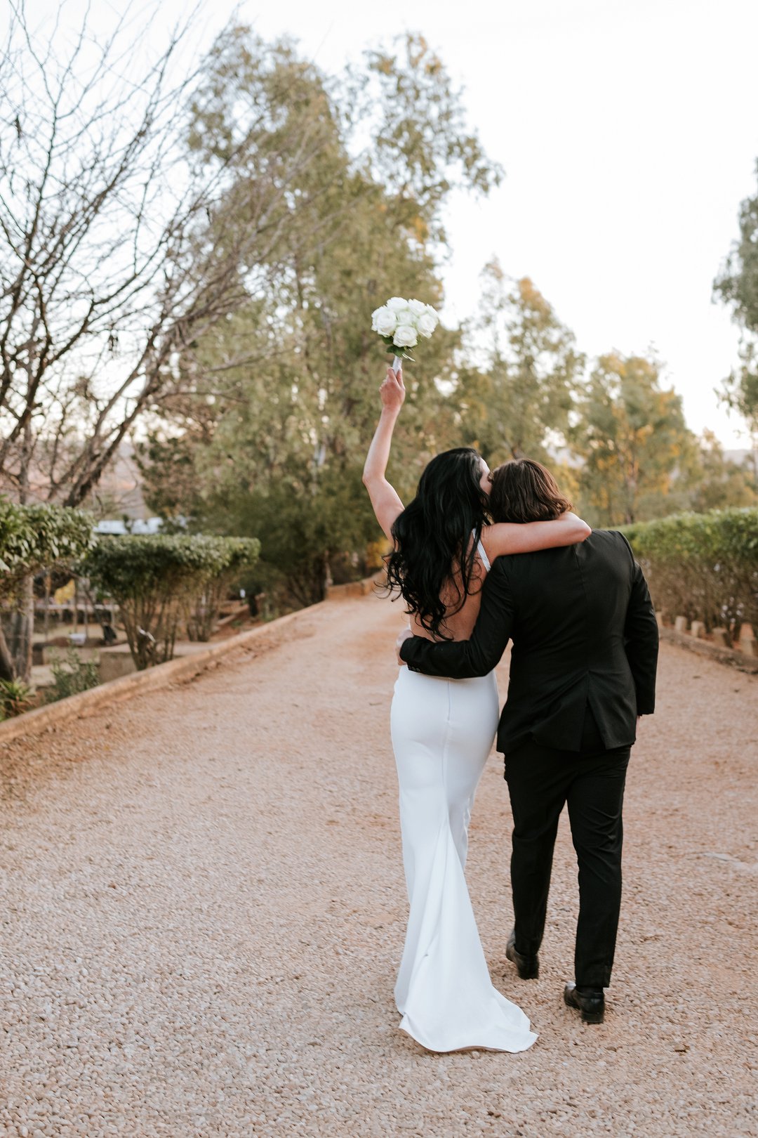 Elaine het beeldskoon gelyk in haar trourok. Ons is veral gaande oor die simplistiese styl van haar trourok en die lae oop rug. Dit pas só mooi by haar en die wit roos handruiker komplimenteer haar voorkoms. Ampie het baie dapper gelyk in ʼn volledige swart uitrusting.