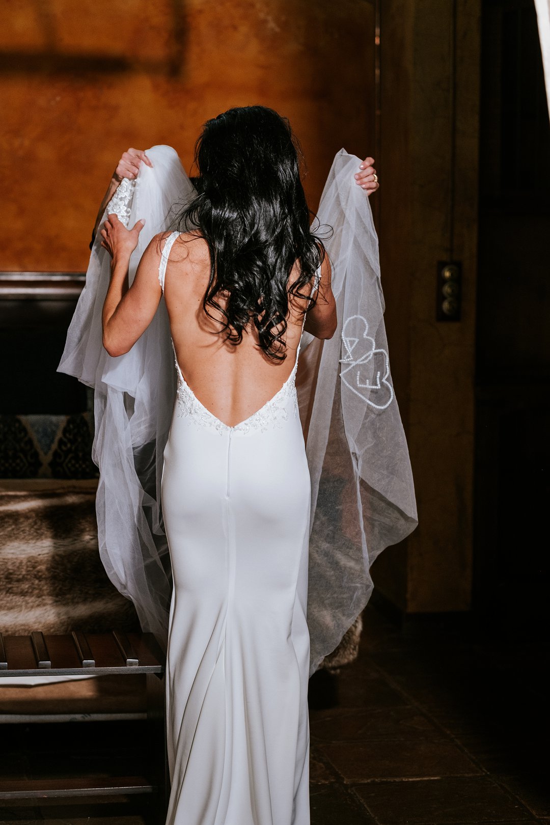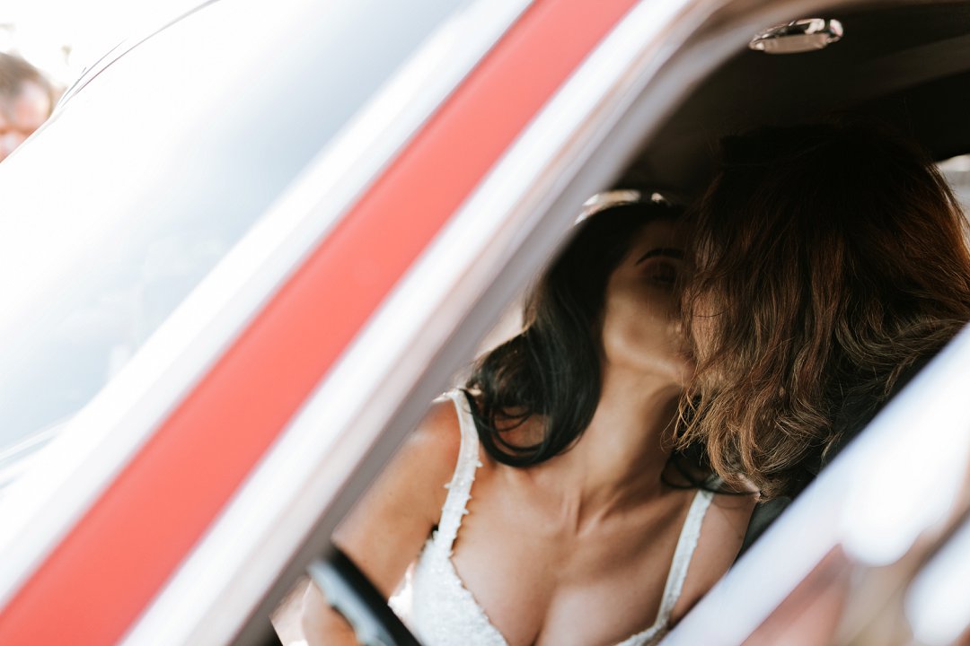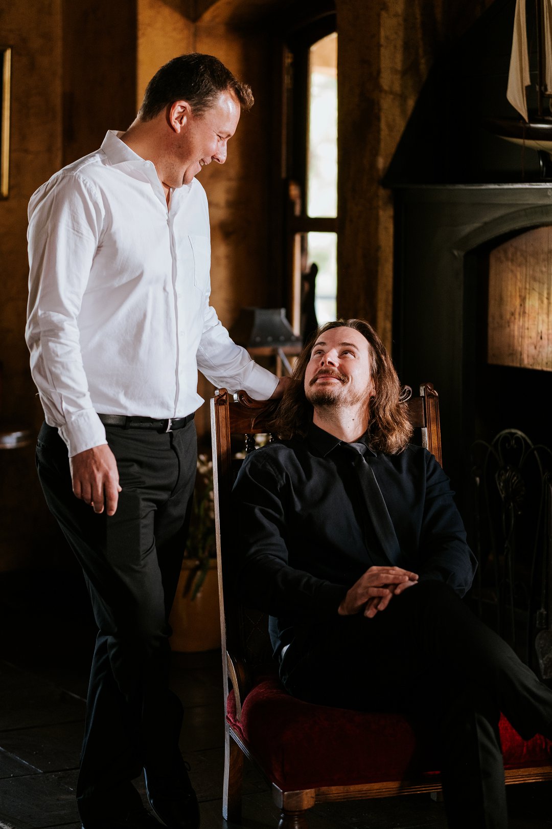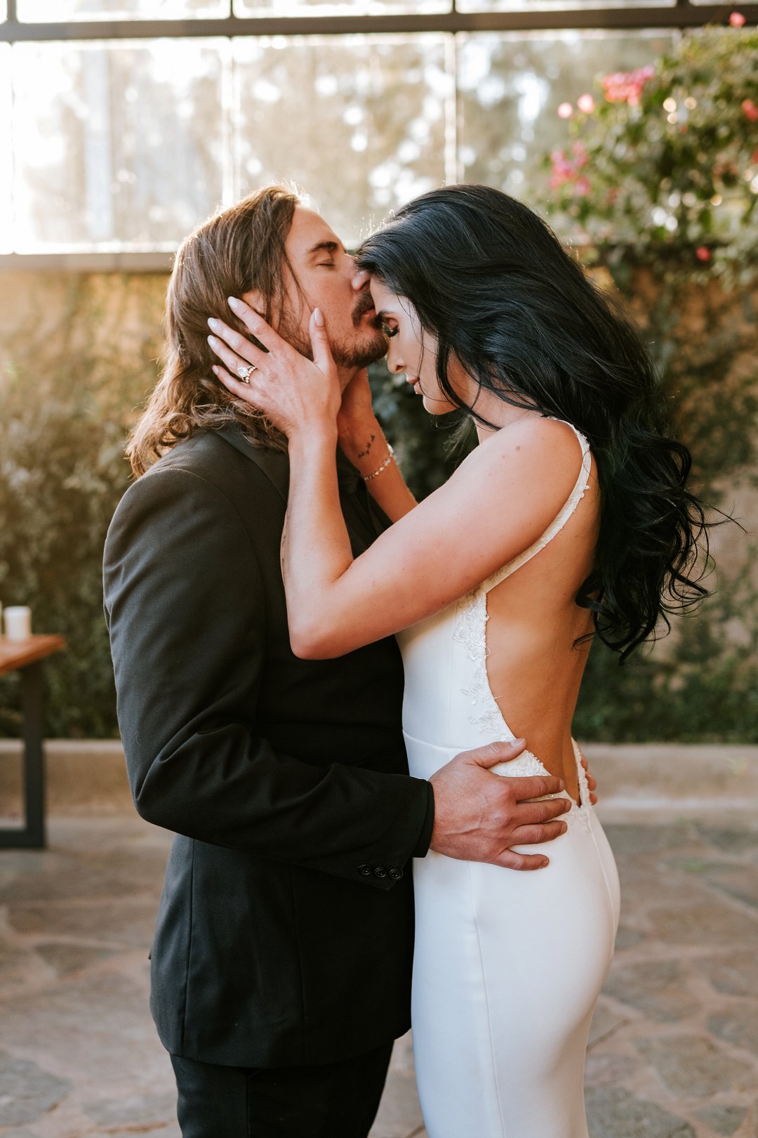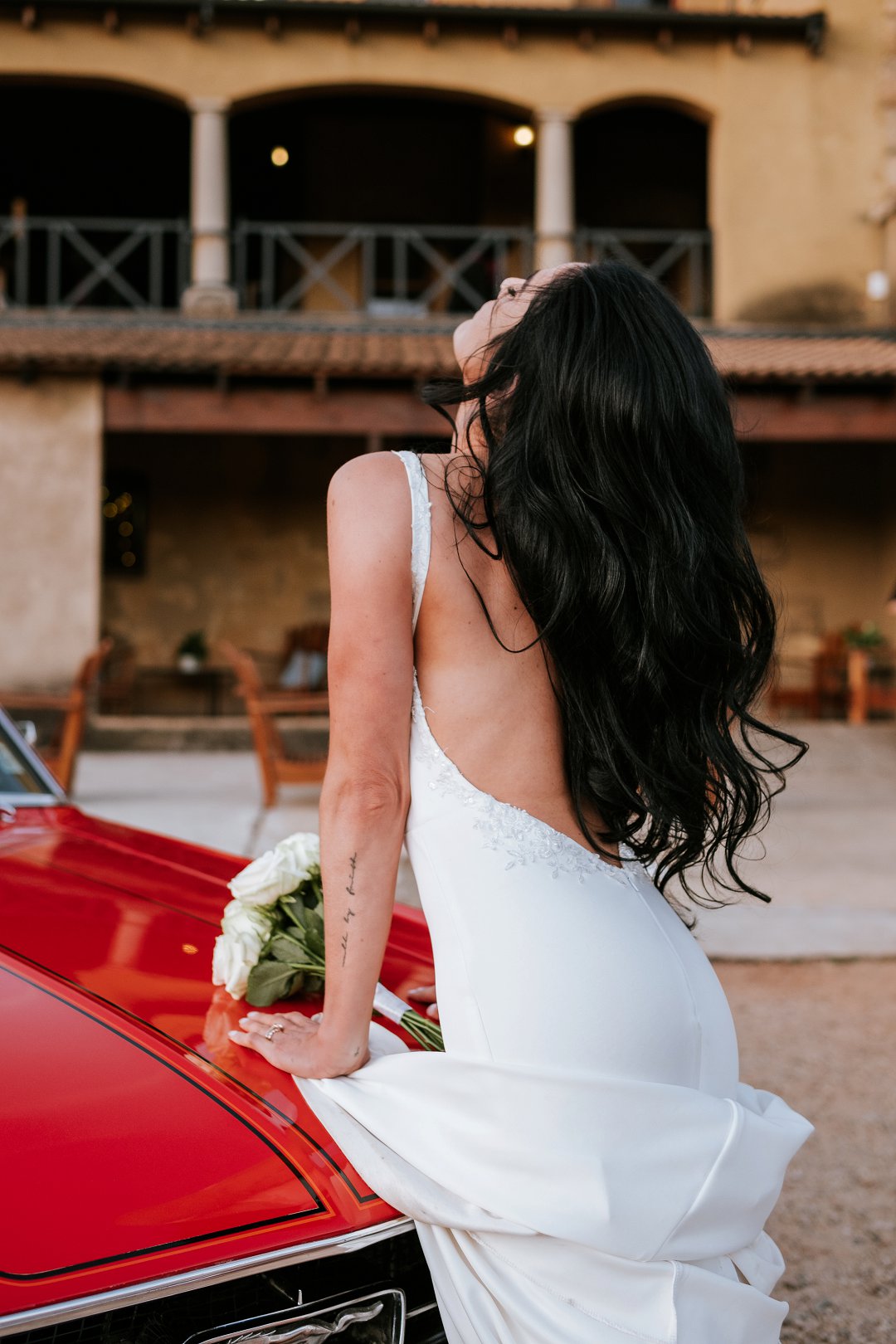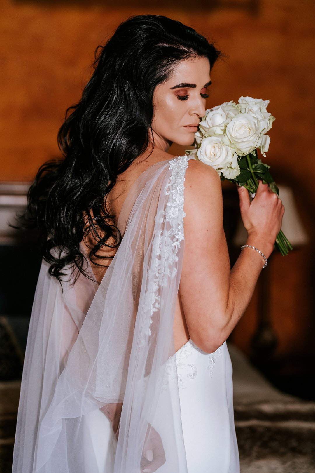 Elaine het beeldskoon gelyk in haar trourok. Ons is veral gaande oor die simplistiese styl van haar trourok en die lae oop rug. Dit pas só mooi by haar en die wit roos handruiker komplimenteer haar voorkoms. Ampie het baie dapper gelyk in ʼn volledige swart uitrusting.
