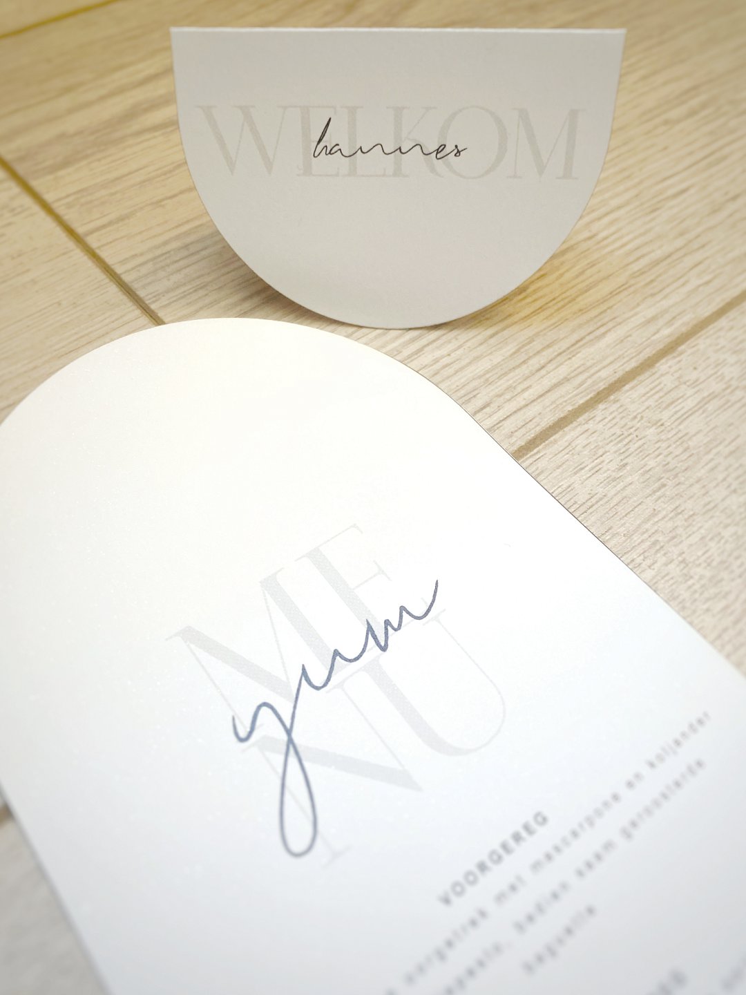 Die trou uitnodiging is een van die eerste indrukke wat jou gaste van jou troue sal kry. Wanneer gaste die venue binnekom, is die eerste dinge waarna hulle soek die sitplek kaartjie, asook die naamkaartjies op die tafels. Wanneer jou gaste by hul sitplek sit, is almal gewoonlik nuuskierig om te weet wat hulle gaan eet. Dus sal die spyskaart op die tafel ook deel wees van jou gaste se eerste indruk van die onthaal.
