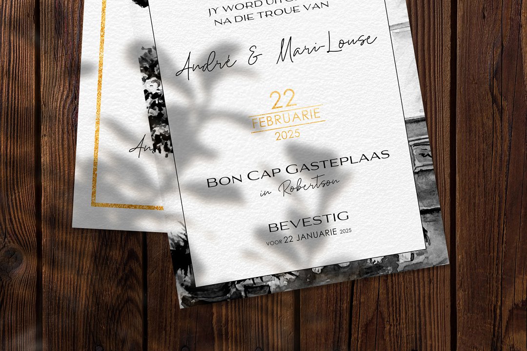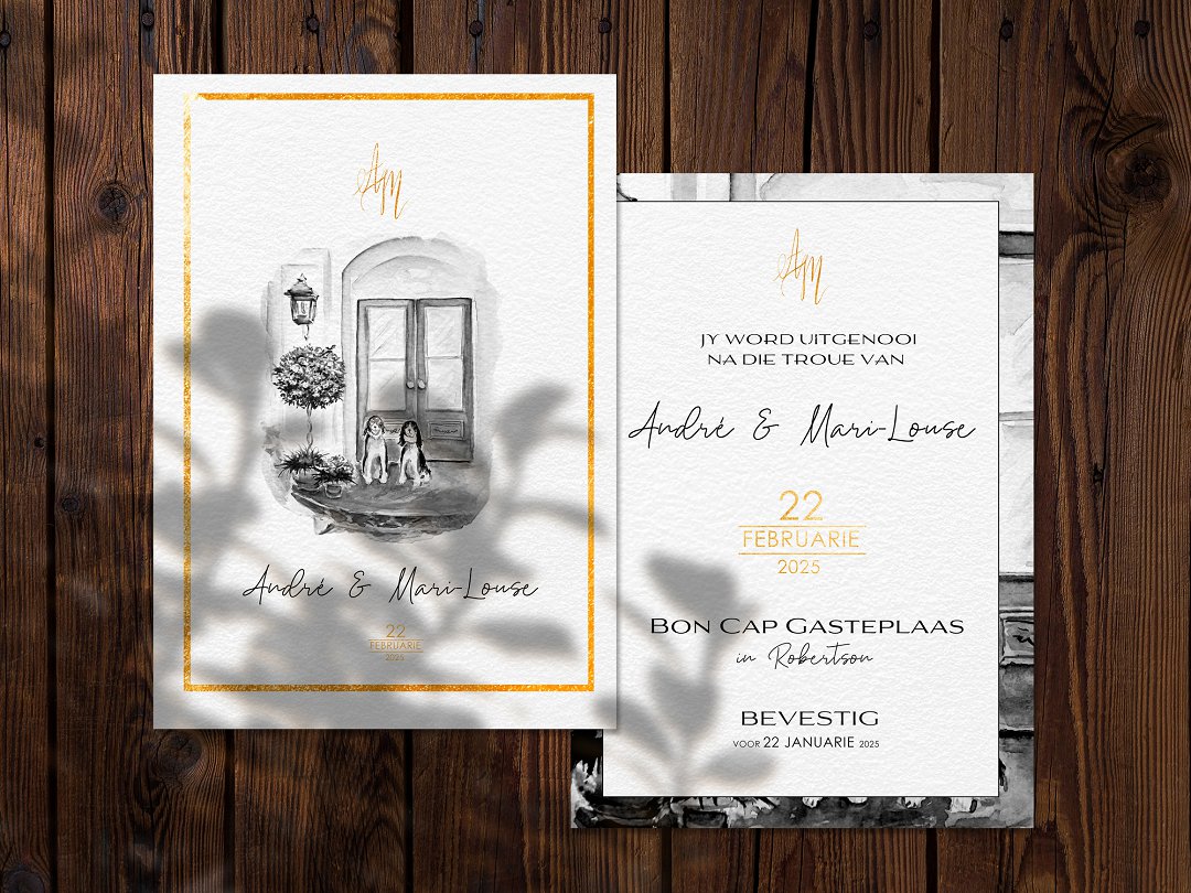 Jy kan kies en keur tussen honderde verskillende trou uitnodigings, spyskaarte, naam kaartjies en vele ander items. Indien jy opsoek is na skryfbehoefte ontwerpers wat Mooi Troues aanbeveel, klik hier om ons Trougids te besoek.