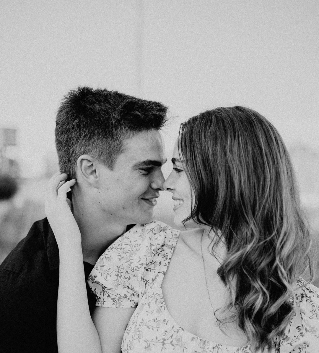 Tracey se blom patroon bloes en Logan ʼn swart knopies hemp wat ʼn mooi kontras teenoor die agtergrond. Mooi uitrustings maak altyd ʼn fotosessie ekstra mooi lyk.