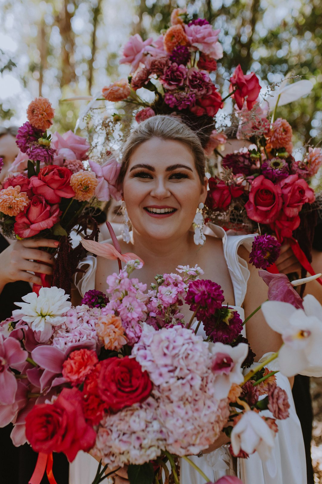 Hulle seremonie was tussen die bloekombos laning wat die perfekte ligging was vir hul seremonie. Omring deur die beboste natuurskoon met die helder kleurige blomme boog wat die perfekte aansig maak vir die paartjie se seremonie.