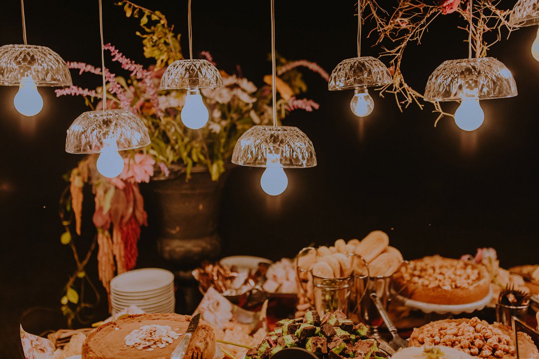Die gaste was in ekstase oor die fantastiese kos. “Dit is iets om oor huis toe te skryf” het van die gaste gesê. Voorgereg was ʼn harvest table met vars brode, roosterkoek met botter en konfyt, kerrievis, gebraaide snoek en lekker sweet & sticky ribs. Al ons gunstelinge. Hofgereg is basseer op oudtydse kookkos met ʼn moderne twist. Skaapskenkels, gebraaide beesfillet en hoender stukke in ʼn kerrie sous. Bykosse sluit natuurlik in: pampoenkoekies, geroosterde groente, Griekse slaai en rys. Laaste, maar nie die minste nie, nagereg tafel gevul met die lekkerste koeke en soetgoed. Die nagereg tafel was ook ʼn fokuspunt by die onthaal gedeelte met mooi blomme tafeldoek en versameling liggies wat bo-oor die tafel hang in verskillende hoogtes.