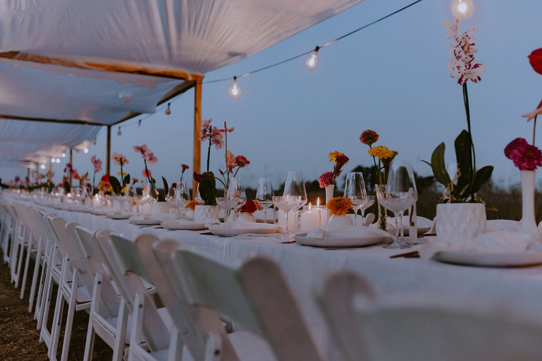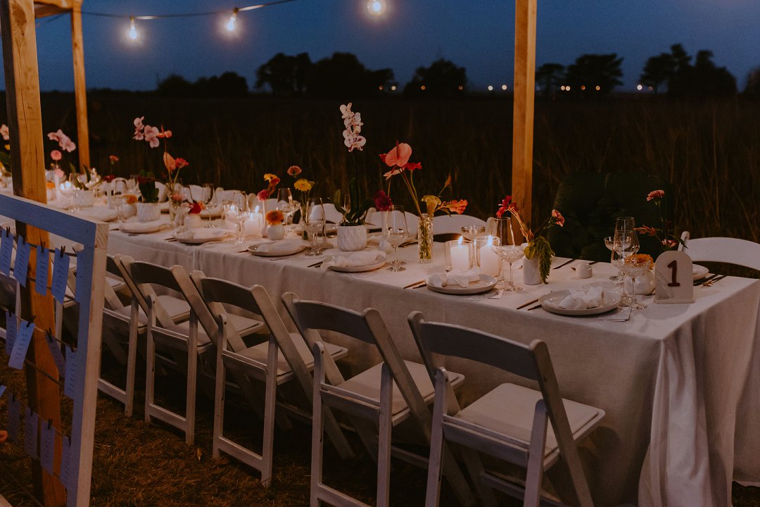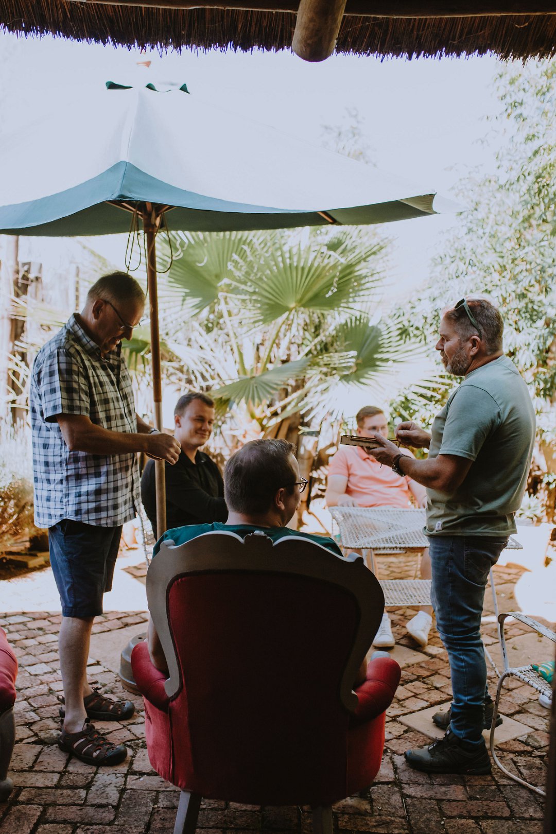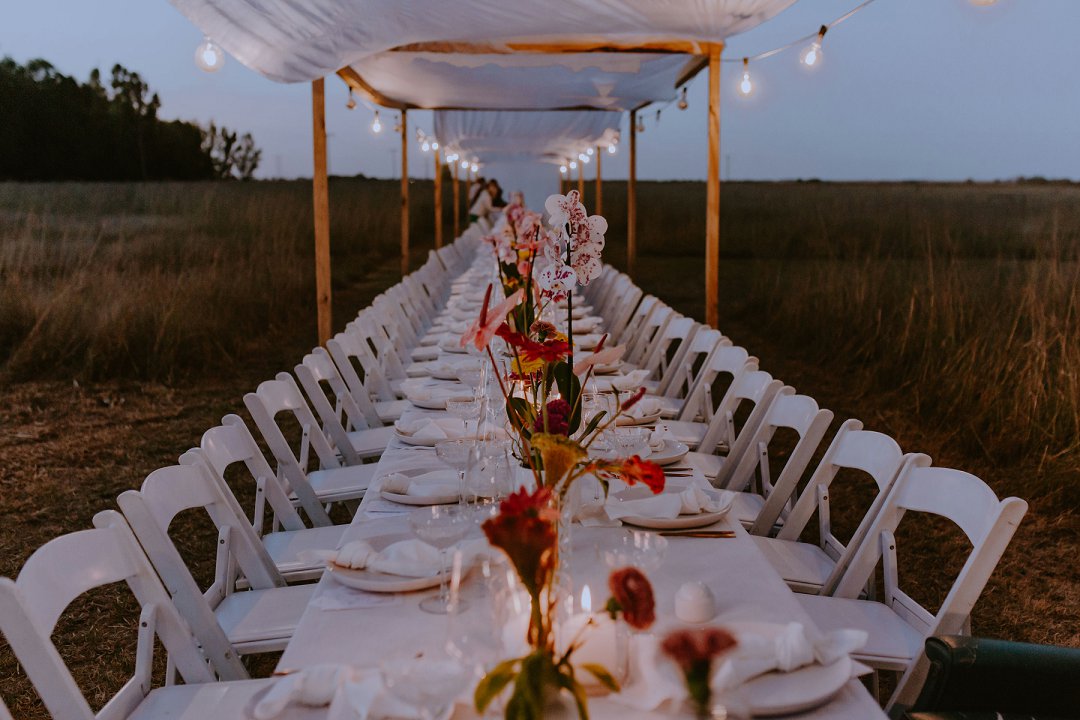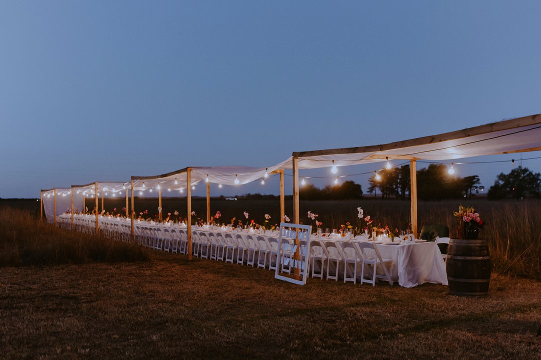 Die konstruksie waaronder die lang tafel gestaan het, is deur my pa en my swaer aanmekaar gesit. Maande voor die troue het my pa die grasperk om die windpomp begin voorberei en die kombuis vanwaar Feast and Flowers kos gemaak het, was ’n ou stoor wat omskep is in ’n kombuis.