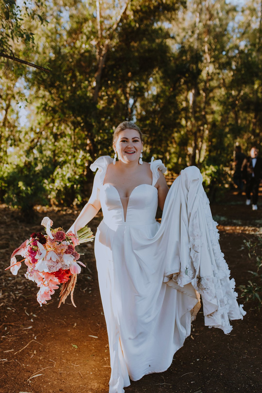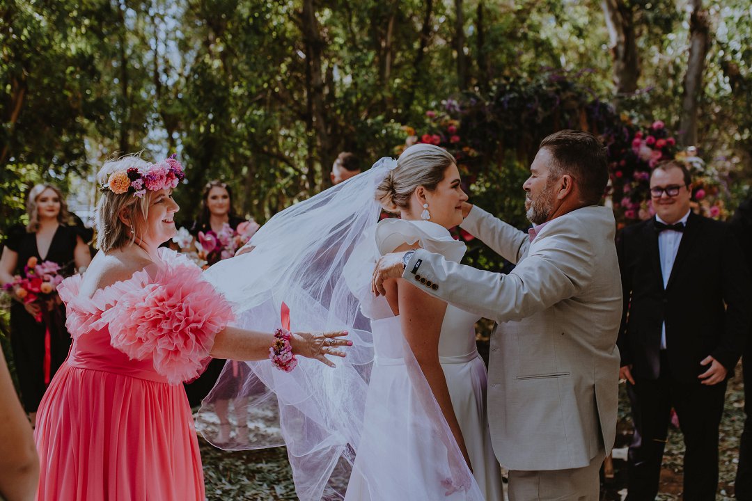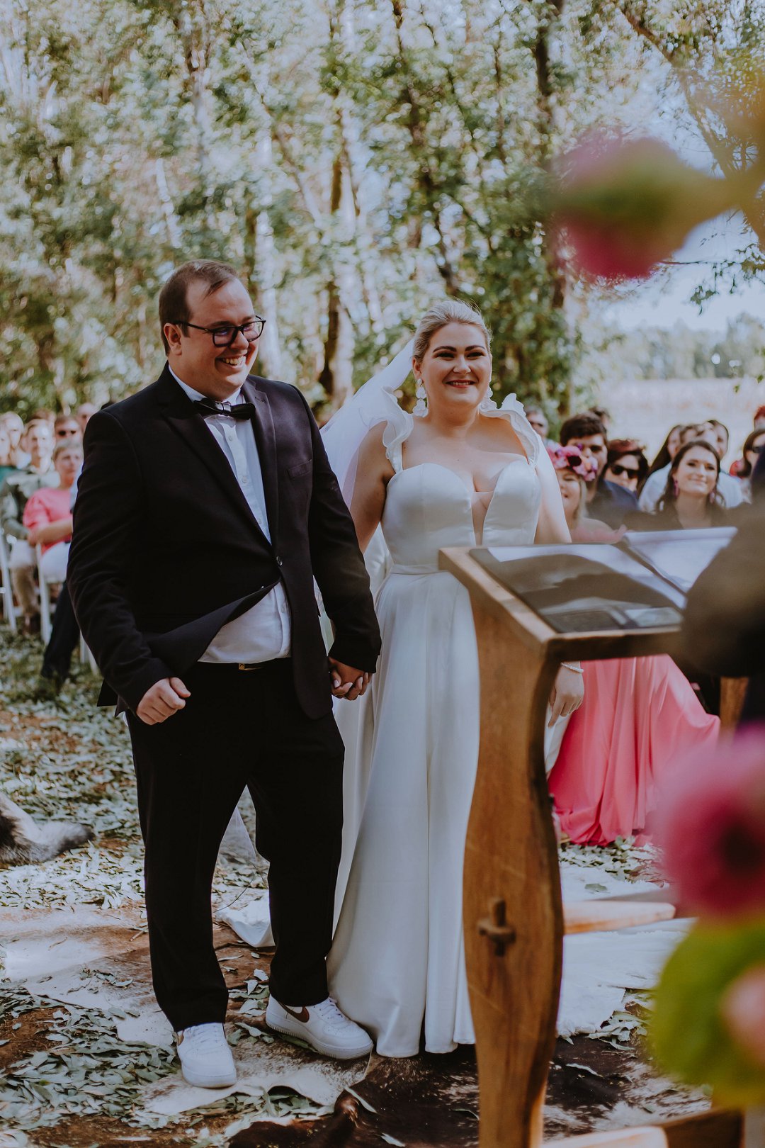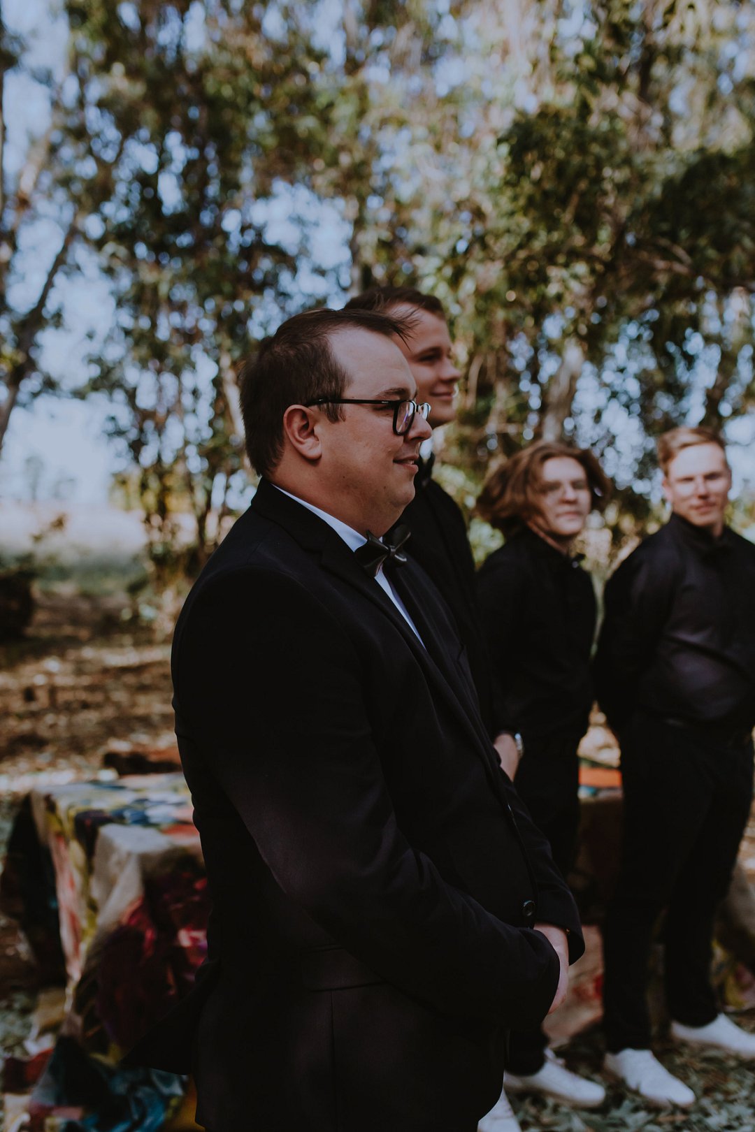 Hulle seremonie was tussen die bloekombos laning wat die perfekte ligging was vir hul seremonie. Omring deur die beboste natuurskoon met die helder kleurige blomme boog wat die perfekte aansig maak vir die paartjie se seremonie.