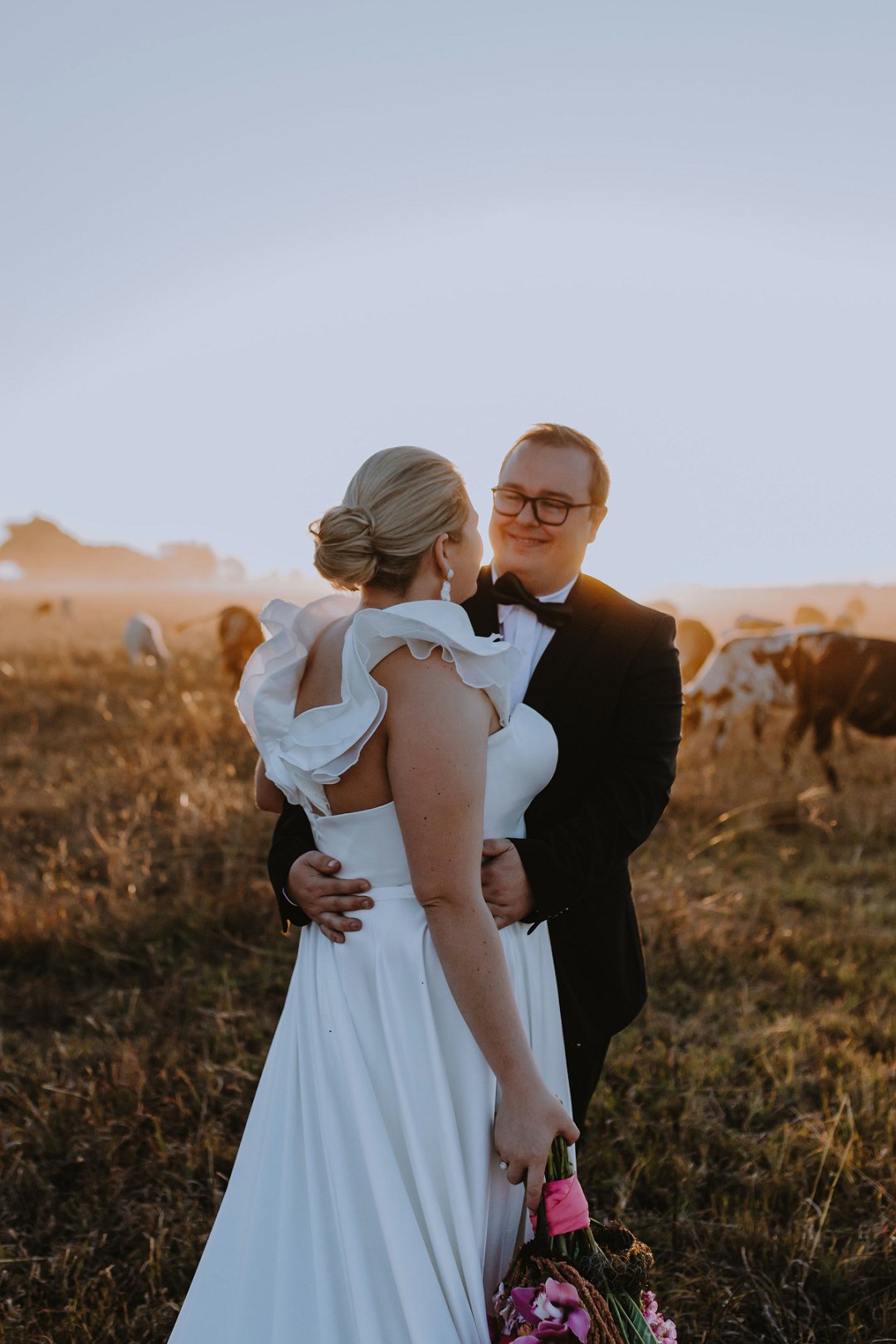 Ons is totaal en al verlief op die paartjie se fotosessie. Die sagte goue sonsak lig wat oor die plaas landskappe tussen deur die beeste skyn is verskriklik mooi.