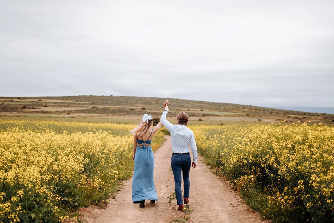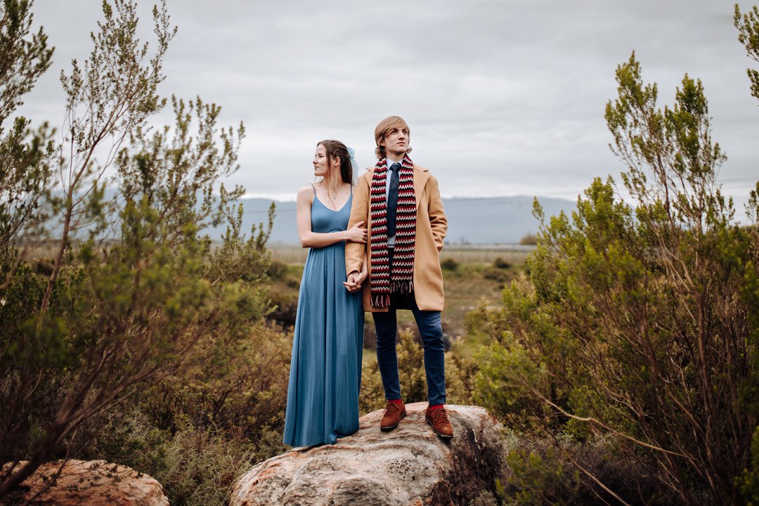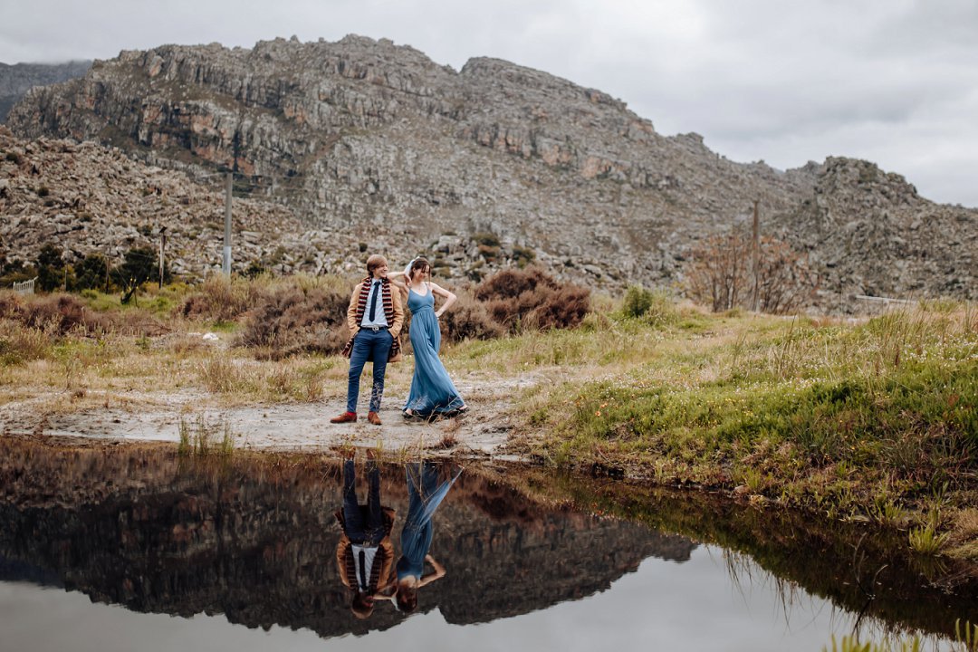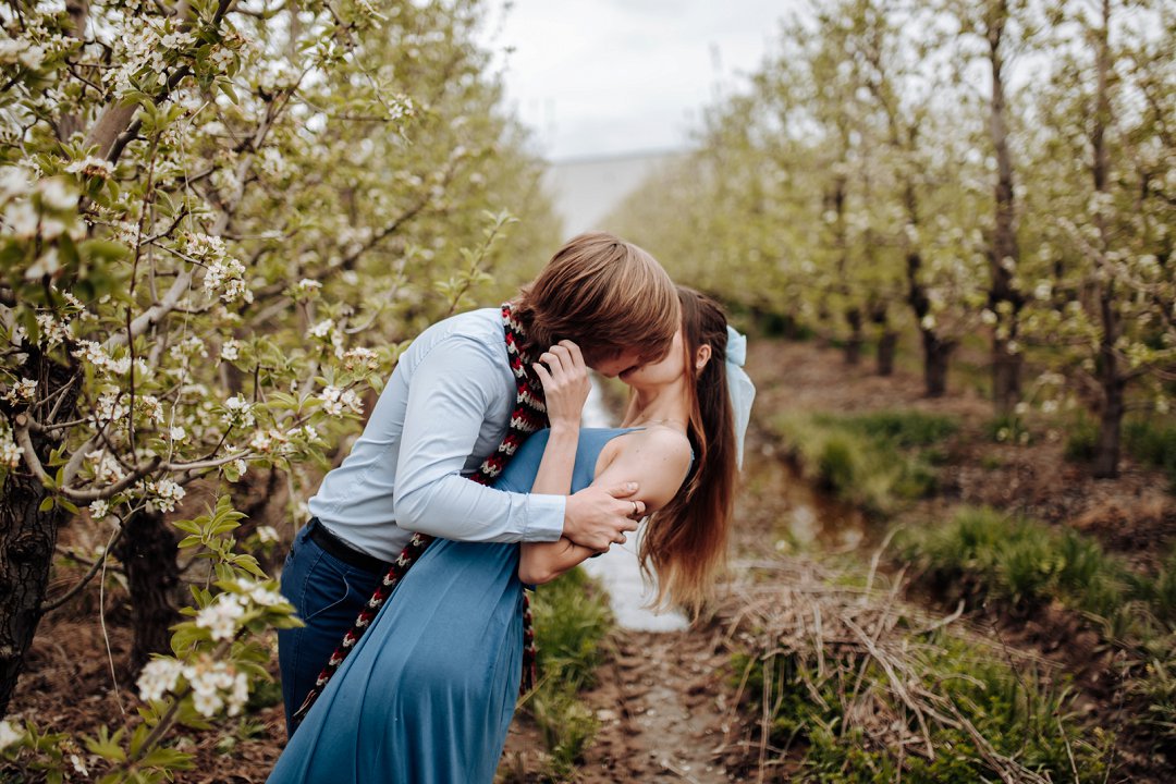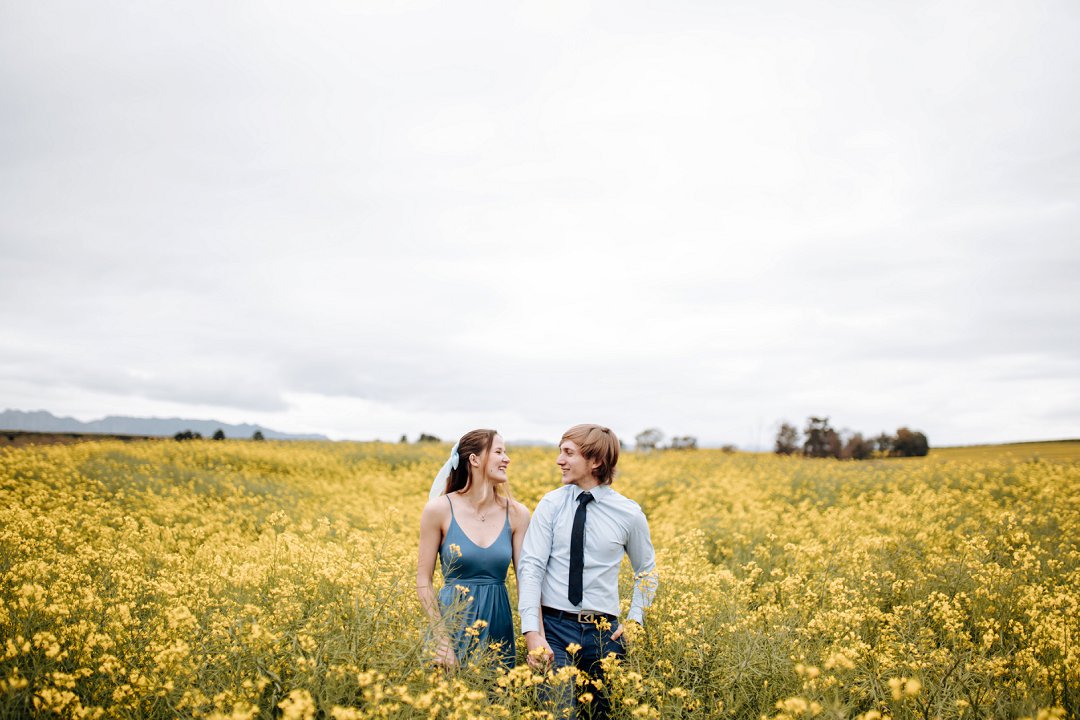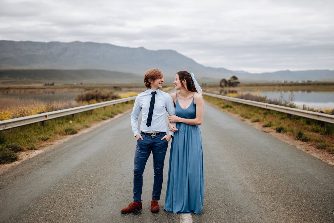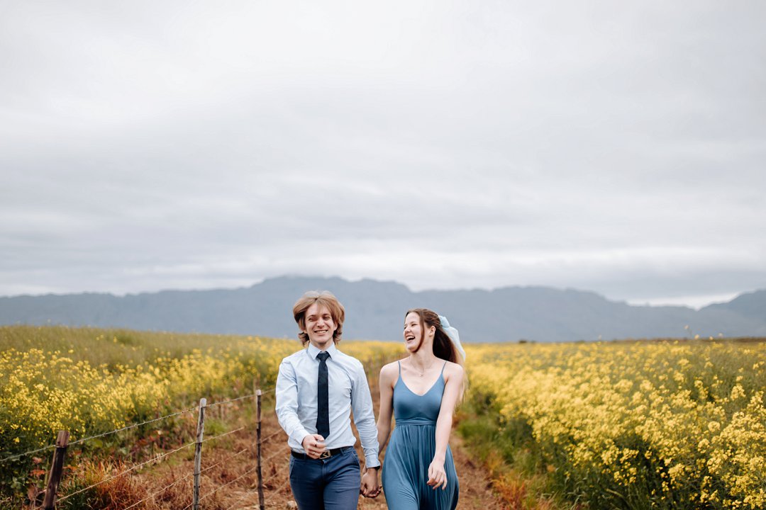 Die bewolkte weer laat die kleure só mooi uitstaan en gee die foto’s ʼn dramatiese en amper kinematiese gevoel. Verskillende landskappe was die agtergrond van die paartjie se fotosessie. Van die geel bloeisels, ʼn dam tot die wit bloeisels van die appel bome.