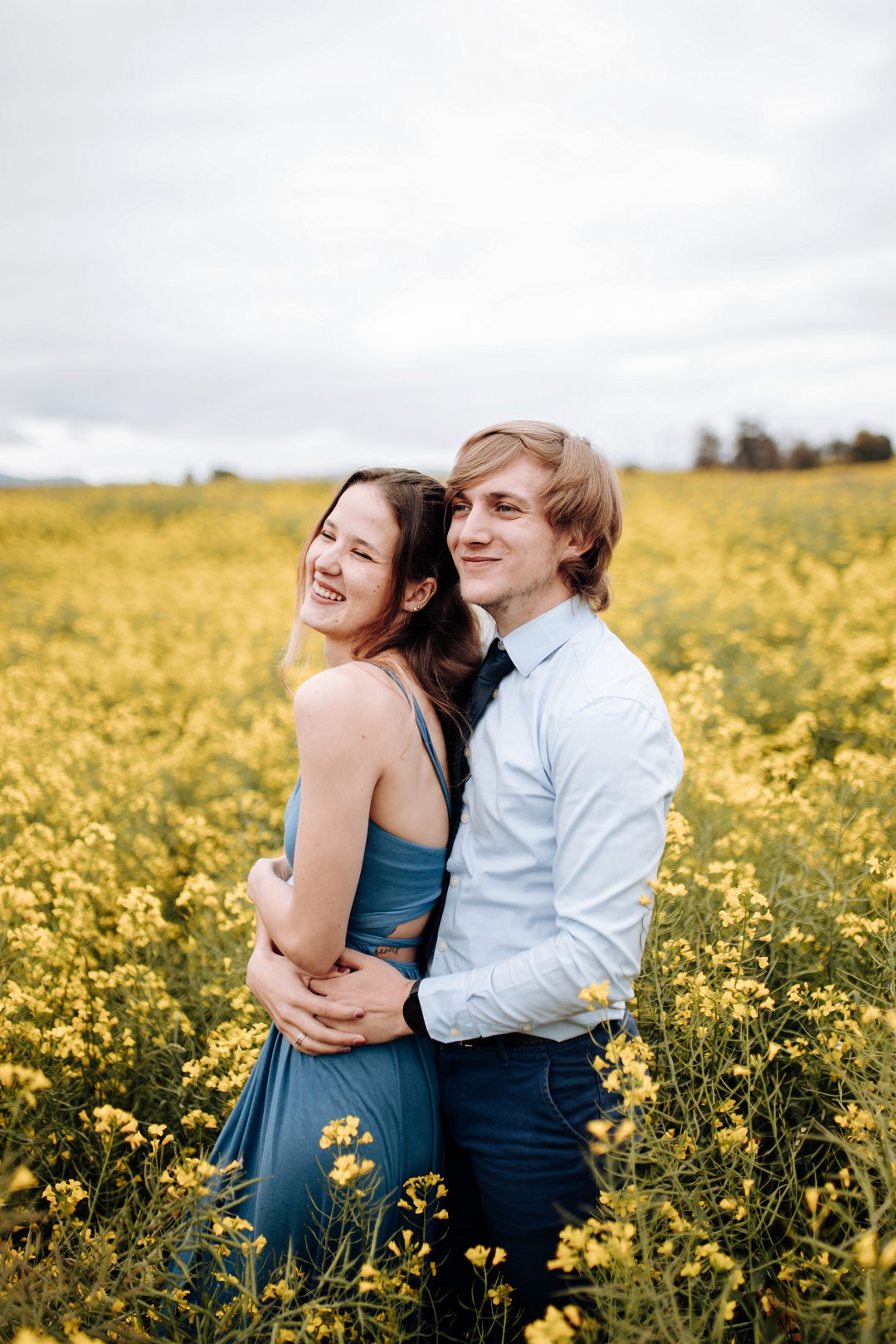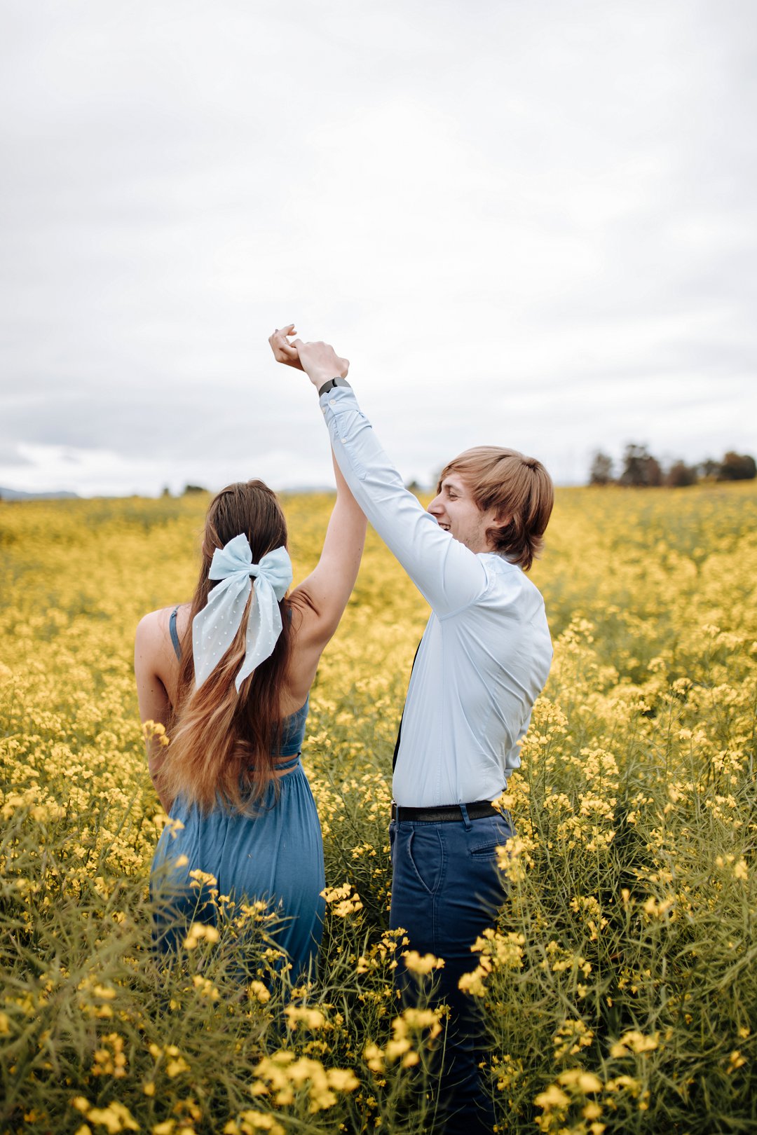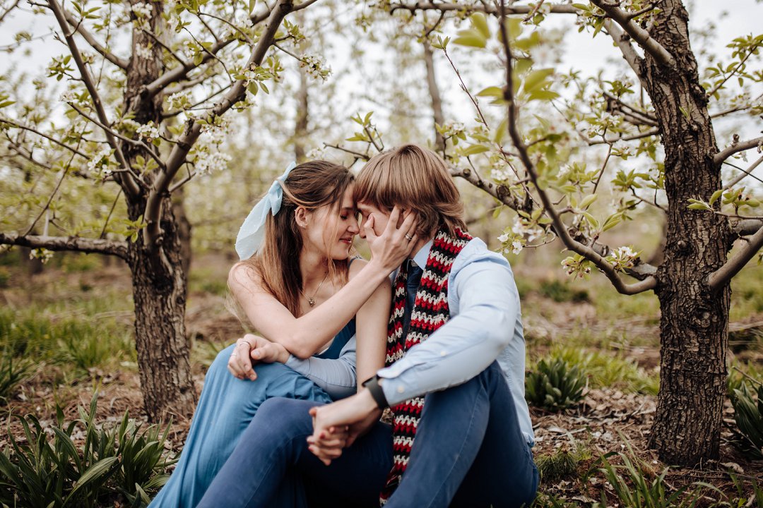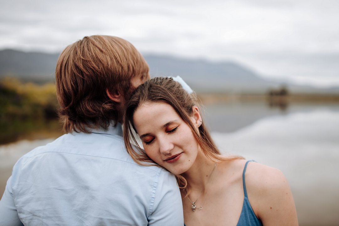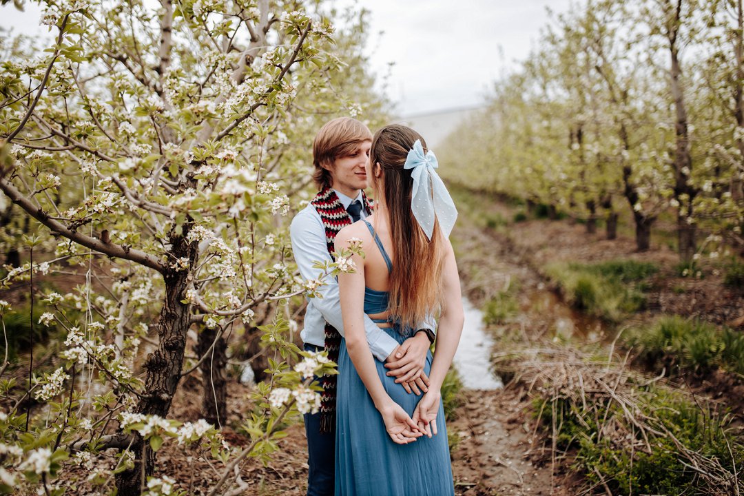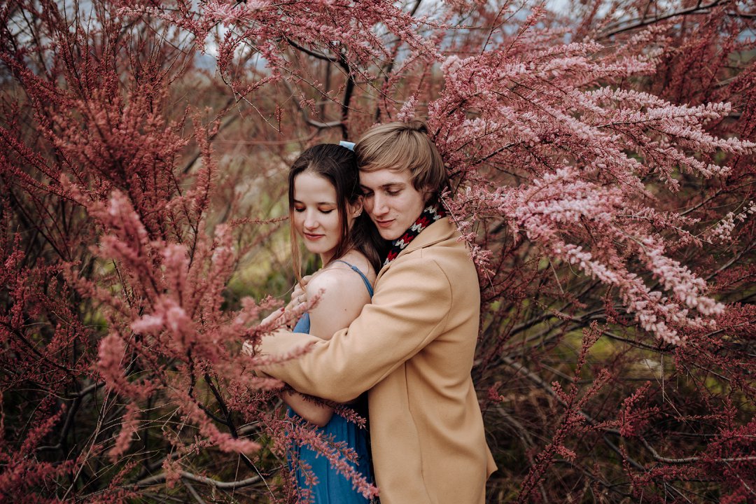 Die bewolkte weer laat die kleure só mooi uitstaan en gee die foto’s ʼn dramatiese en amper kinematiese gevoel. Verskillende landskappe was die agtergrond van die paartjie se fotosessie. Van die geel bloeisels, ʼn dam tot die wit bloeisels van die appel bome.