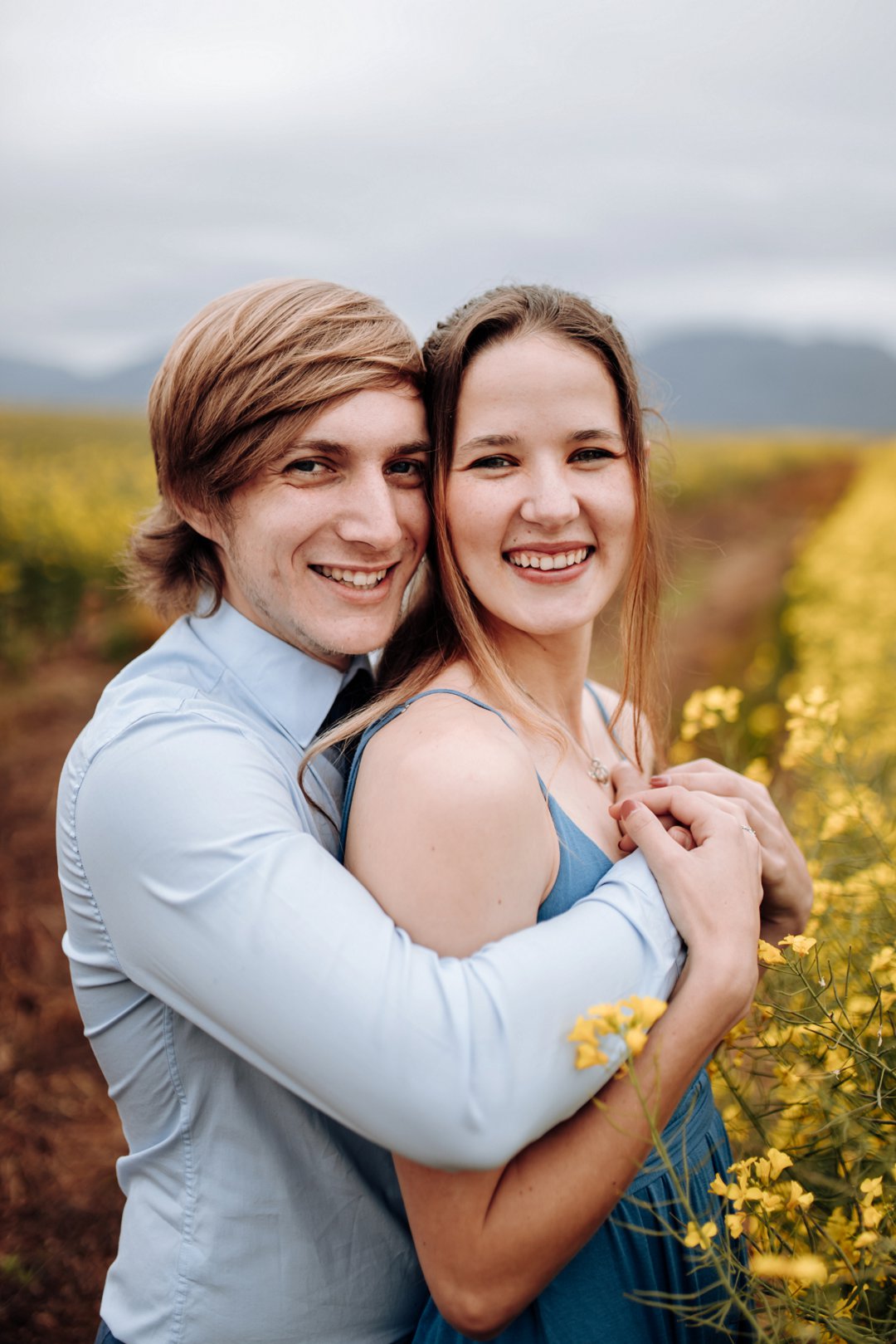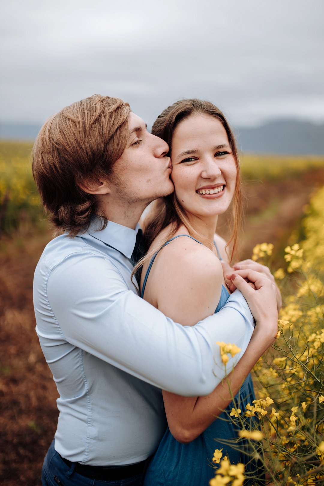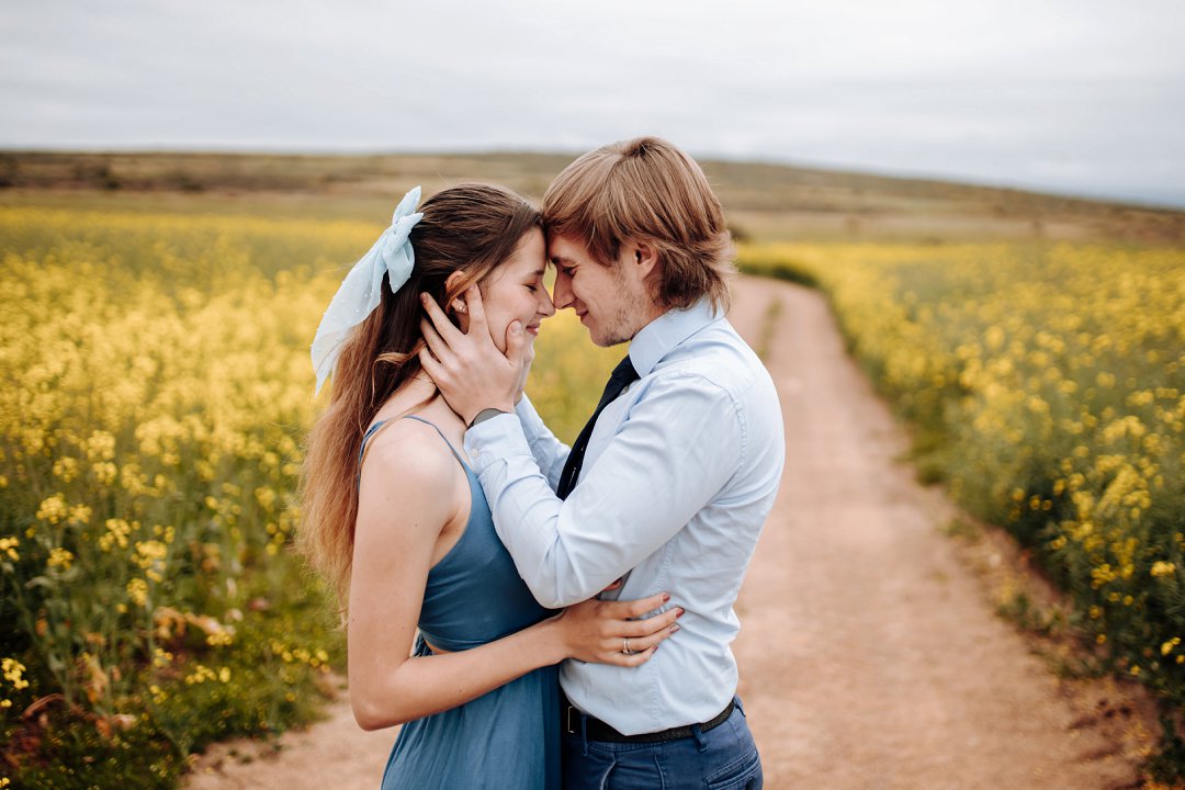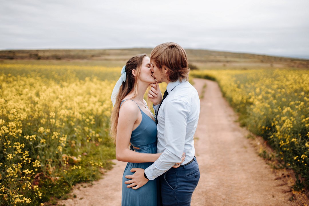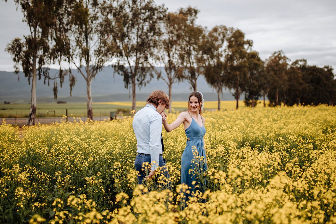 Simon en Jeanne se paartjie fotosessie tussen die bloeisels is só mooi. Die natuurskoon is altyd die perfekte agtergrond vir ʼn paartjie fotosessie. Simon en Jeanne het hulself mooi aangetrek in ʼn meer formele styl en skakerings van blou wat pragtig uitgestaan het teen die agtergrond.