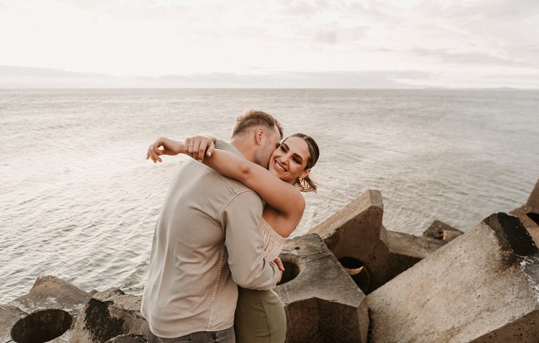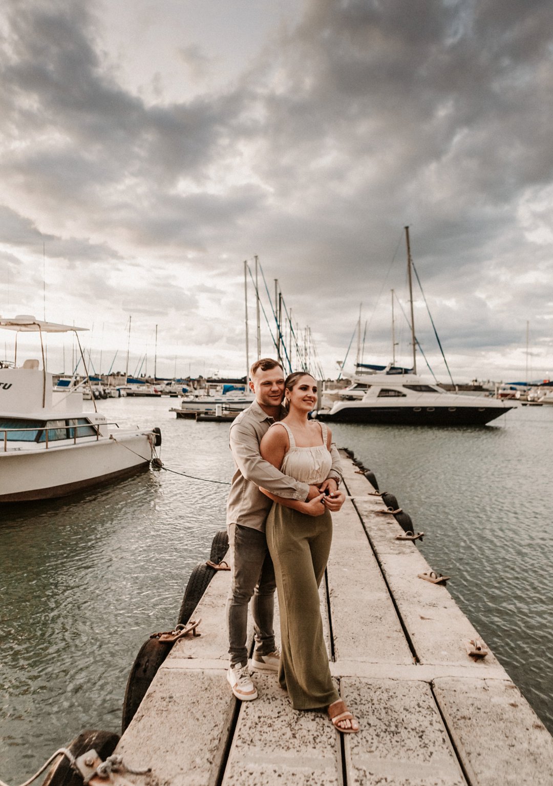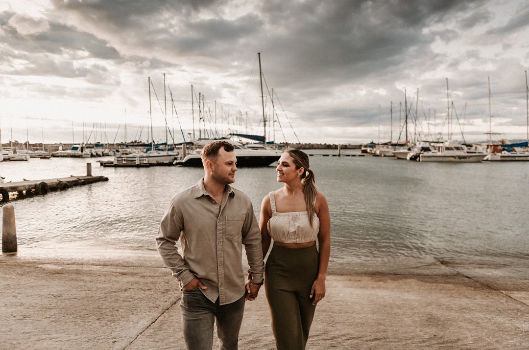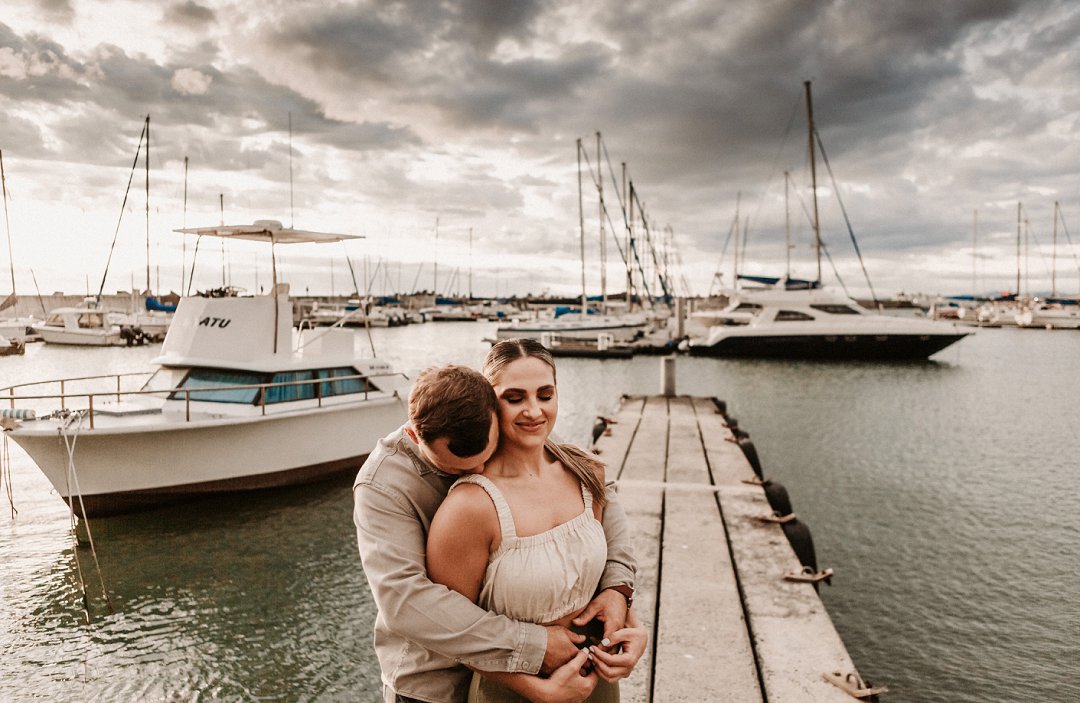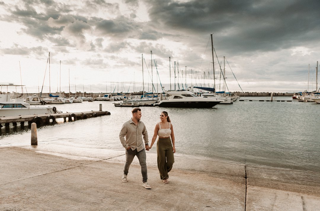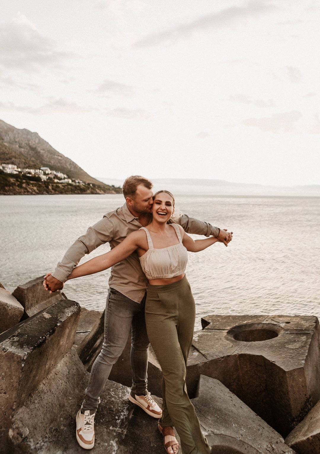 Jul fotosessie se ligging is die ander belangrike punt. Die berg en see uitsigte van die paartjie se fotosessie is besonders mooi. Hulle fotosessie was op die hawe se muur in Gordonsbaai wat die mooiste uitsigte en perfekte agtergrond bied. Die bootjies in die hawe is só mooi en skep ʼn perfekte strand voorkoms. Elke element van die paartjie se fotosessie is perfek en die sagte sonsak lig skep ʼn romantiese warm voorkoms aan die foto’s.