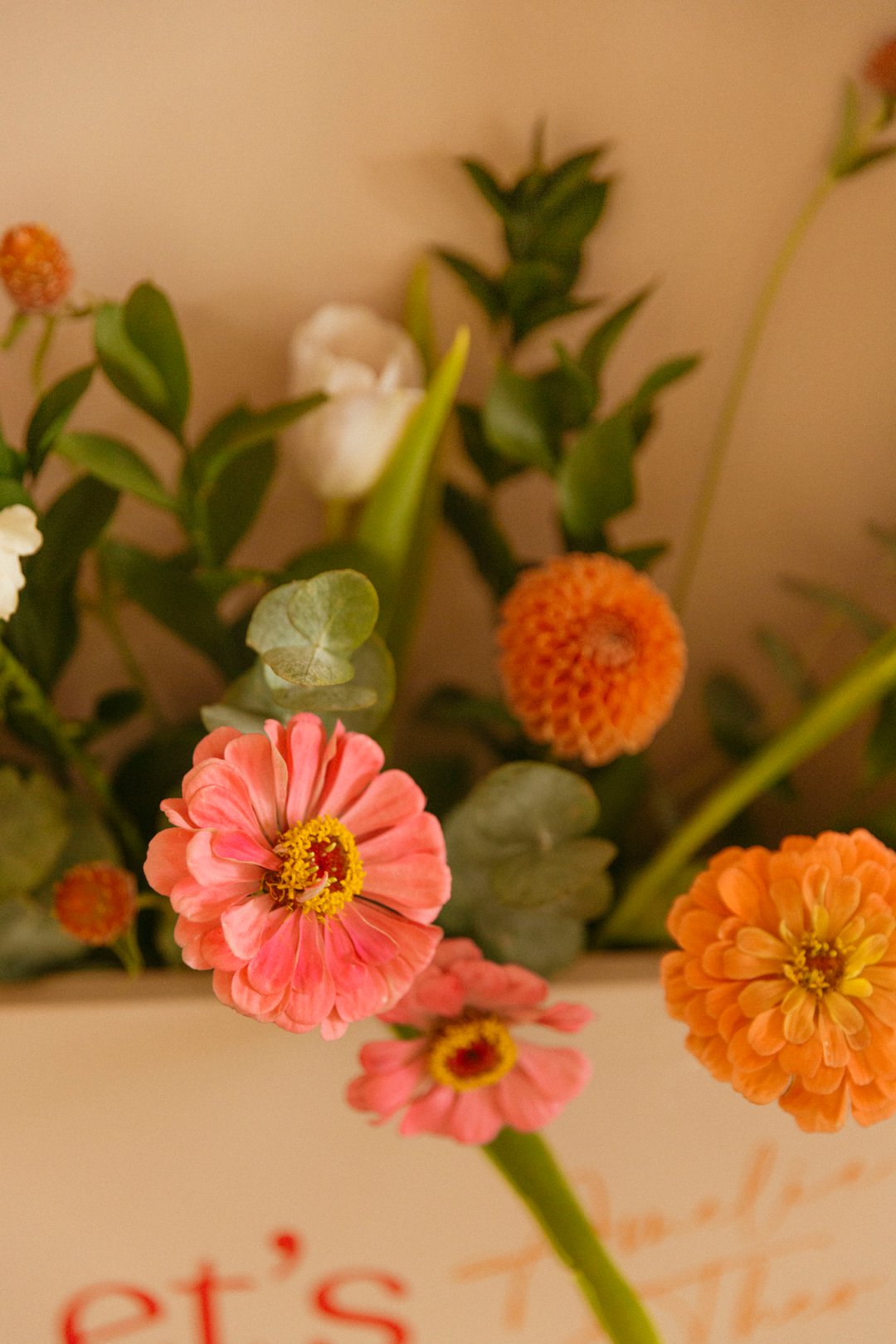 Dekor moet in die dekor stilis se opinie altyd kontrasterende elemente hê om dit interessant te maak en warmte te verleen aan ʼn tema, sodat dit nie net generies lyk nie. Meeste van die blomme wat gebruik was word plaaslik op Out of Nature gegroei, asook die granate .