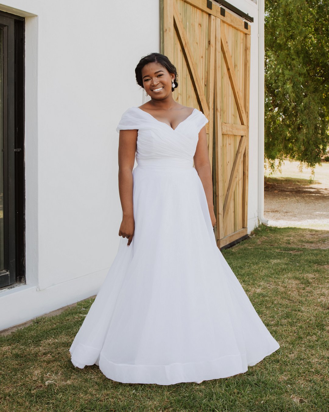 Aanvanklik het ek 100% geweet dat ek nie ʼn bandelose trourok wou hê nie. Dit is ʼn silhoeët wat ek vermy wanneer ek klere koop. Elmarie by Le Petit Wedding Boutique het my toe aangemoedig om ʼn “oopkop” te hê. Ek is só bly ek het na haar geluister! Toe ek my trourok die eerste keer aanpas het ek onmiddellik geweet dat dit my trourok is.