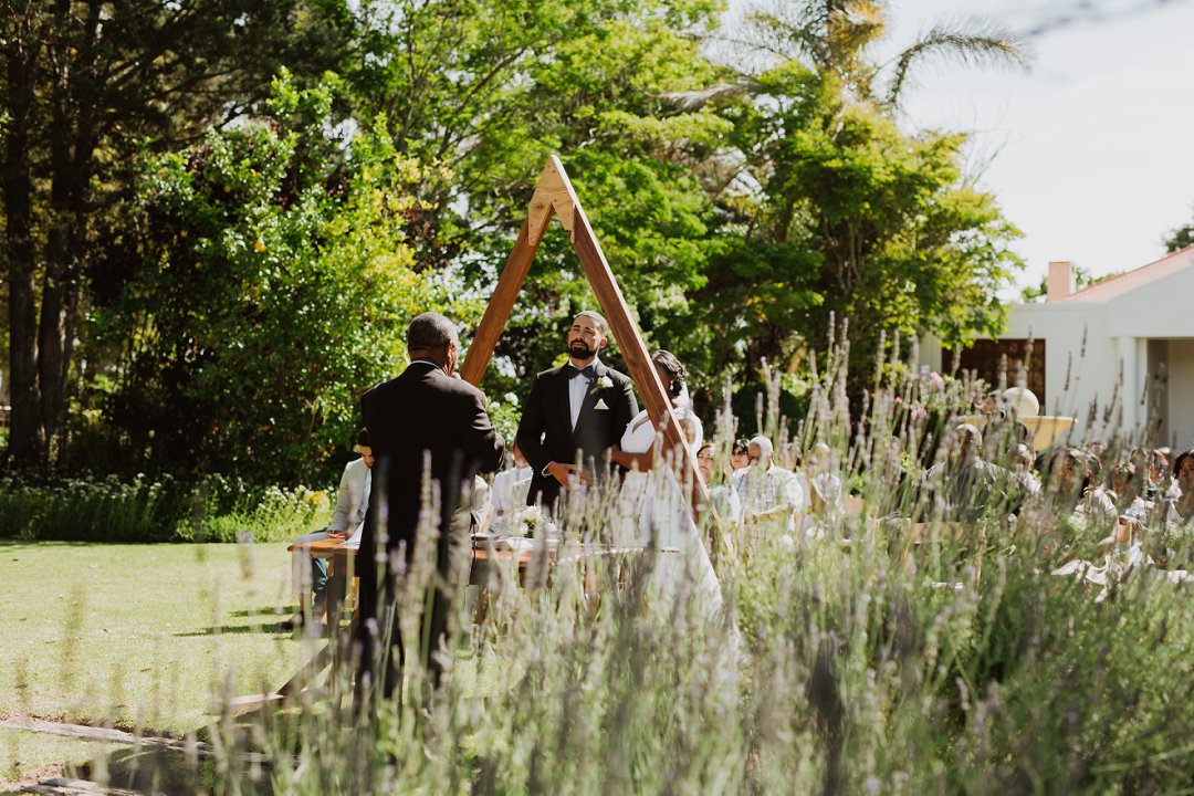 Hulle het die mooiste buitelug seremonie gehad in die versorgde tuine van Wederom Guest Farm & Wedding Venue. Trou gaste kon die prentjiemooi uitsigte en natuurskoon om hul geniet gedurende die seremonie.
