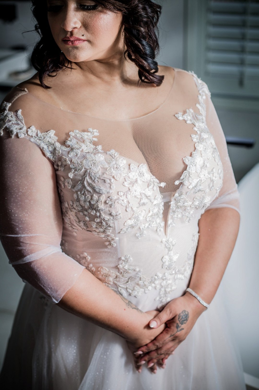 Chery het beeldskoon gelyk op haar troue. Haar trourok pas haar perfek en ons is mal oor die skouer detail en die effense mou.