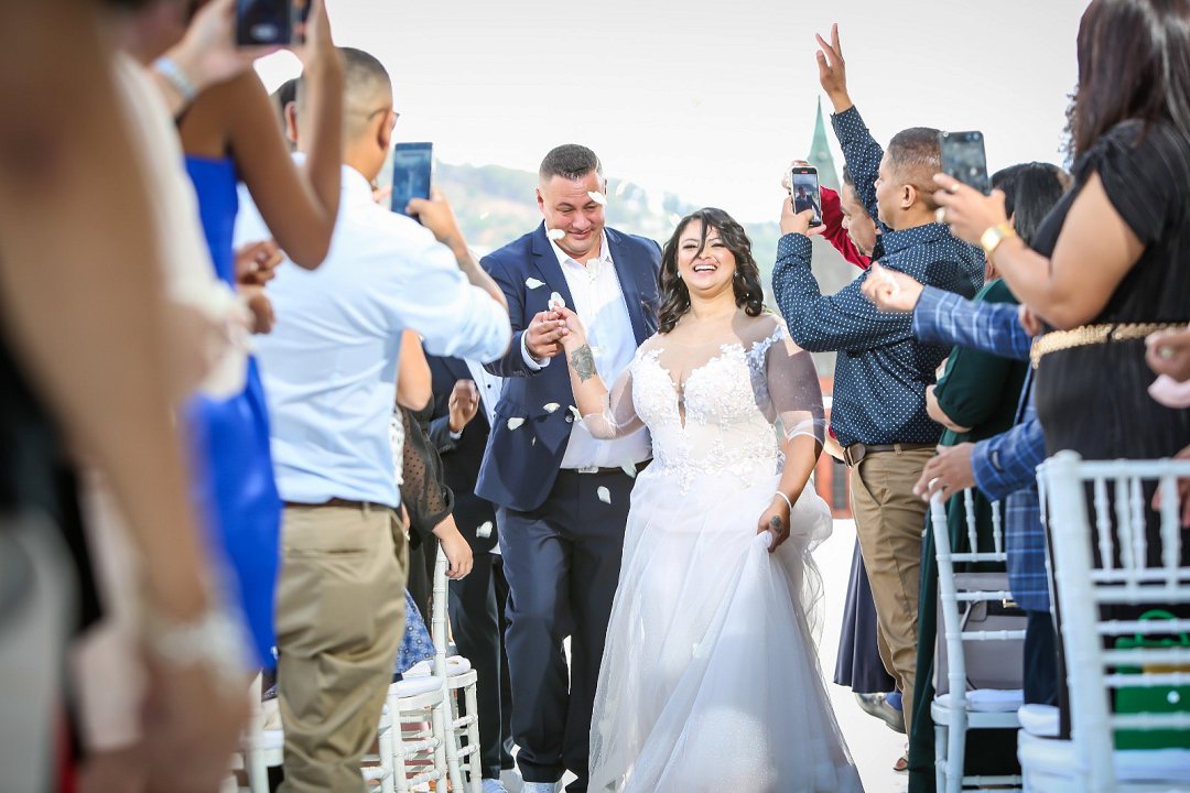 Ons gunsteling herinneringe sal ons sê was die seremonie. Die seremonie was op die balkon van die trou venue gehou met die mooiste uitsigte van stadsgeboue en berge. Wat vir ons uitgestaan het was die Lof en aanbidding. Die boodskap was mooi en ons trou geloftes was uniek en spesiaal.