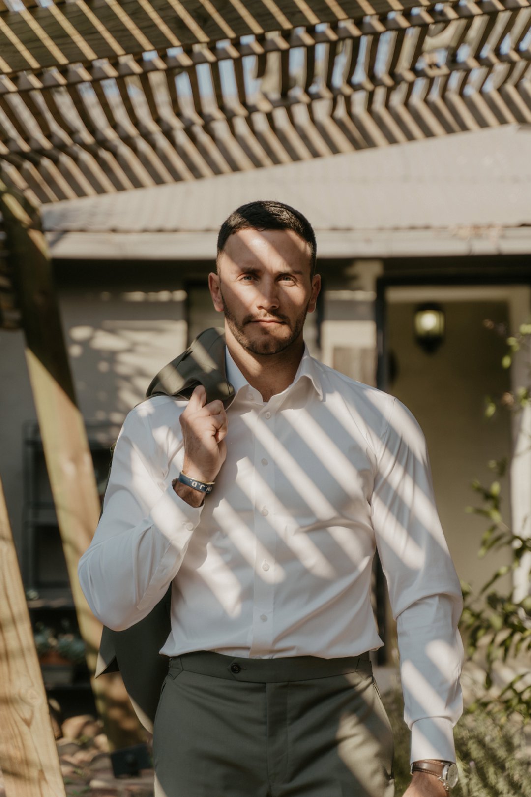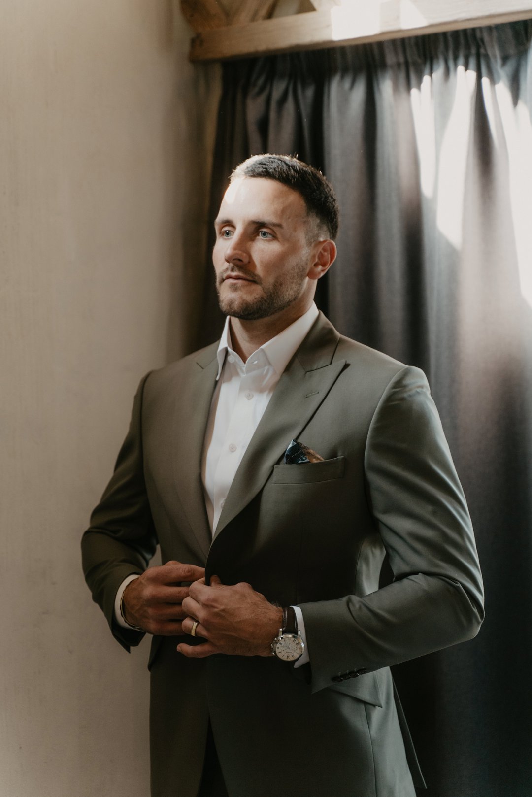 Die bruidegoms model pak komplimenteer die kleure van die fotosessie. Die juwele vorm ook deel van die tema en is baie uniek.