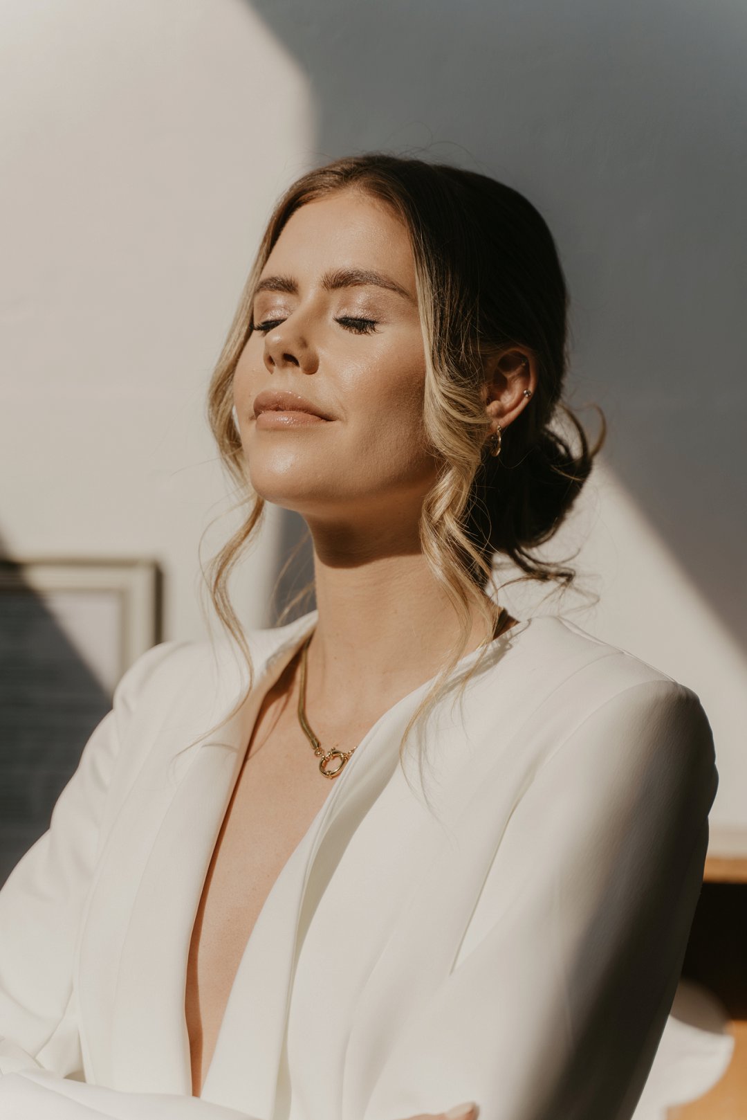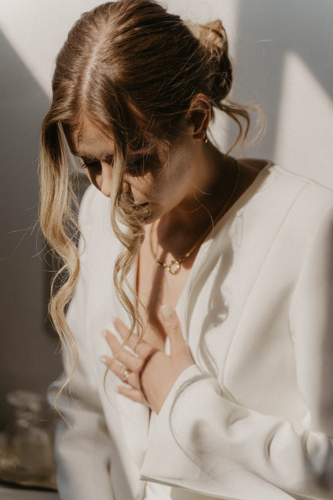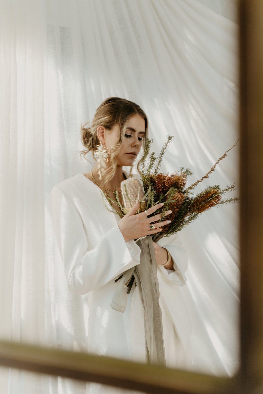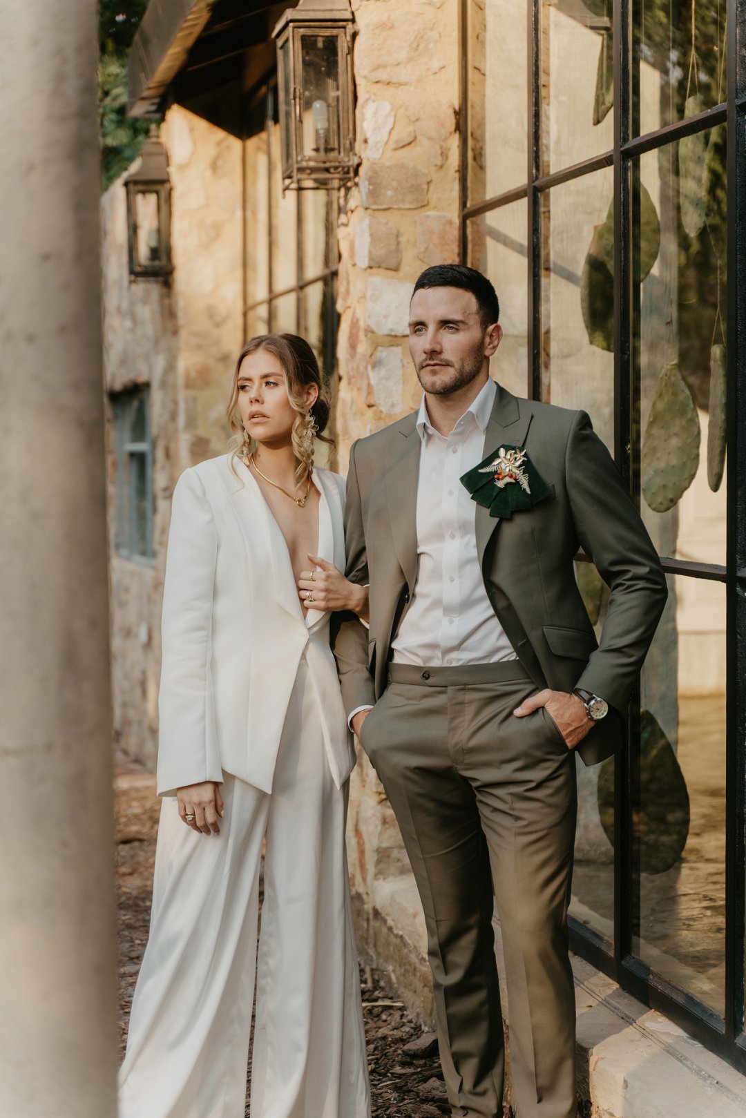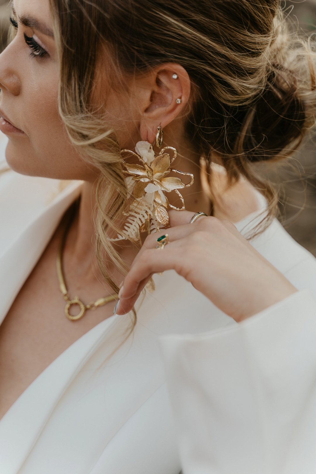 Ons is mal oor die model se trou-pakkie wat sy aangehad het, ʼn broek in plaas van ʼn trourok. Dit het ʼn elegante voorkoms, maar is ook iets heeltemal buiten gewoon. Dit is definitief ʼn kontemporêre stempel tot die stylvolle aarde trou inspirasie fotosessie.