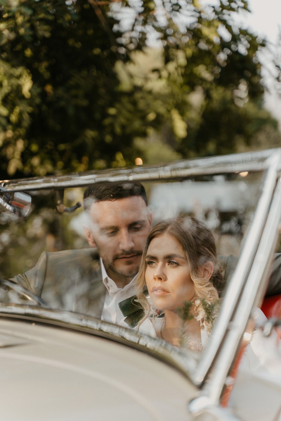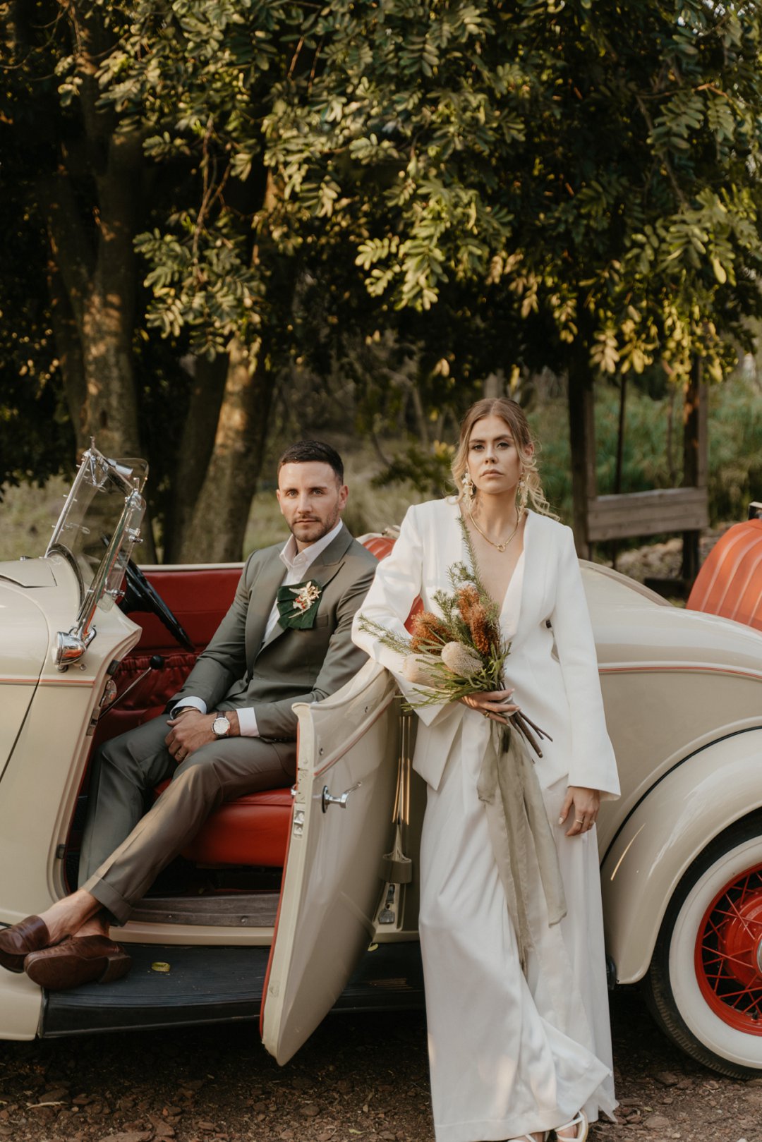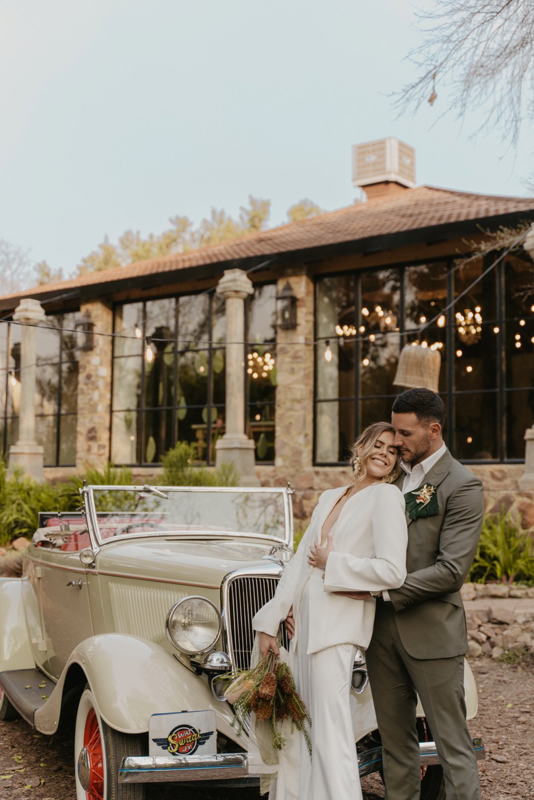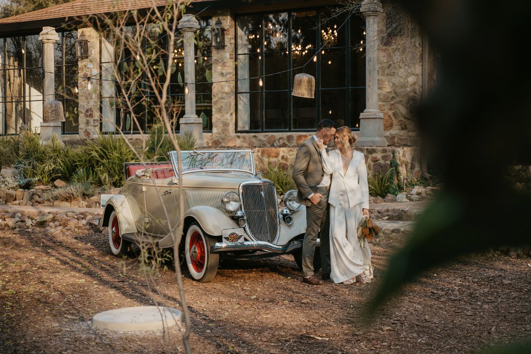 Om ʼn tikseltjie ou-wêreld in te bring was daar ook ʼn baie mooi outydse motor deel van die fotosessie. Die rou baksteen mure en weerkaatsing teen die trou venue se ruite skep die perfekte agtergrond vir hierdie gestileerde fotosessie. Hierdie fotosessie was moontlik gemaak deur ʼn fantastiese span trou diensverskaffers in die Gauteng omgewing.