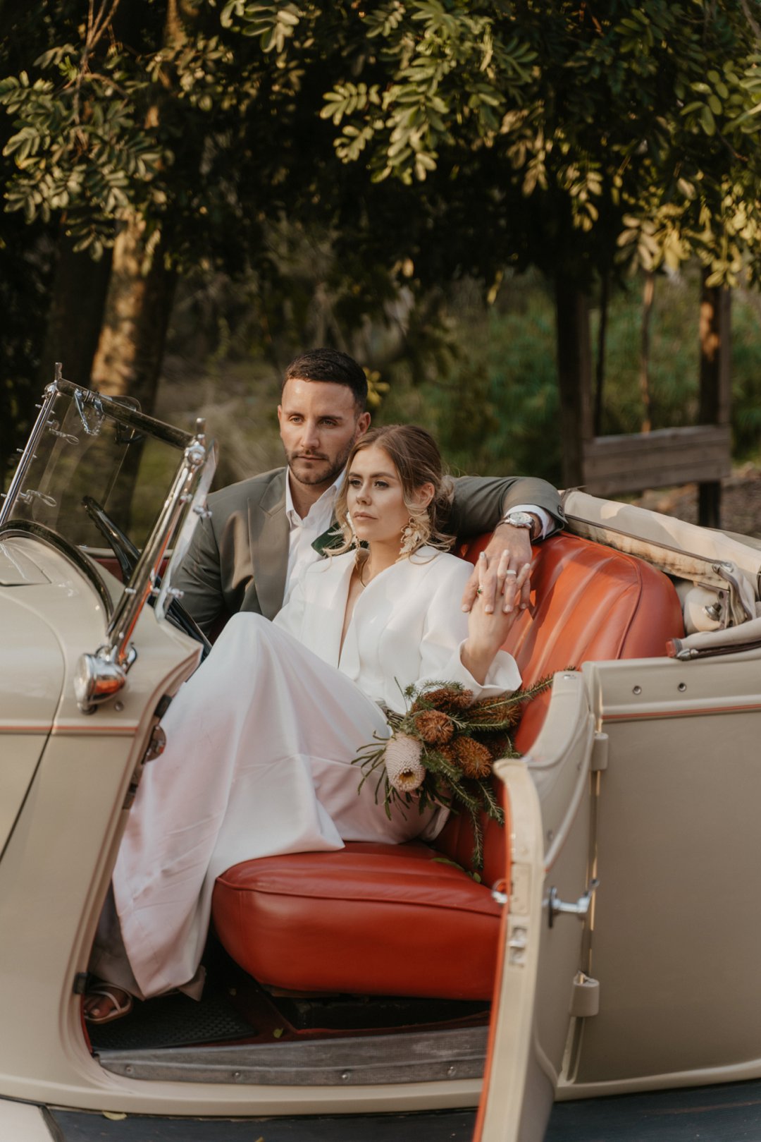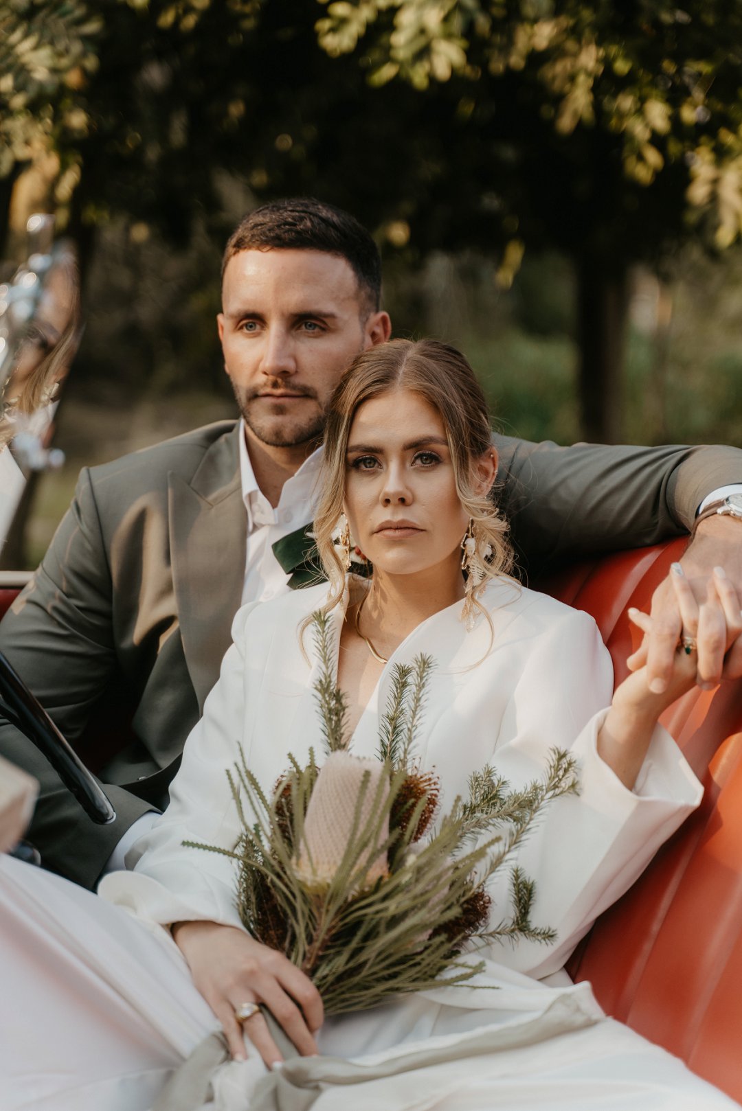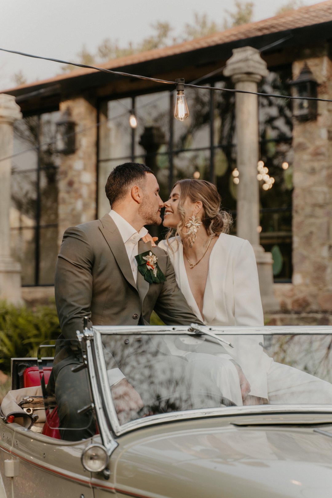 Om ʼn tikseltjie ou-wêreld in te bring was daar ook ʼn baie mooi outydse motor deel van die fotosessie. Die rou baksteen mure en weerkaatsing teen die trou venue se ruite skep die perfekte agtergrond vir hierdie gestileerde fotosessie. Hierdie fotosessie was moontlik gemaak deur ʼn fantastiese span trou diensverskaffers in die Gauteng omgewing.