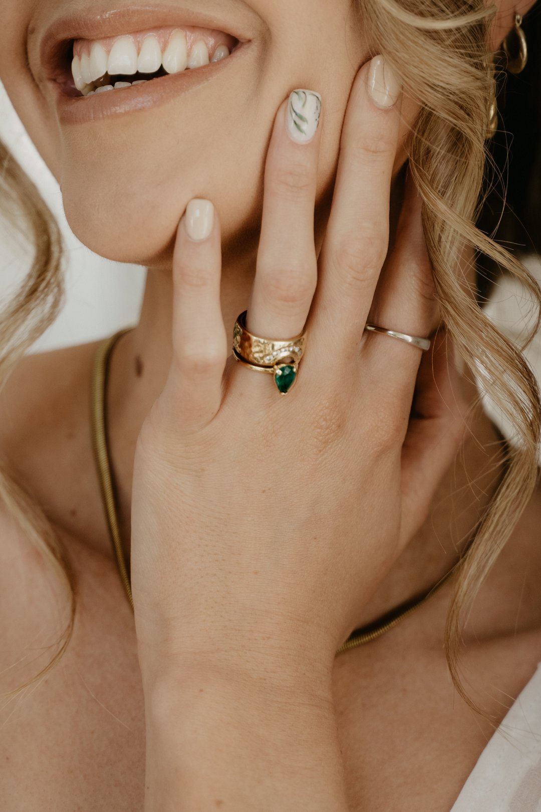 Die kleurskema vir hierdie fotosessie is ʼn oorvloed van groen en aardse kleure wat die aardse skoonheid en rykdom van ons planeet uitbeeld.