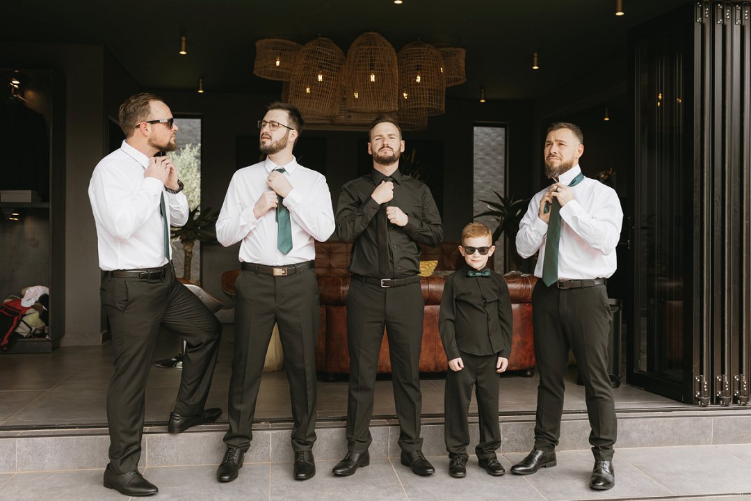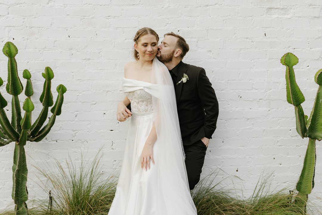Angelique se trourok was ʼn sprokies prag wat haar figuur perfek omhels het. Die fyn detail en afgesnyde skouer het die styl van die dag volmaak aangevul – eenvoudig, maar met ʼn strelende styl volheid. Leroy het in ʼn netjiese swart pak en hemp geskitter, sy voorkoms afgerond met ʼn delikate wit blom boutonnière.