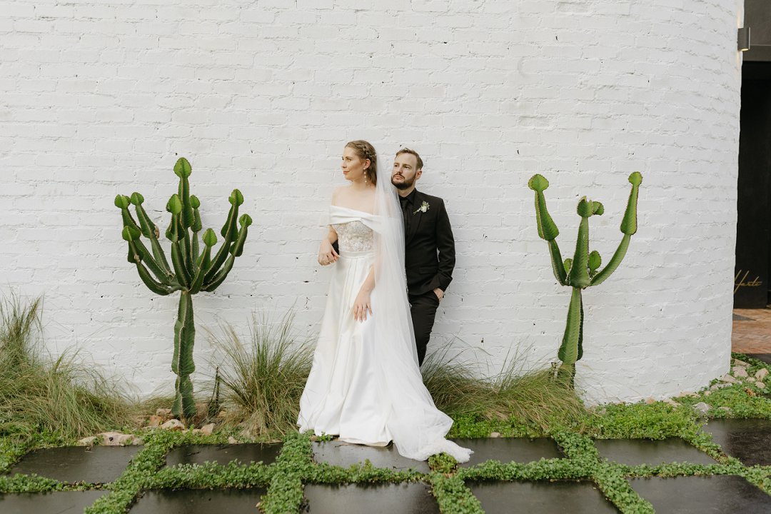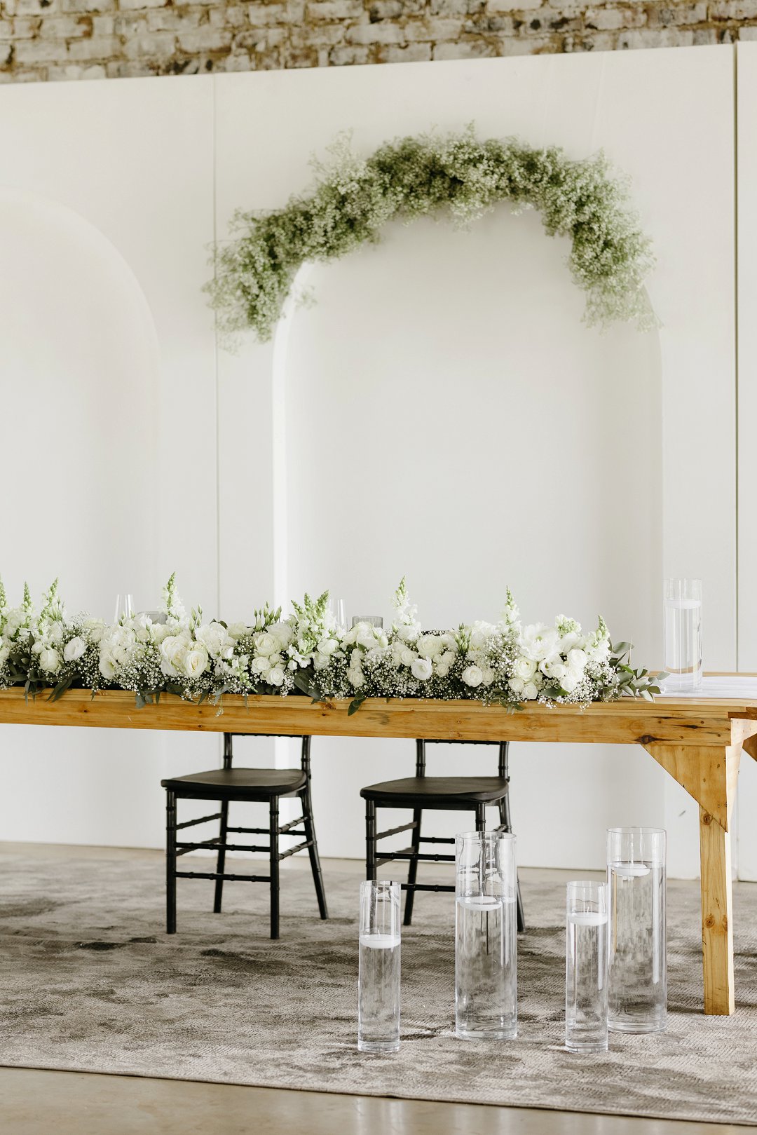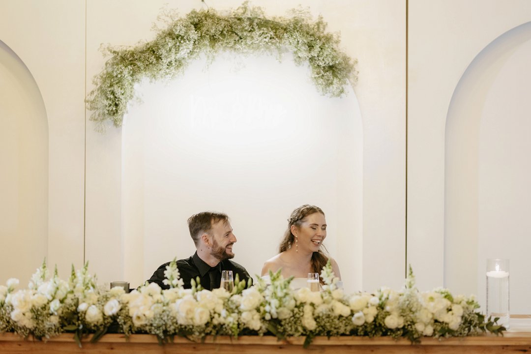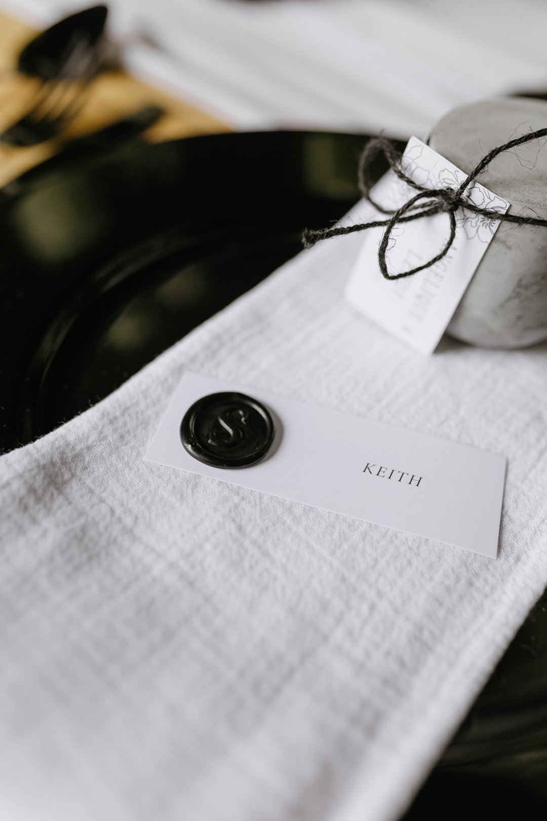 Leroy en Angie het ʼn duidelike visie vir hul troue gehad. ʼn Skoon, swart en wit kleurskema, binne ʼn moderne omgewing. Angie het ʼn moodboard van dekor idees saamgestel en dit aan Belle Doux Decor voorgehou, en hulle het dit alles tot lewe gebring! Hulle wou ʼn balans hê tussen swart en wit, met ʼn paar sagte blomme en warm kerslig. Angie en Leroy hou van eenvoudige dekor en het gevoel dat die swart en wit kleurskema pas by hul liefde vir rok kuns.