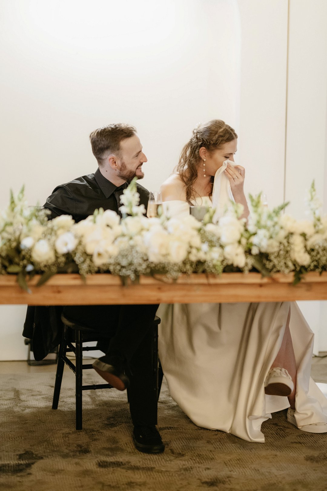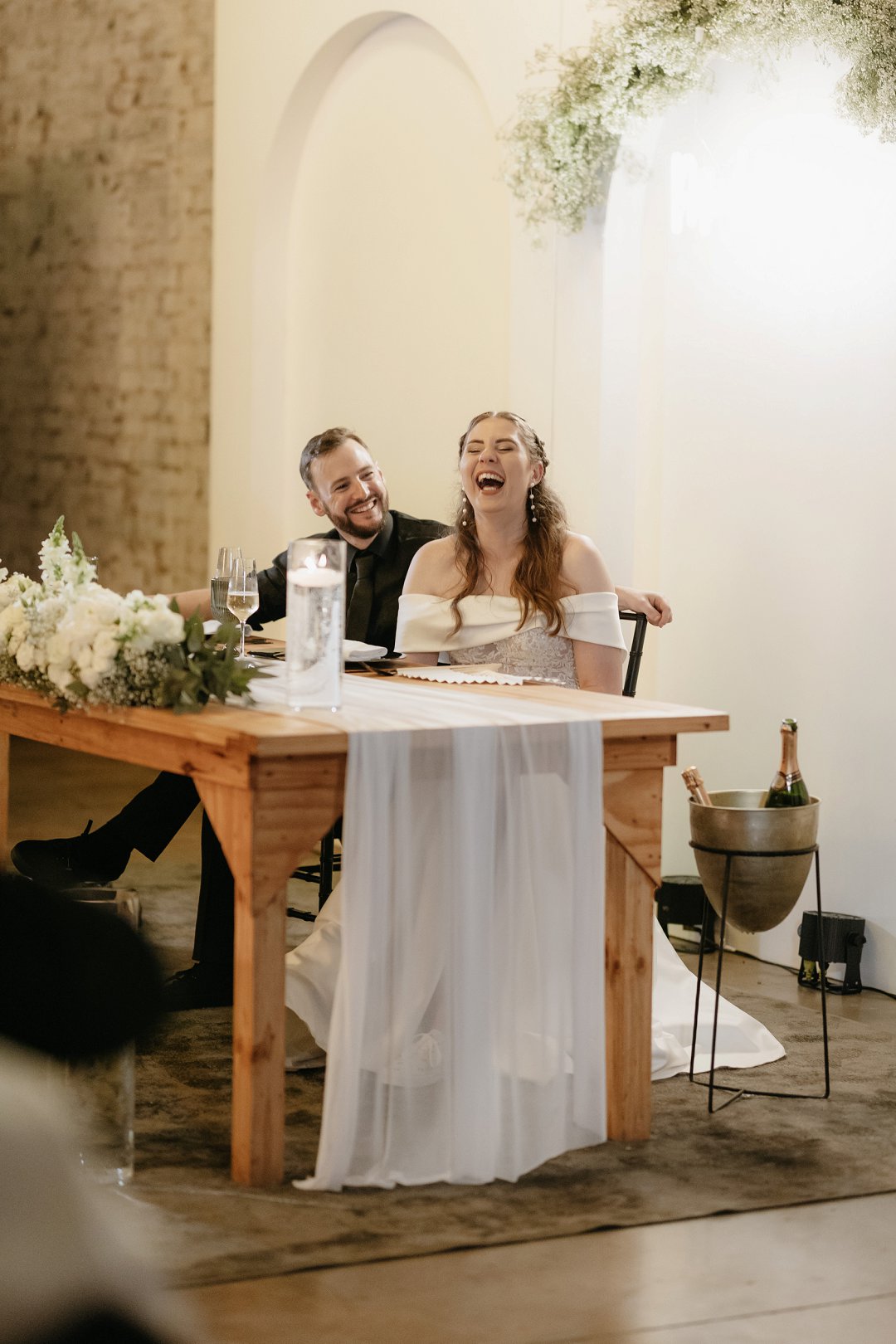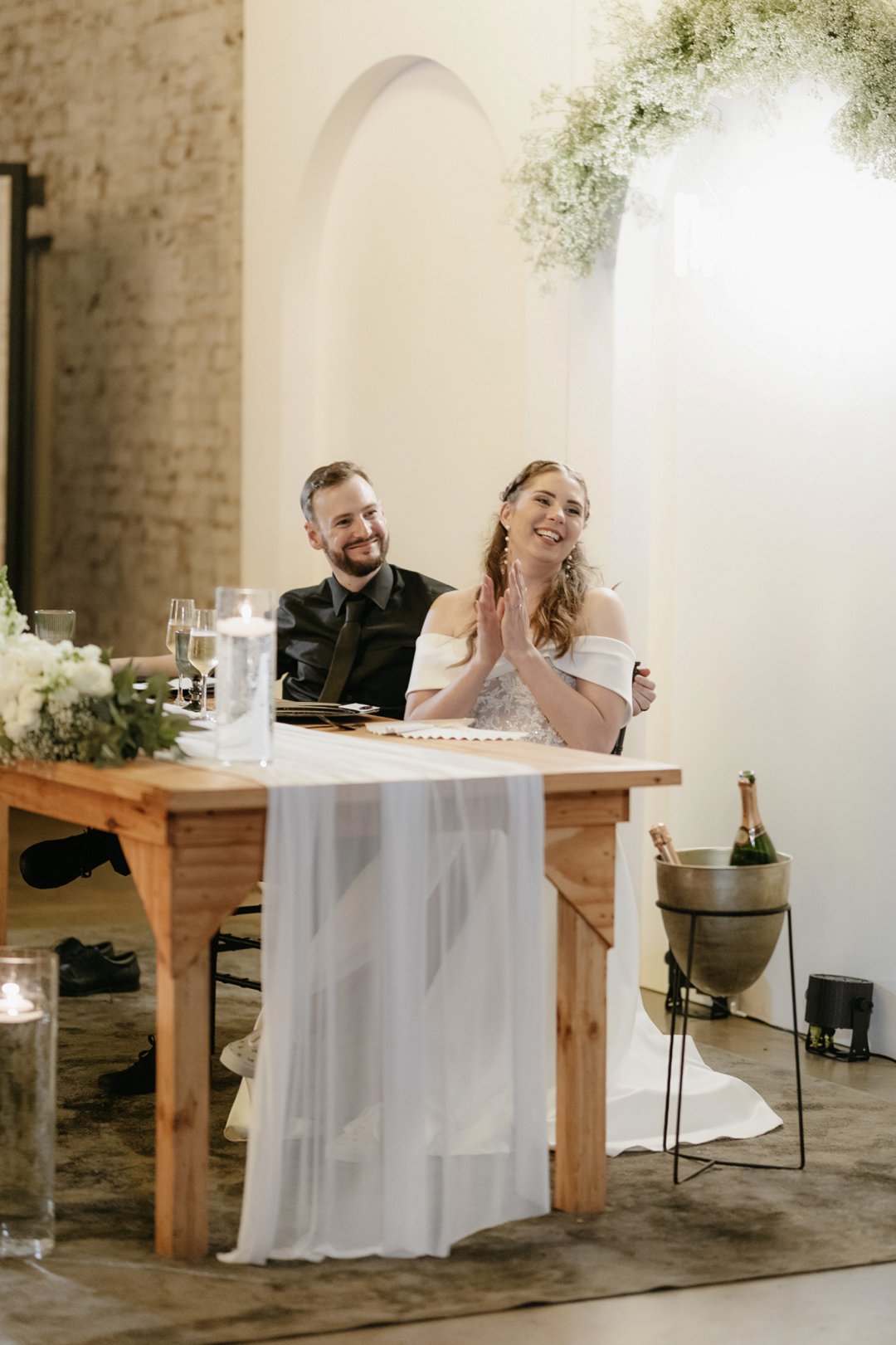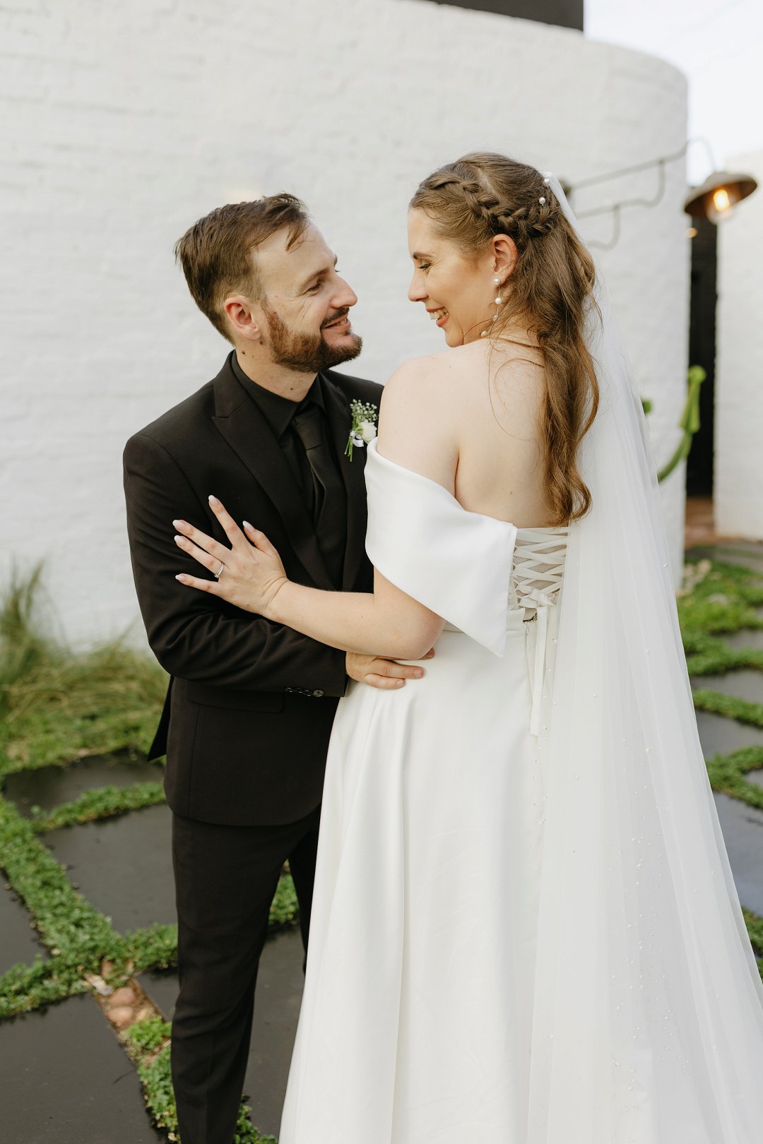 Leroy en Angie het ʼn duidelike visie vir hul troue gehad. ʼn Skoon, swart en wit kleurskema, binne ʼn moderne omgewing. Angie het ʼn moodboard van dekor idees saamgestel en dit aan Belle Doux Decor voorgehou, en hulle het dit alles tot lewe gebring! Hulle wou ʼn balans hê tussen swart en wit, met ʼn paar sagte blomme en warm kerslig. Angie en Leroy hou van eenvoudige dekor en het gevoel dat die swart en wit kleurskema pas by hul liefde vir rok kuns.