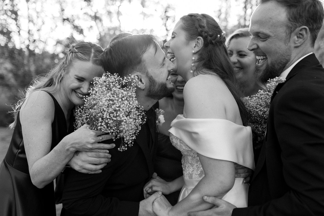 Die paartjie se troue was ʼn uitbundige viering saam met geliefde familie en vriende. Fame Productions het gesorg vir die musiek vermaak, wat die stemming by die seremonie, canapé-area en onthaal opgehelder het. Die vrolike klanke het die partytjie laat voortduur tot in die vroeë oggendure, tot die gaste se energie uiteindelik uitgeput het.