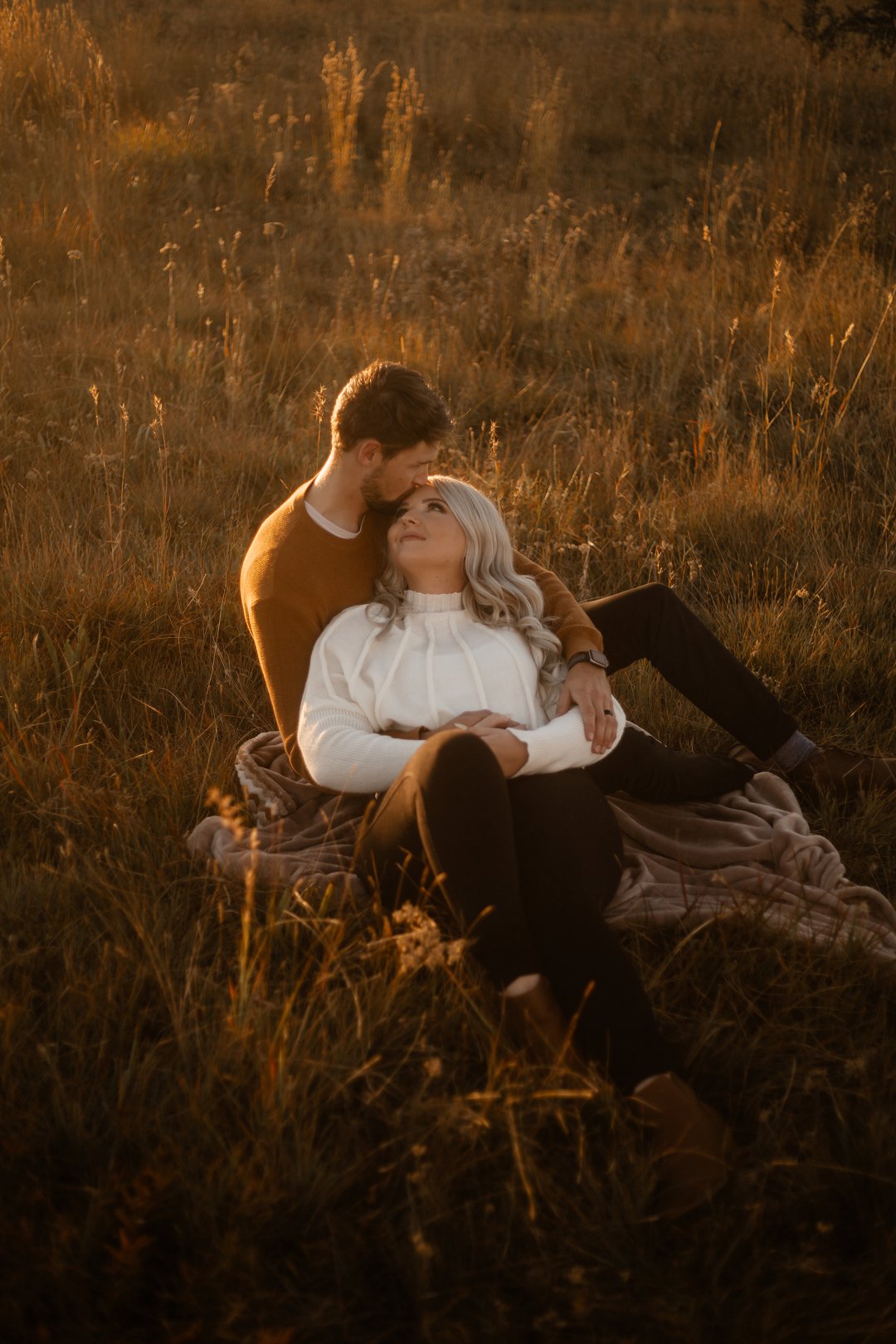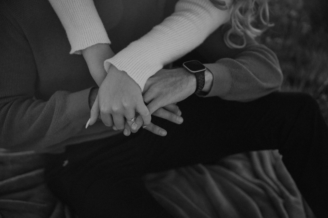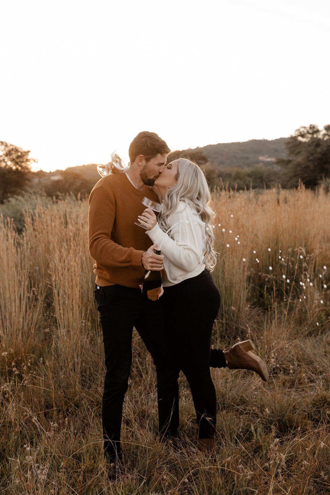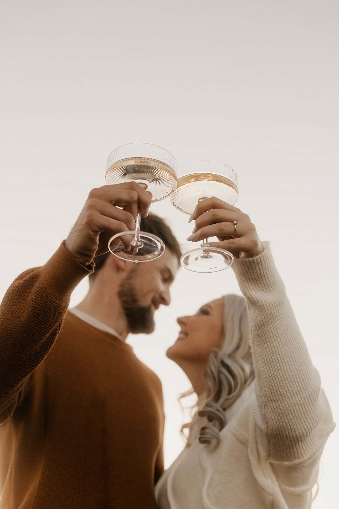 Abigail en Mark het snoesig en stylvol gelyk in hul warm woltruie en swart broeke, ideaal vir ʼn winter fotosessie. Die sagte oranje lig het ʼn warm gloed oor die foto’s versprei, wat elke oomblik spesiaal gemaak het. Met ʼn bottel vonkelwyn wat geklink het om die verlowing te vier, was die fotosessie vol vreugde en liefde.