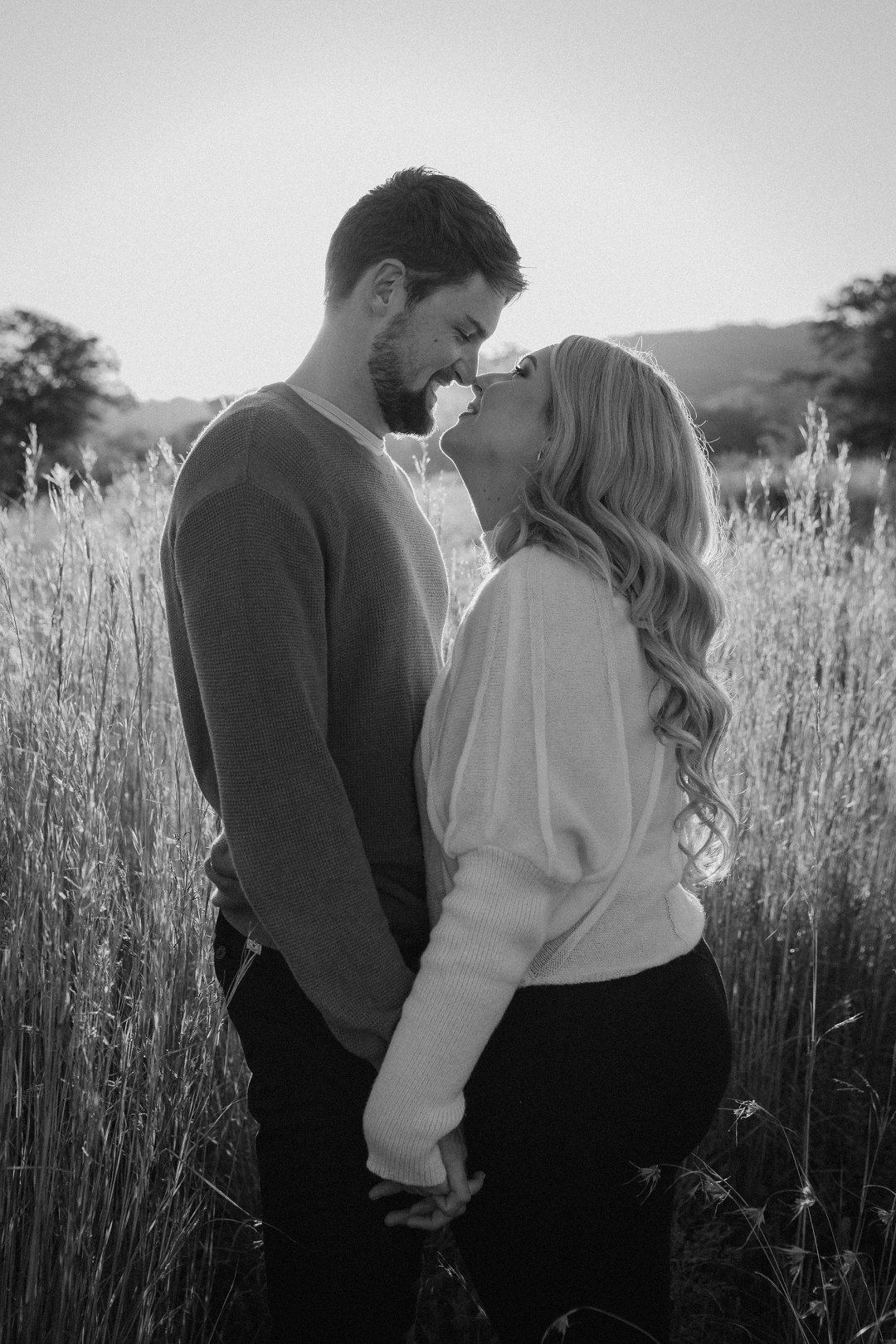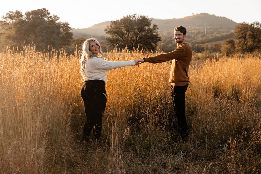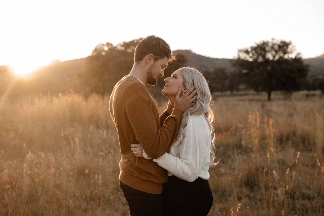 Hulle het die perfekte agtergrond gekies – ʼn natuurreservaat in Johannesburg-Suid. Die pragtige berge en die son se goue strale wat deur die lang gras skyn, het ʼn onbeskryflike skoonheid tot die foto’s toegevoeg. Dis inderdaad asemrowend! Die keuse van die regte plek vir ʼn verlowing fotosessie is só belangrik, en Abigail en Mark het dit perfek reggekry.